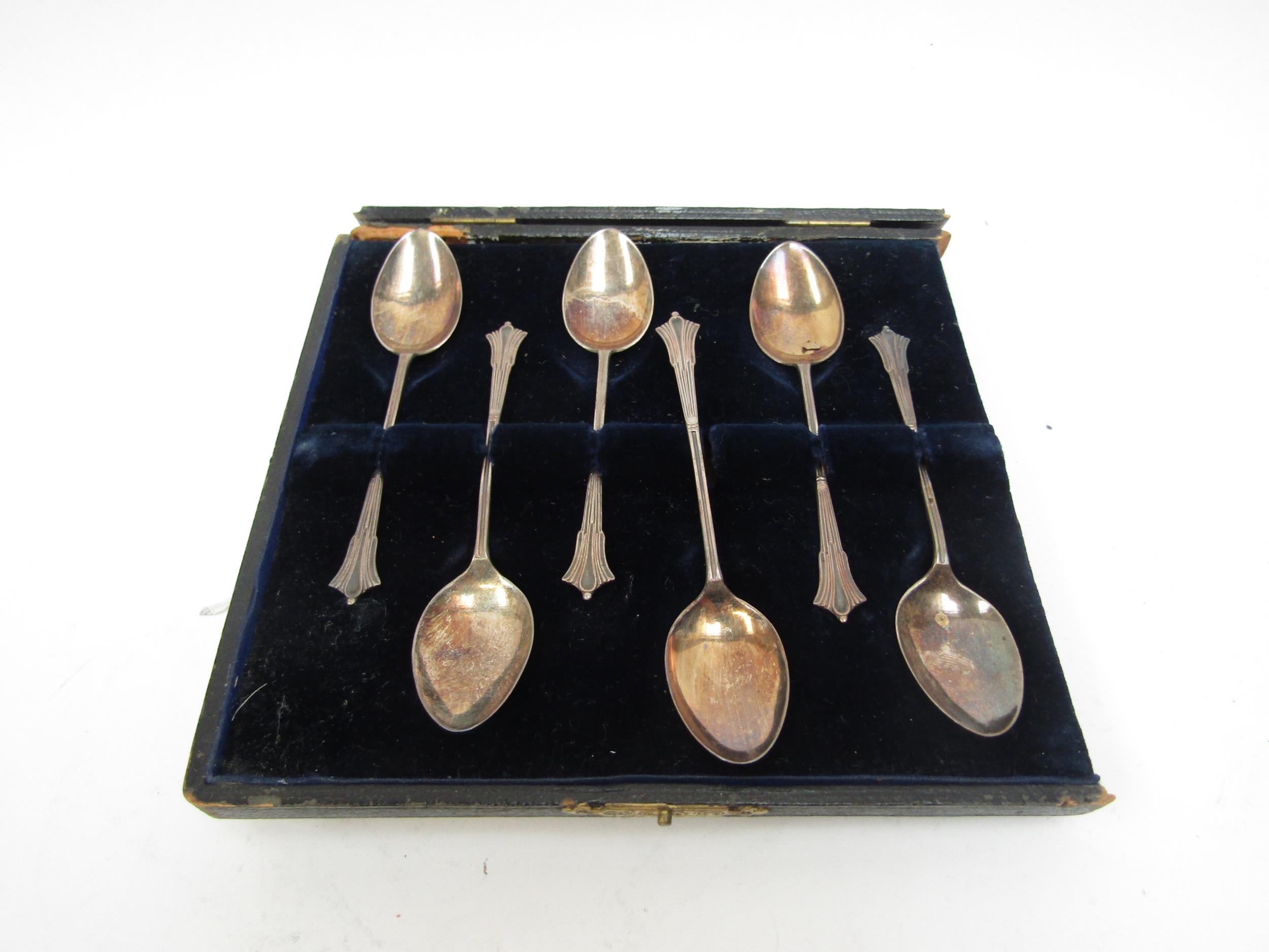 A set of six A.J. Bailey silver teaspoons in case a/f, Birmingham 1908, 32g