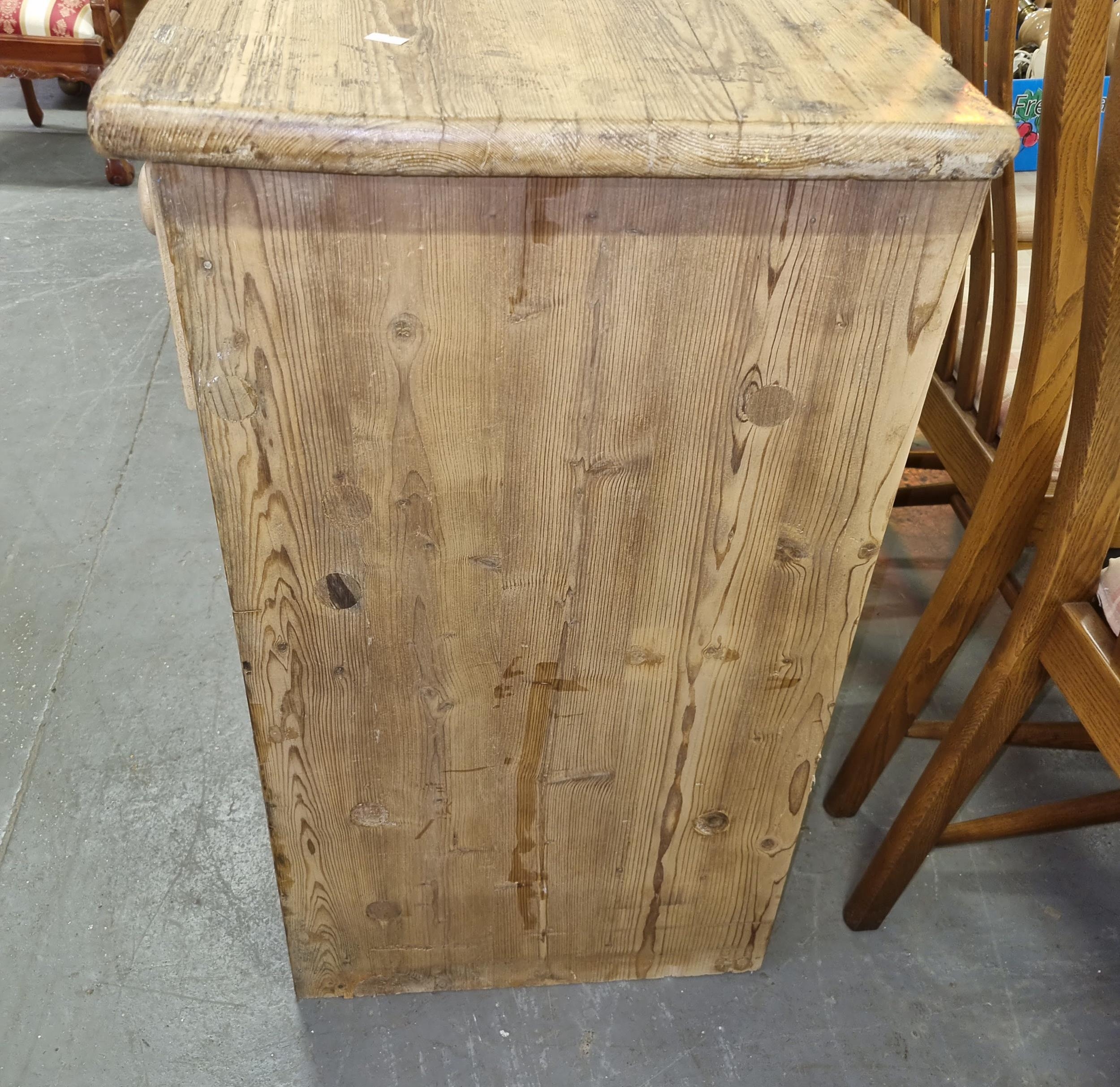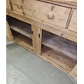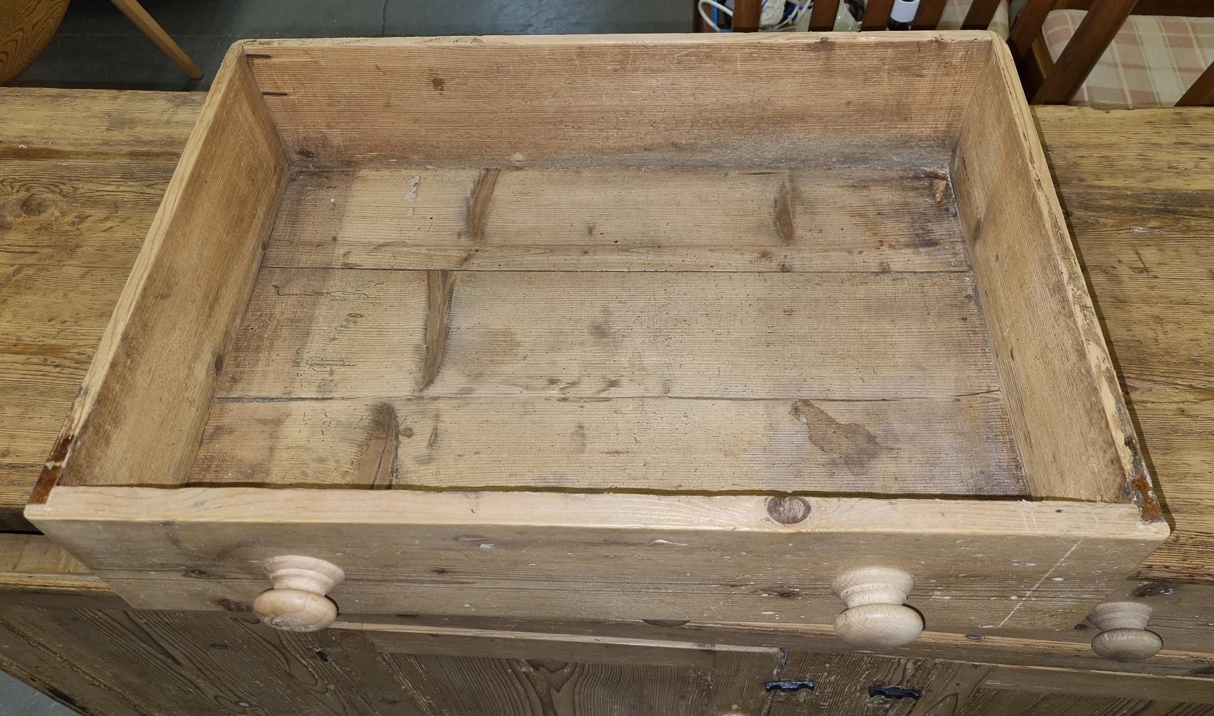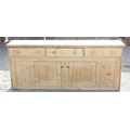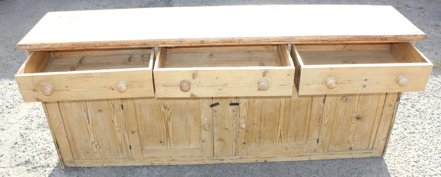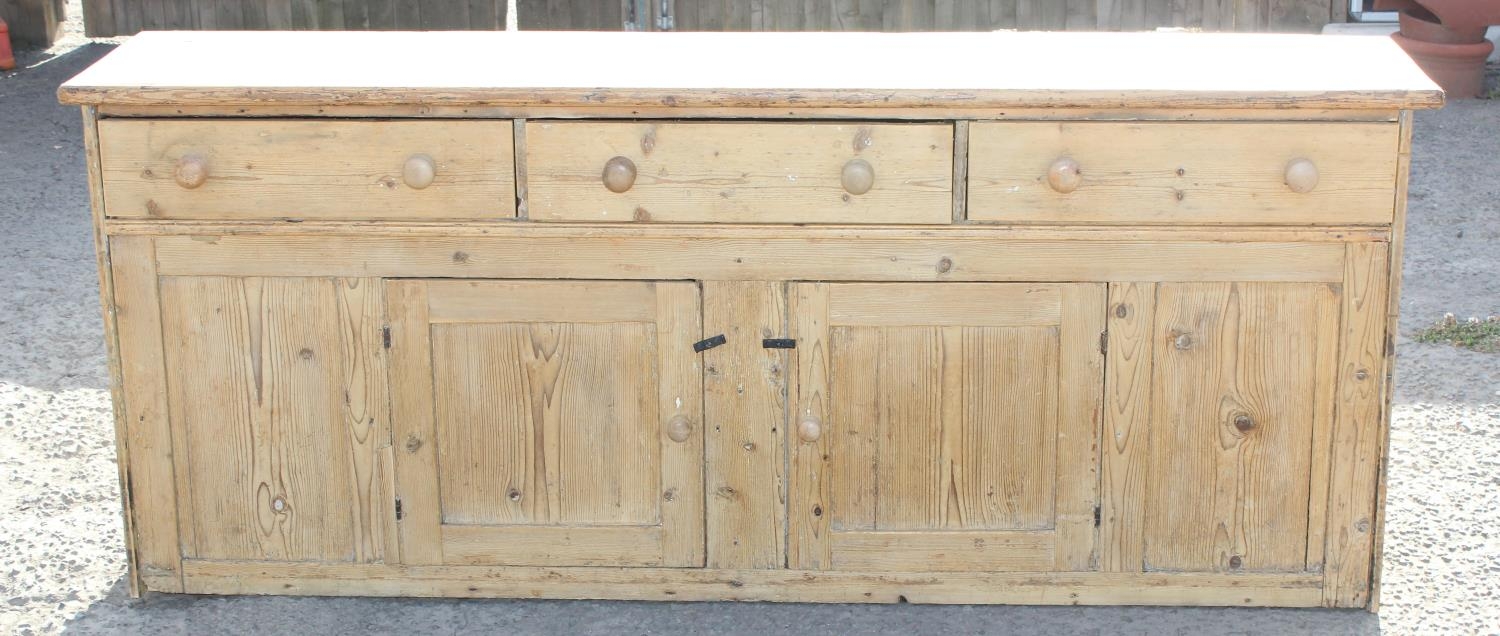 Antique stripped pine dresser base with 3 drawers over 2 cupboards