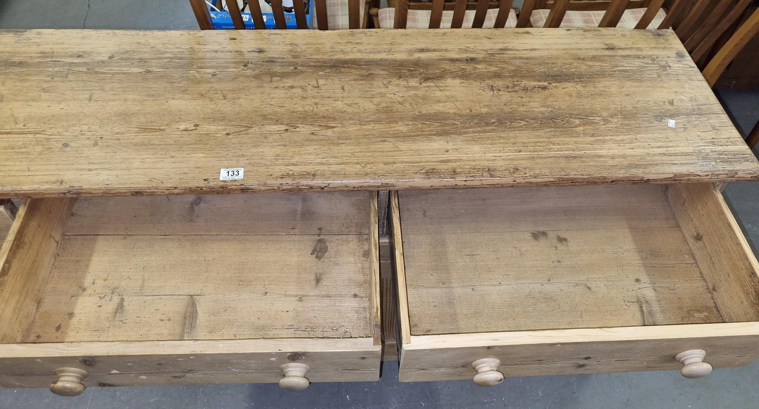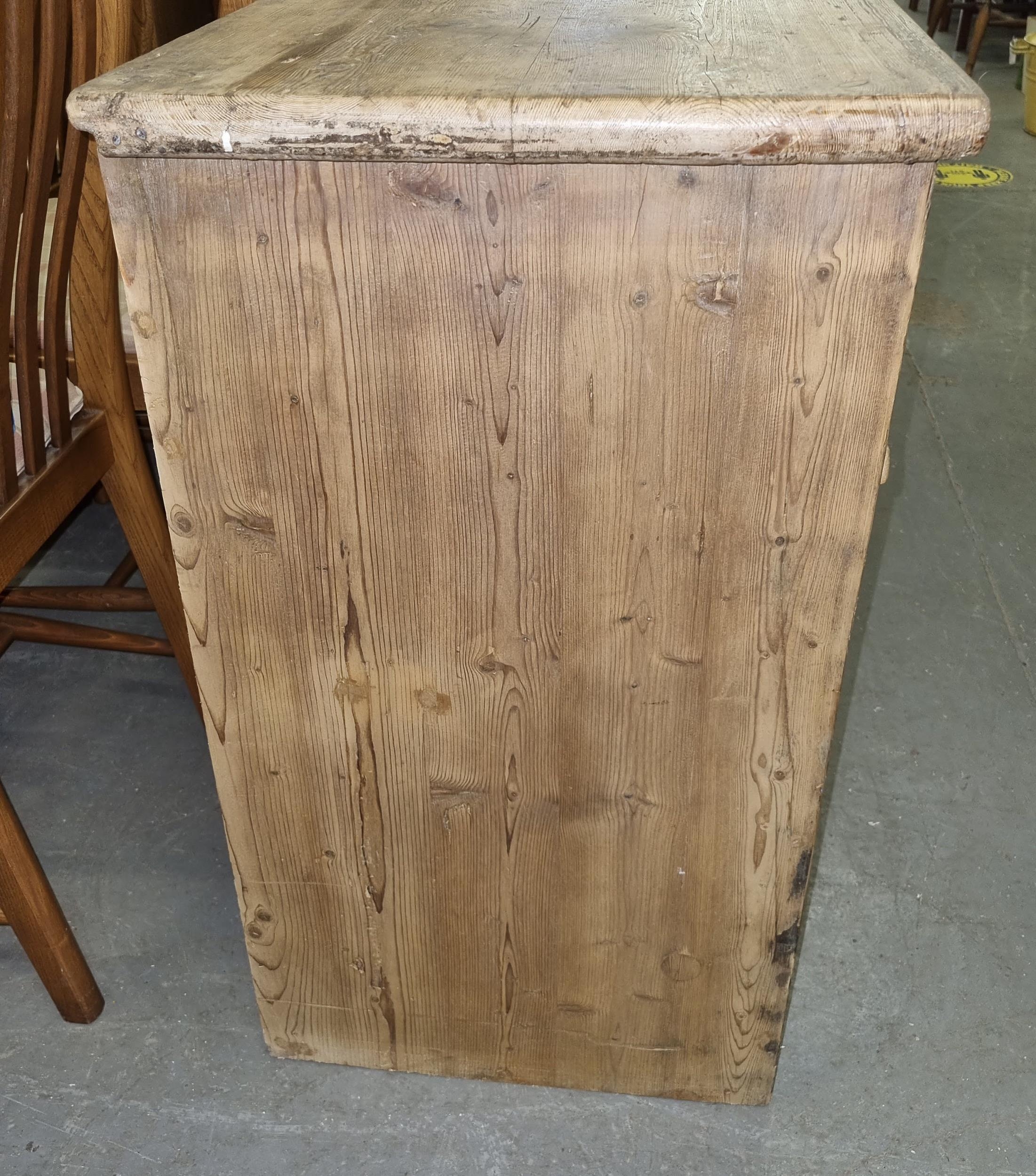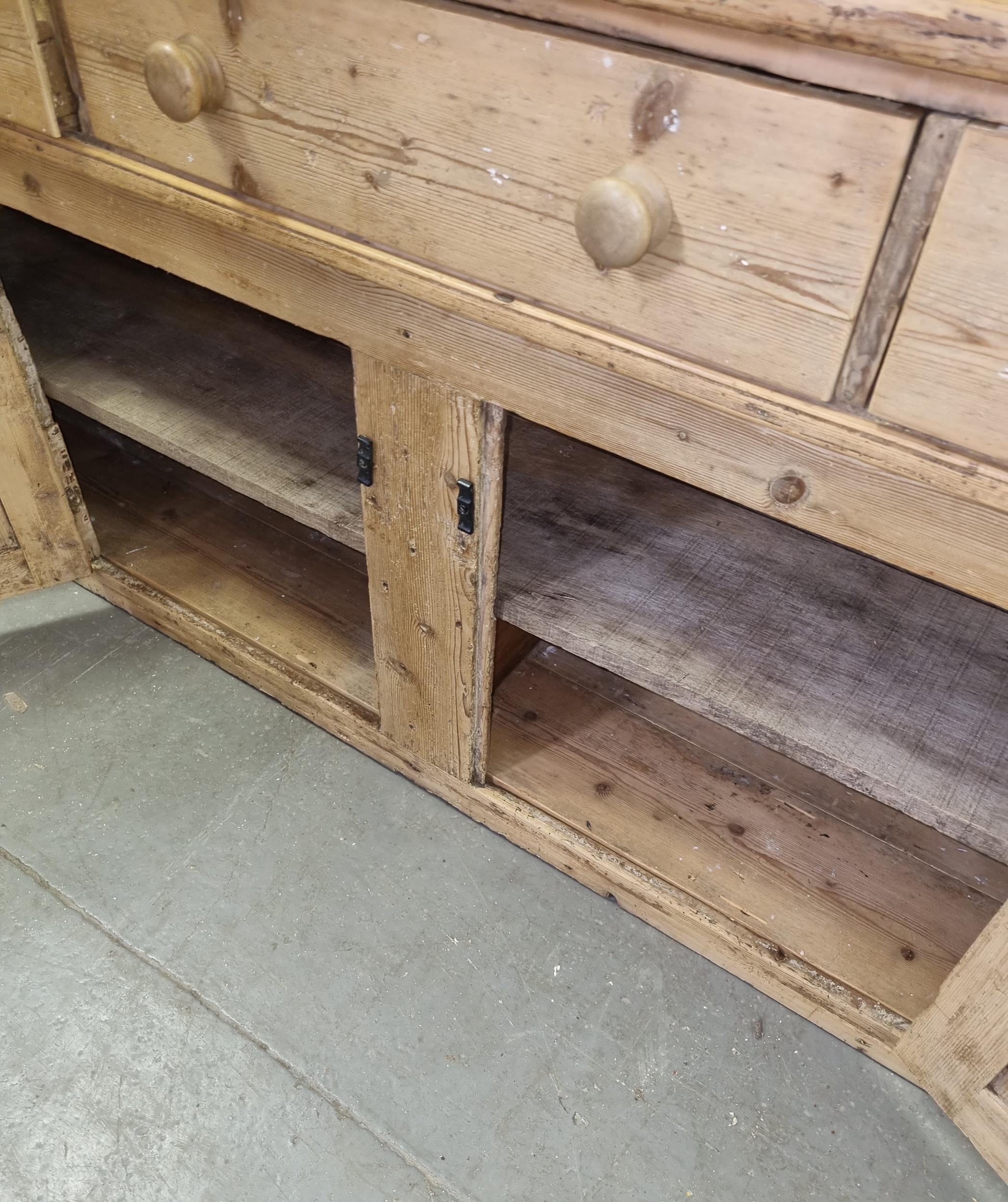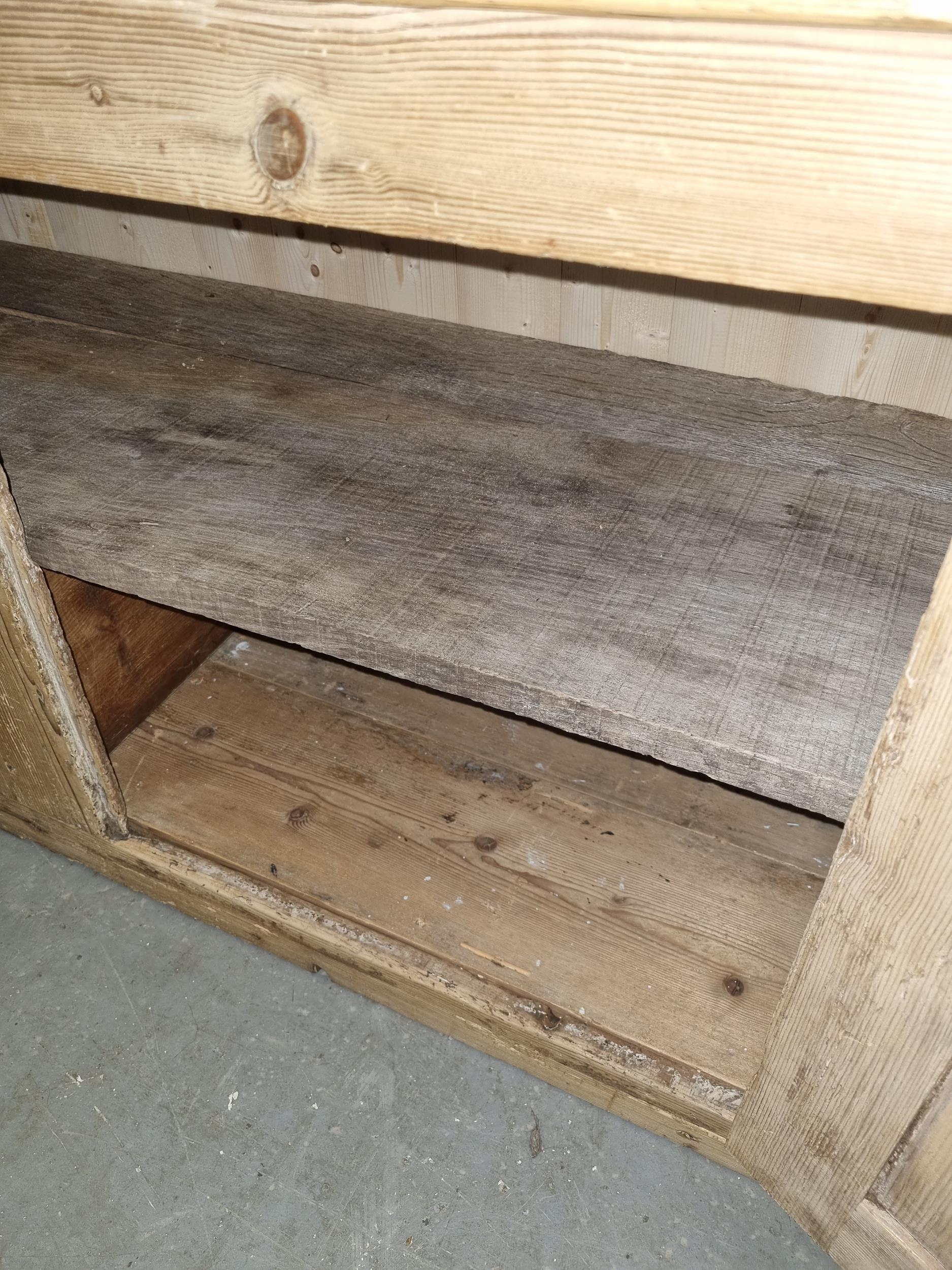 Antique stripped pine dresser base with 3 drawers over 2 cupboards