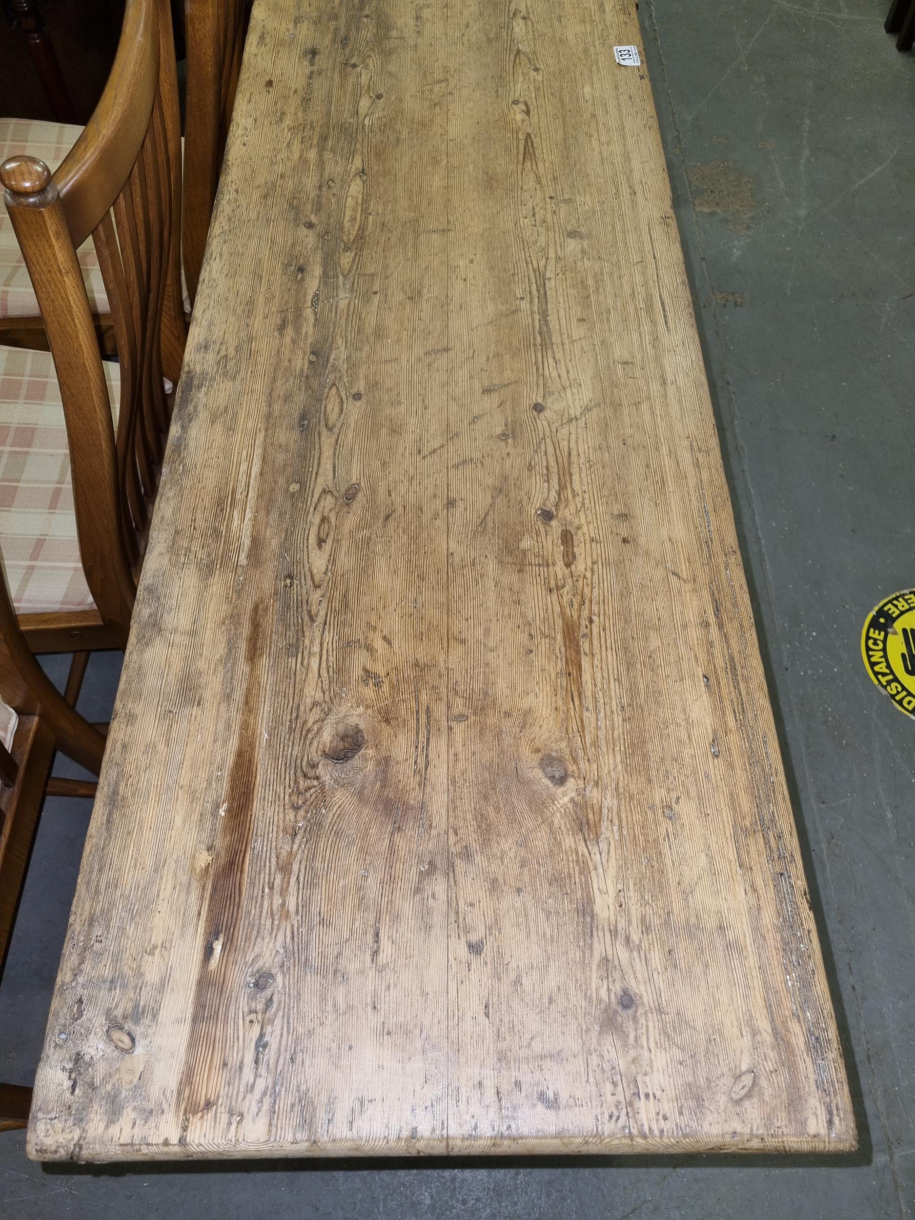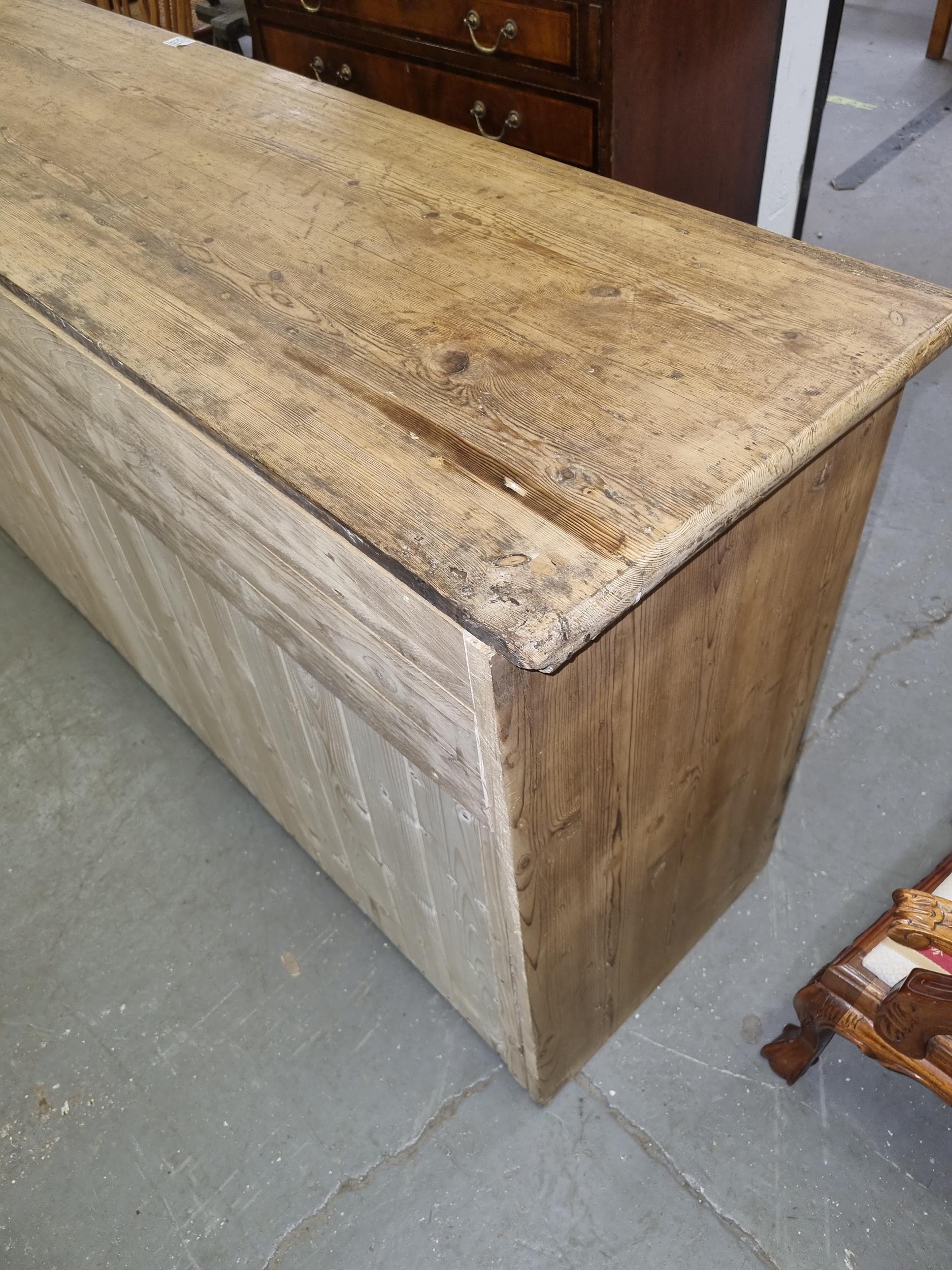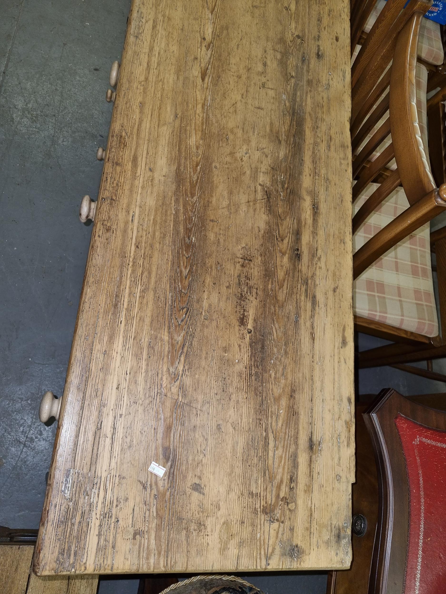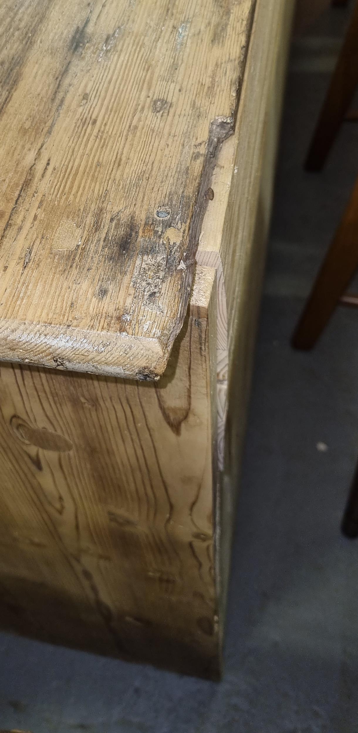 Antique stripped pine dresser base with 3 drawers over 2 cupboards