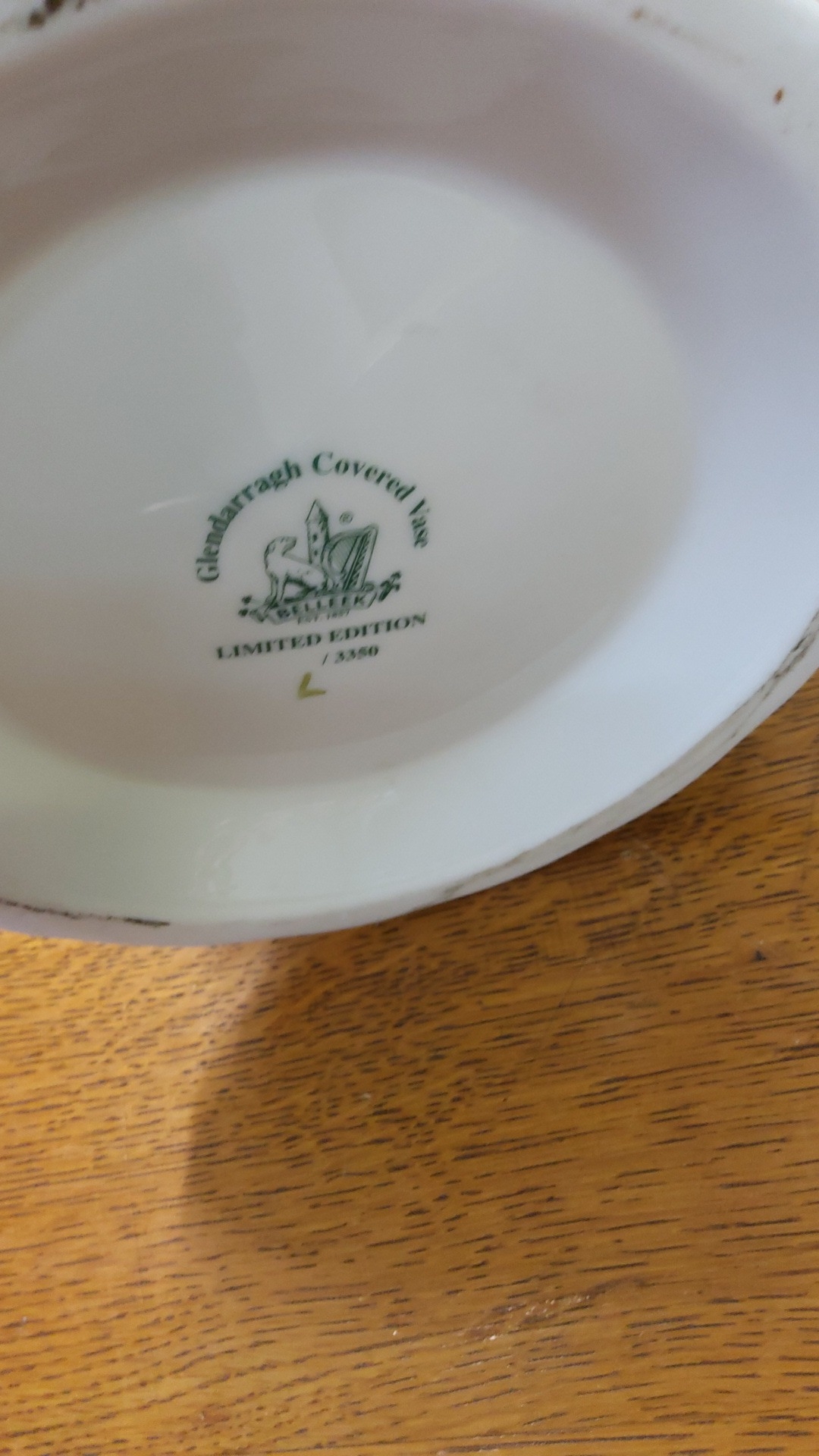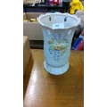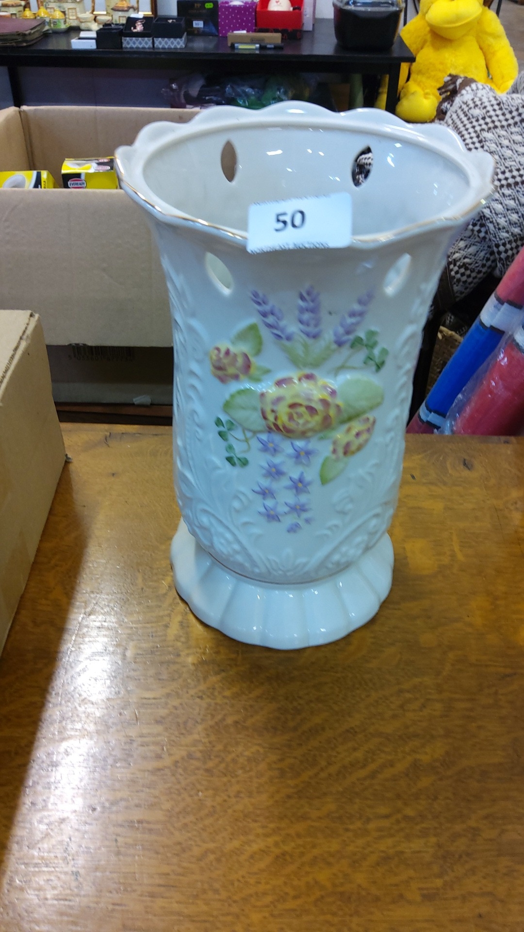 A Belleek Parian glazed porcelain vase, of flared scalloped rim with pierced body and moulded foliate decoration, painted with flowers, raised on a shaped foot.