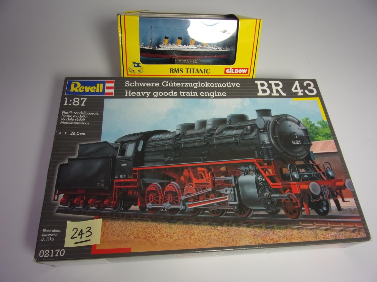 GILBROW RMS TITANIC BOXED 1750 SCALE MODEL E10001 TOGETHER WITH A REVELL BR43 HEAVY GOODS ENGINE 1-87 SCALE PLASTIC MODEL KIT