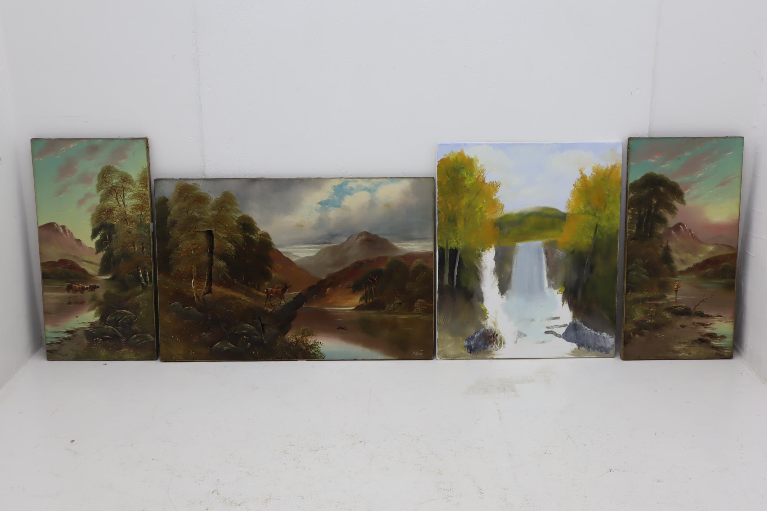 Mixed Lot of Vintage Oil on Canvas Paintings Three signed by a B Davis Largest painting a/f 31"x 20"