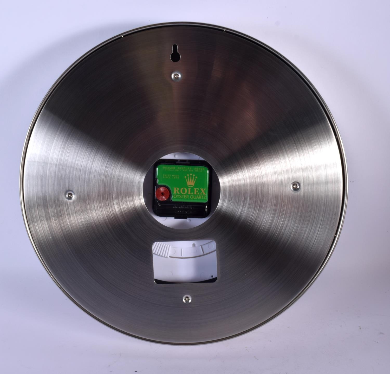 A ROLEX SHOP DISPLAY ADVERTISING WALL CLOCK. 33 cm diameter.