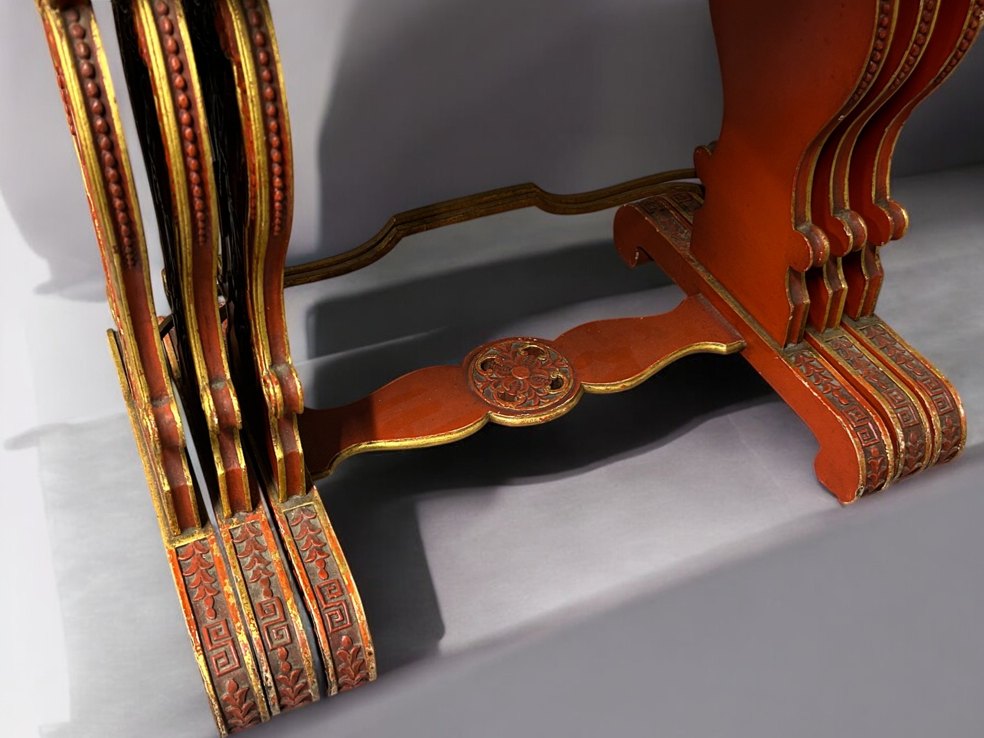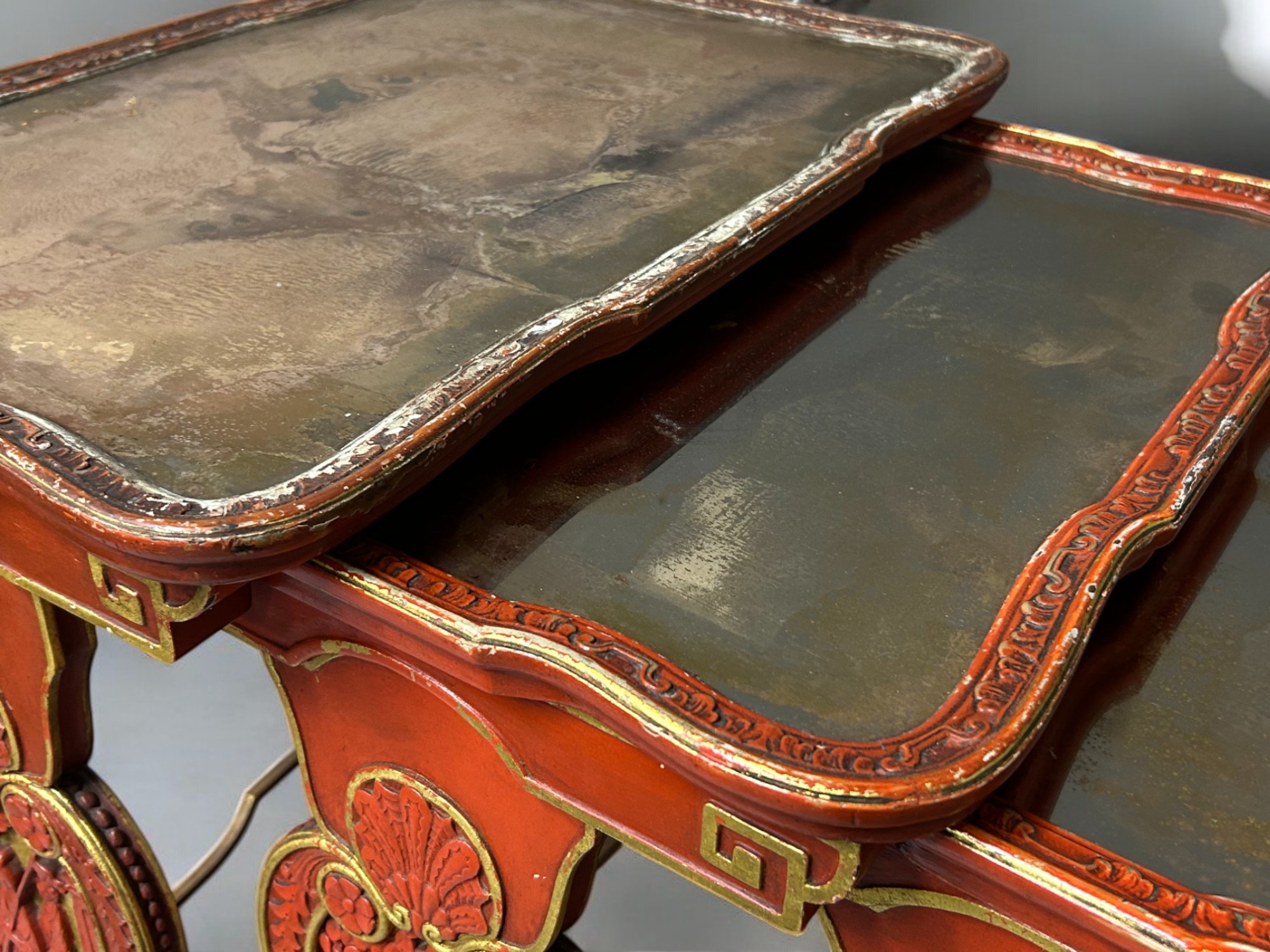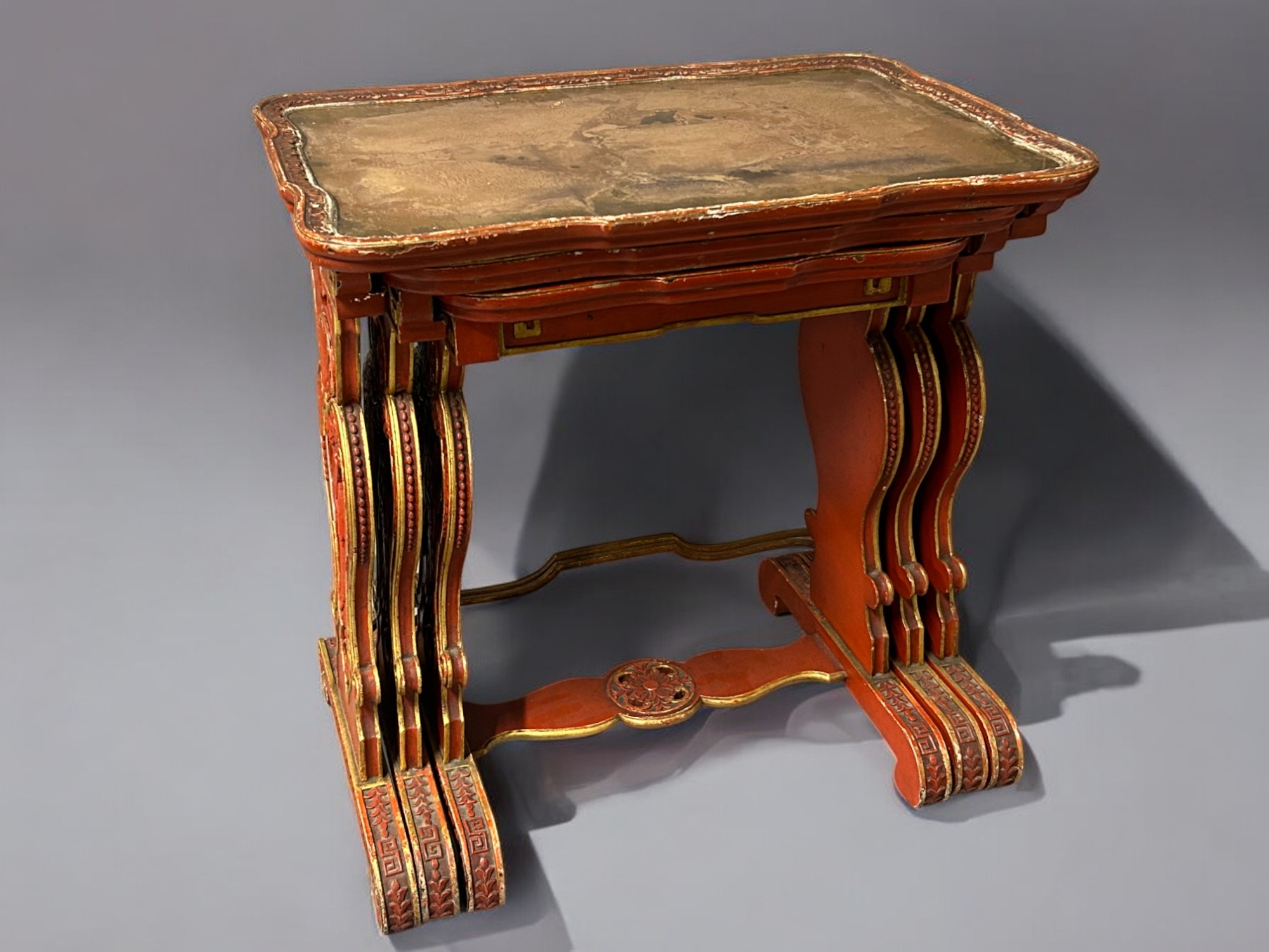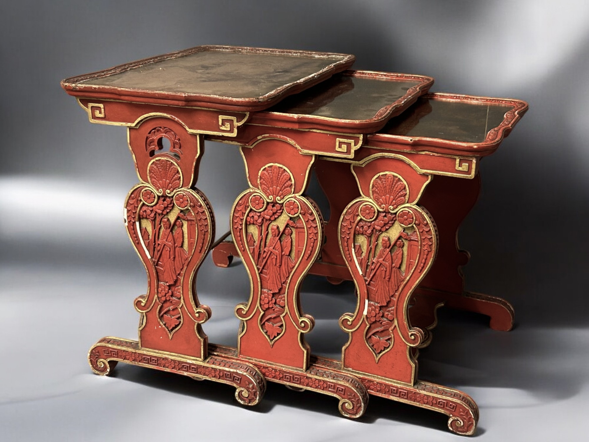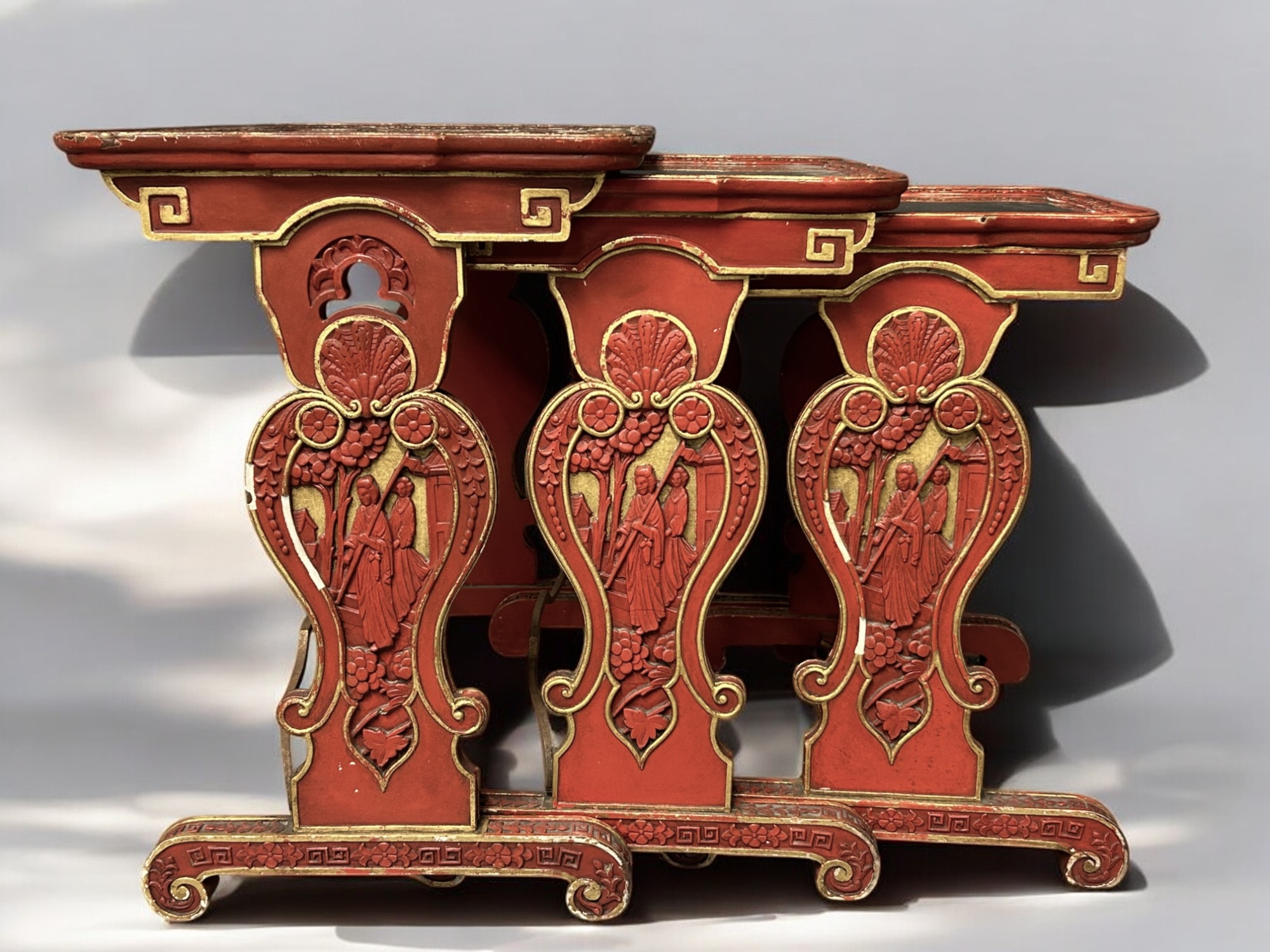 A Chinese carved wood and Gesso nest of tables.