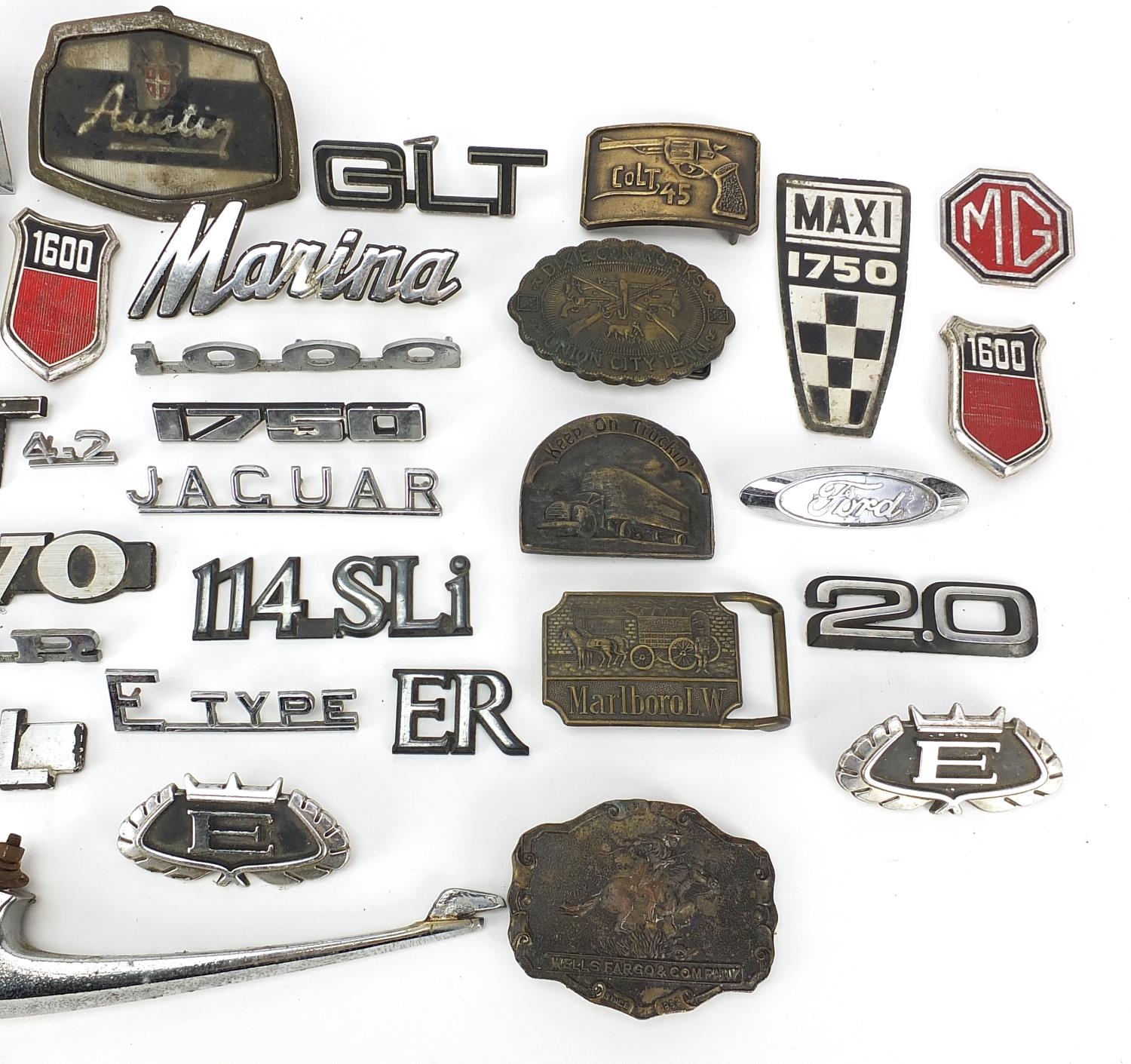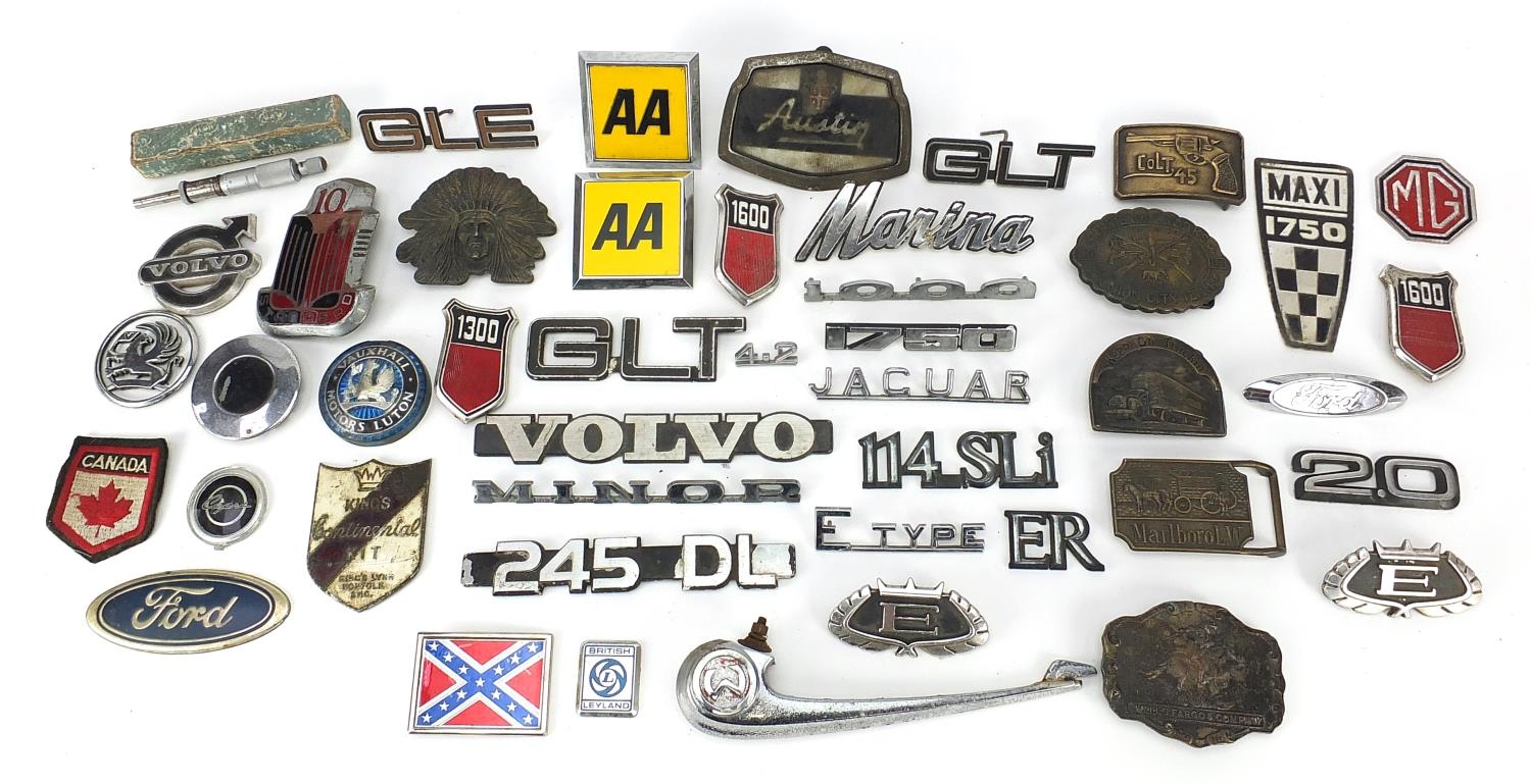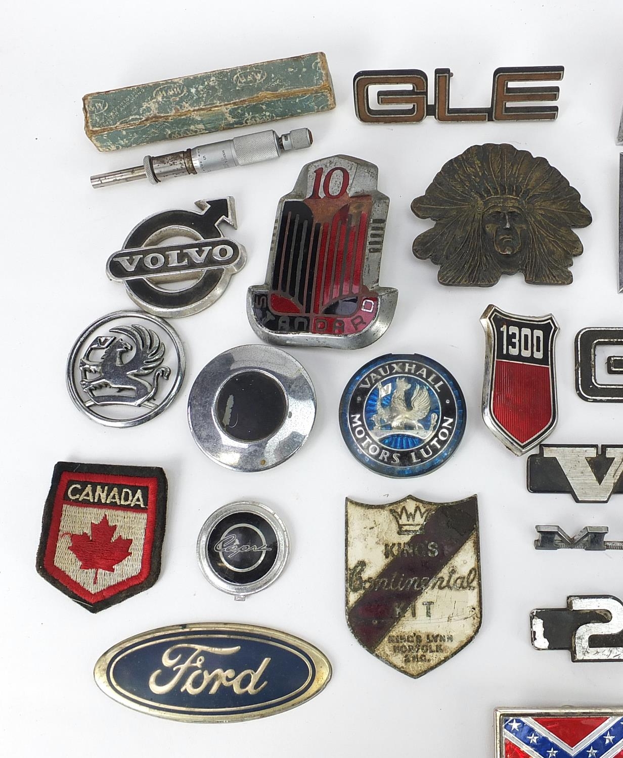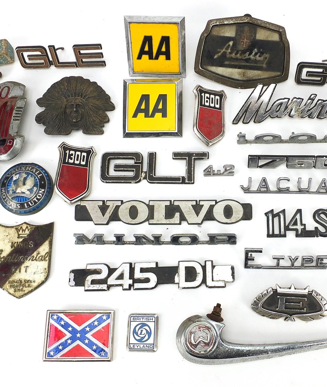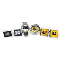 Vintage chrome car mascot, car badges and ephemera including Austin, King's Continental Kit, Minor, Standard