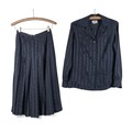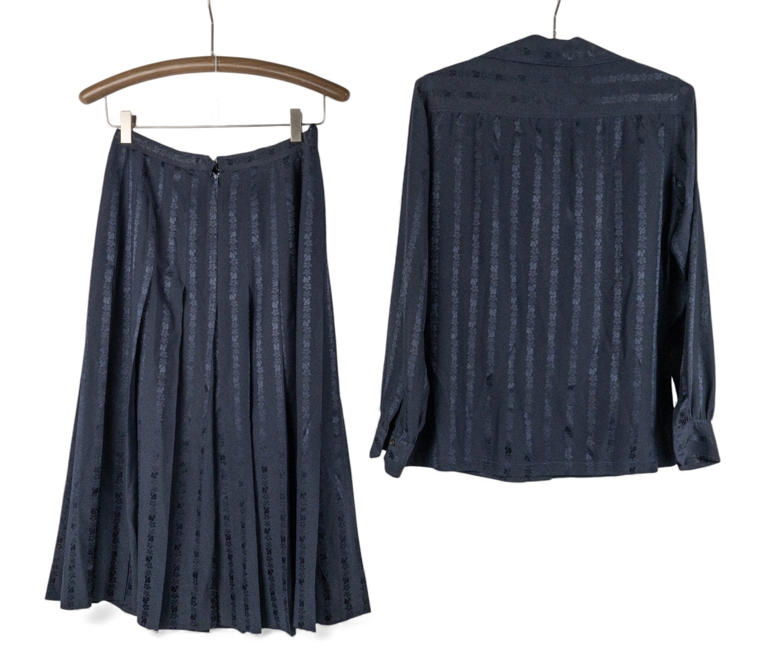 Consisting of navy blue silk skirt and matching shirt
