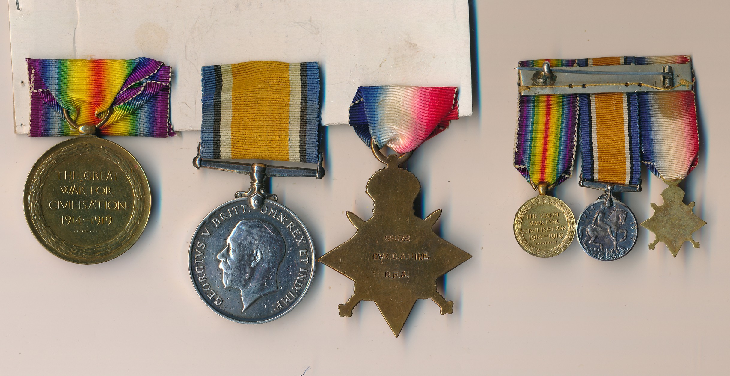 1914-15 Star trio to 59072 Dvr C.A. Hine R.F.A. very fine, with miniature swing mounted 1914 Star trio.