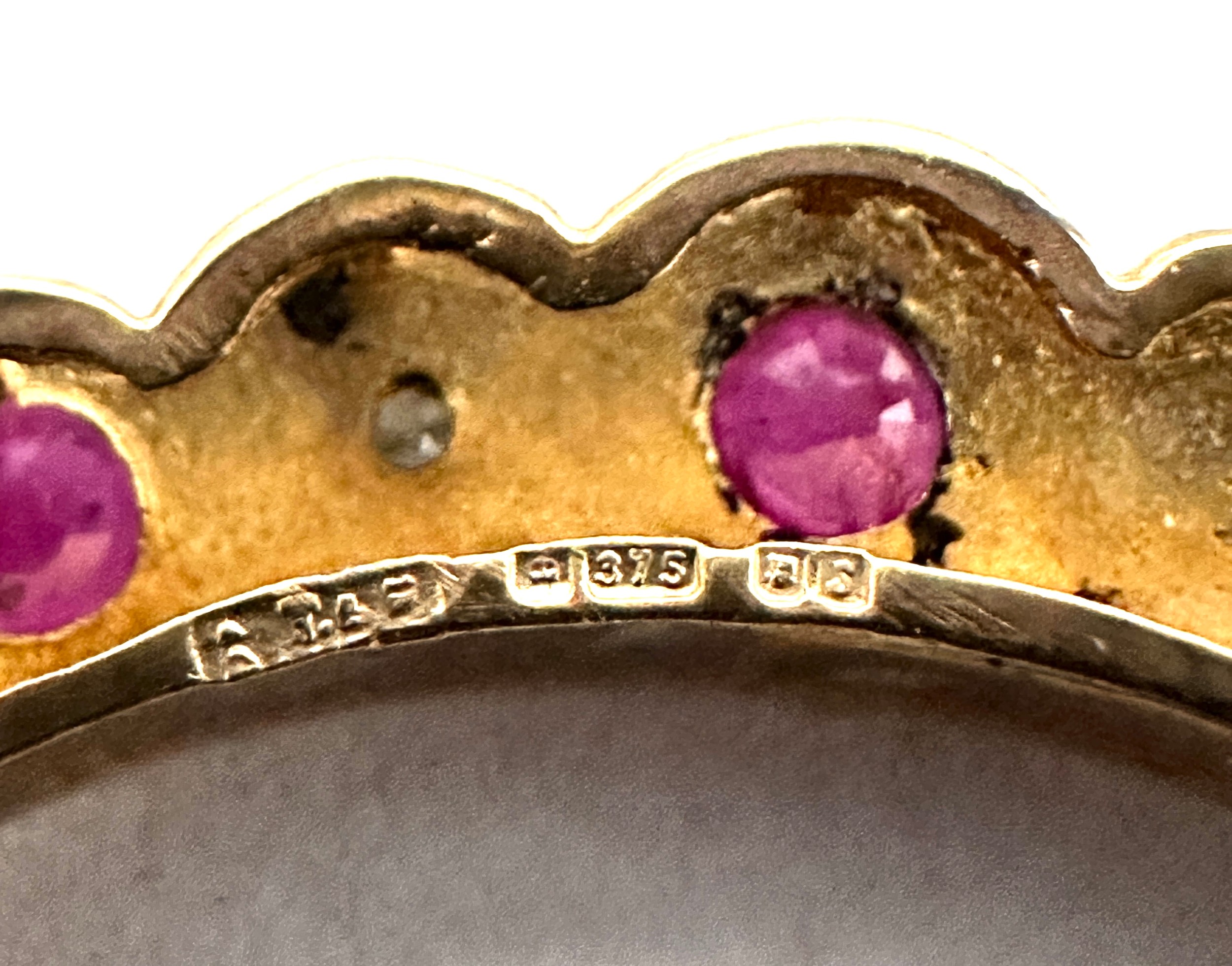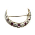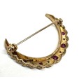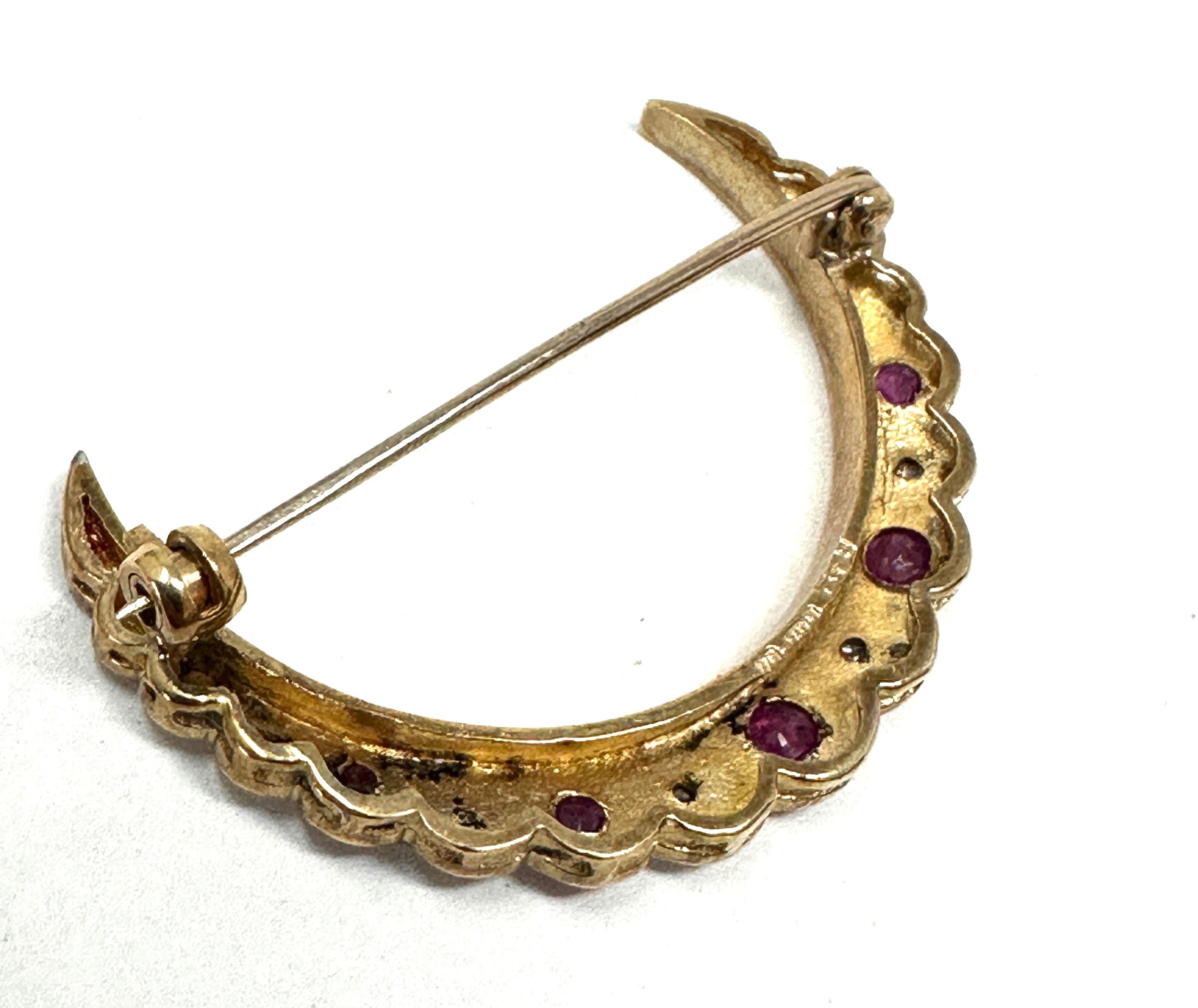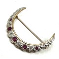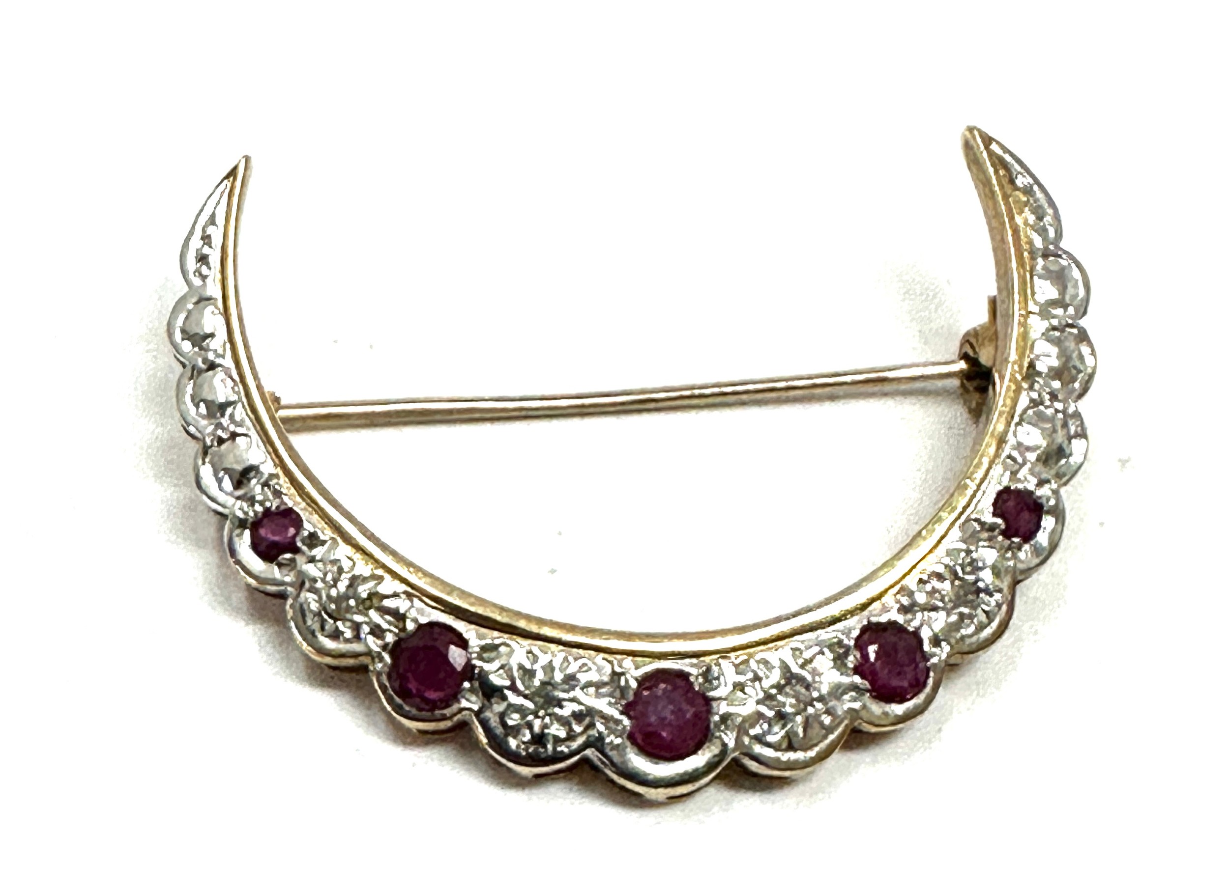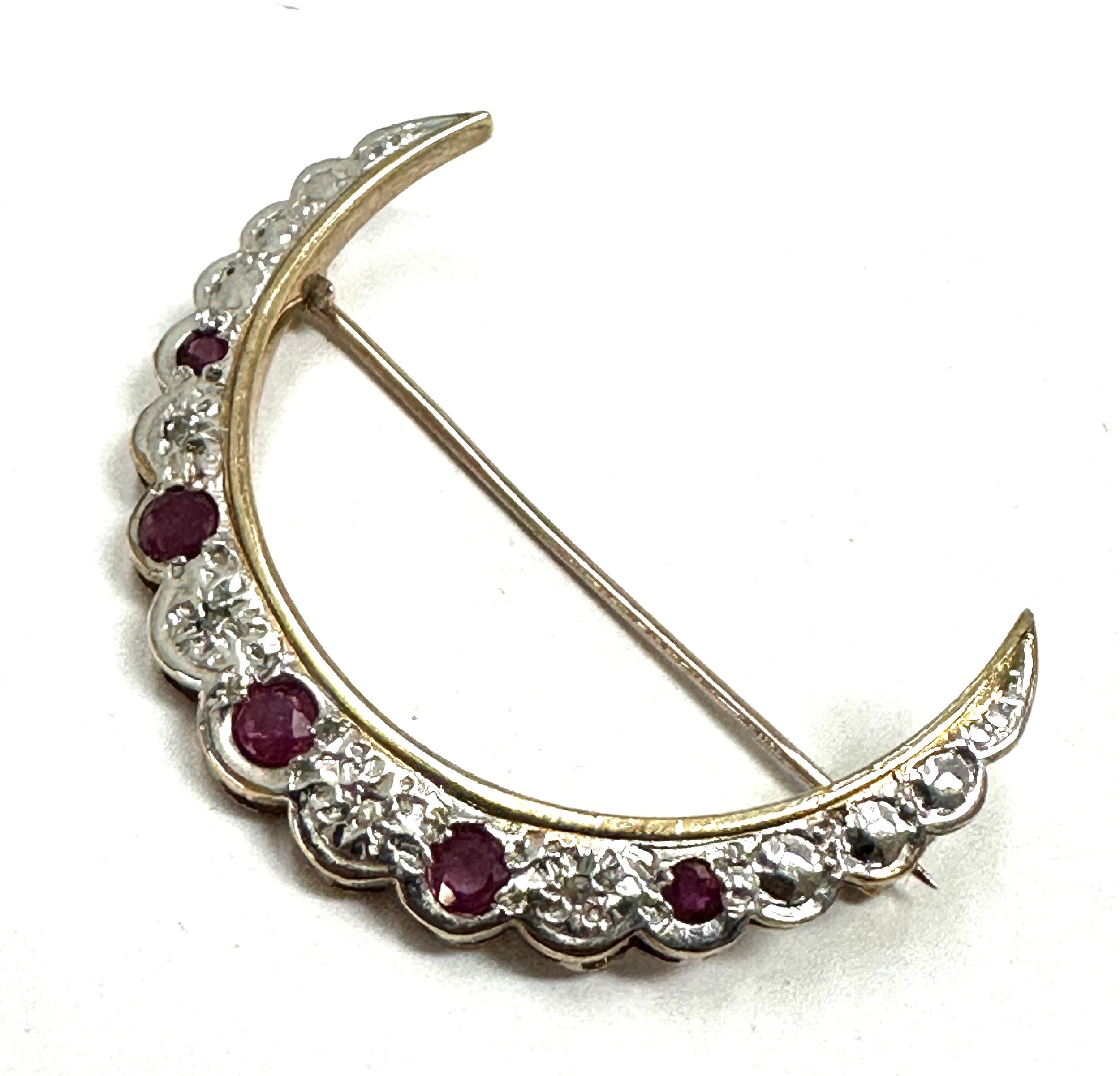 Vintage 9ct gold Ruby and Diamond Crescent Moon Brooch weight 3.7g