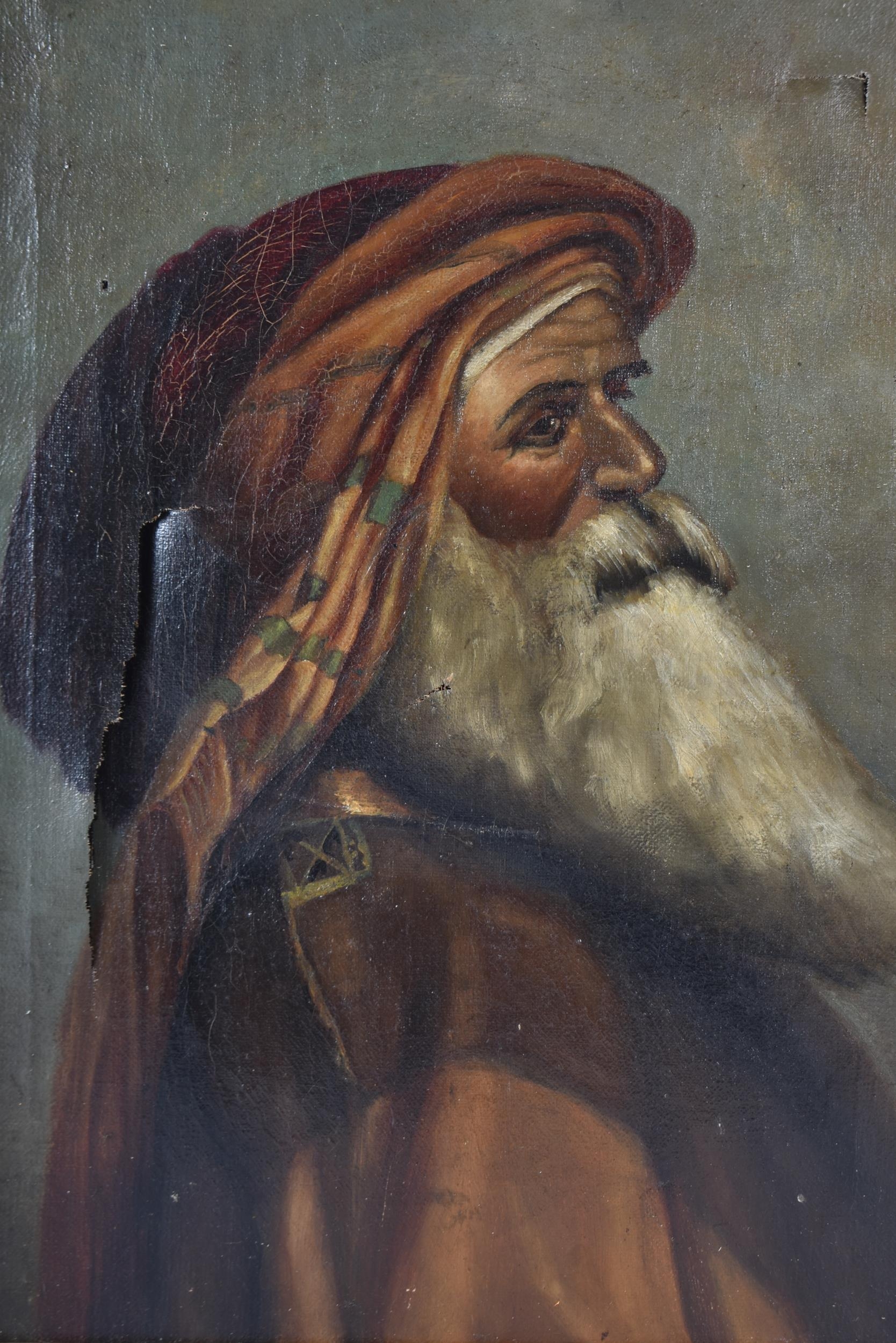 A 19th Century oil on canvas of an Arab male; image 39 x 29cm, frame 49 x 39.5cm