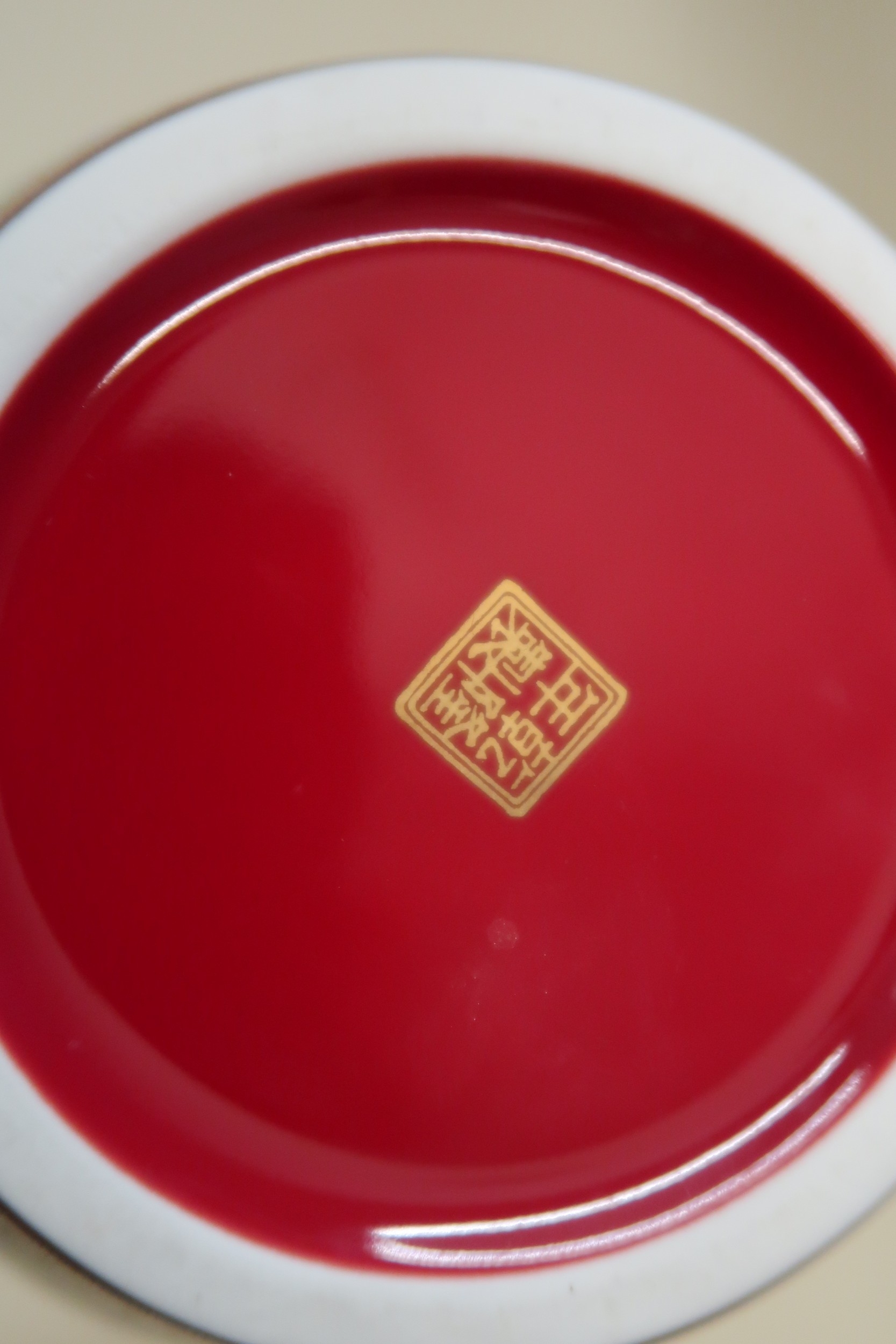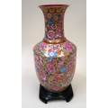 20th Century Chinese porcelain baluster form vase with all-over floral decoration signed with gold seal mark to base, 29cm high, mounted on a hardwood stand