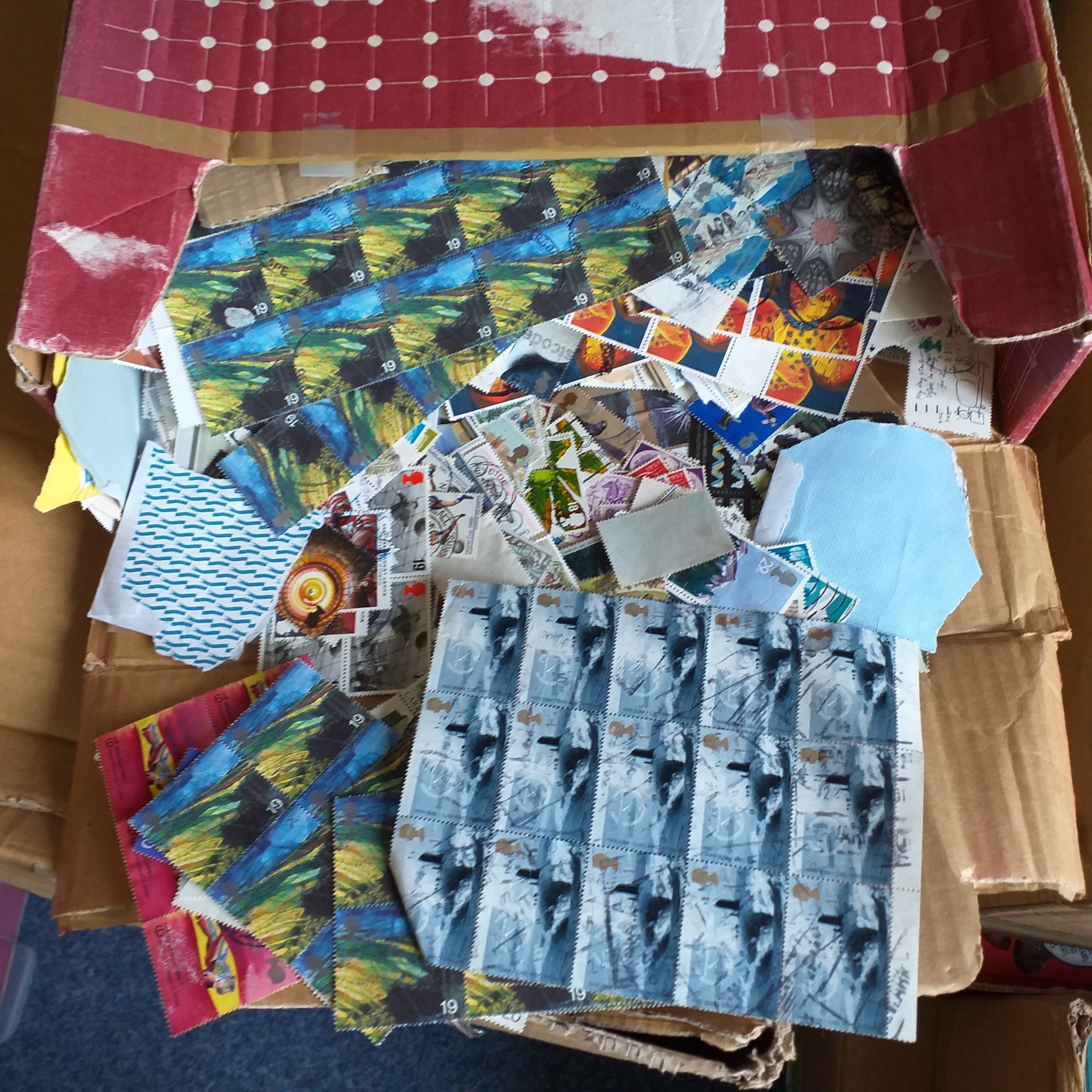 Tall, thin box of GB commemoratives off paper, many hundreds incl large blocks & strips. Mainly post 2000.