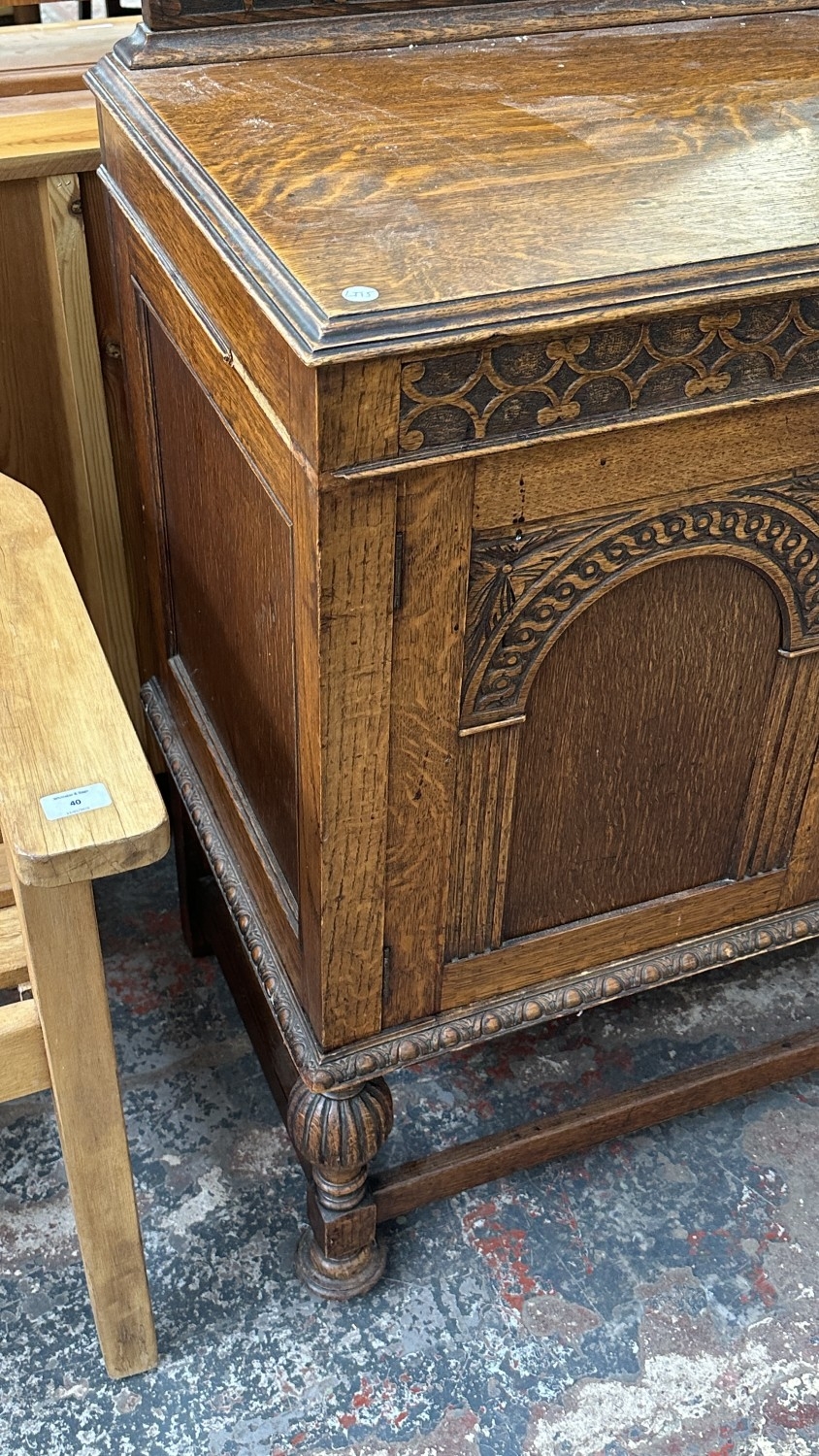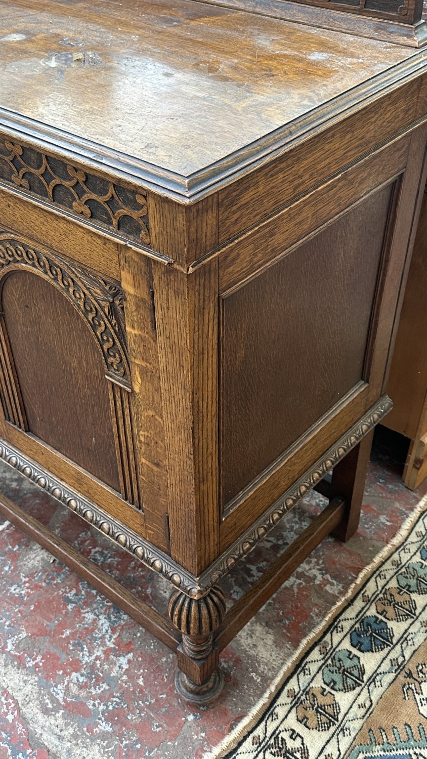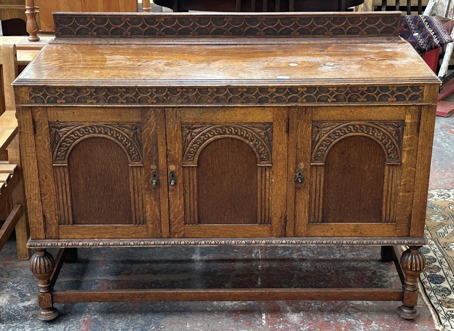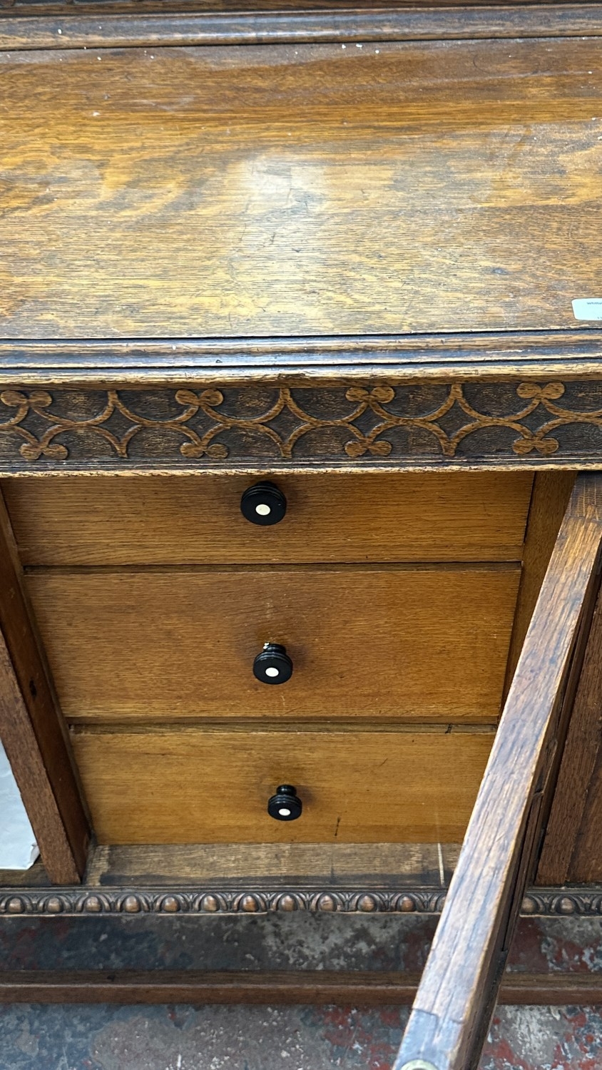 An early 20th century carved oak sideboard on baluster supports - approx. 102cm high x 137cm wide x 50cm deep