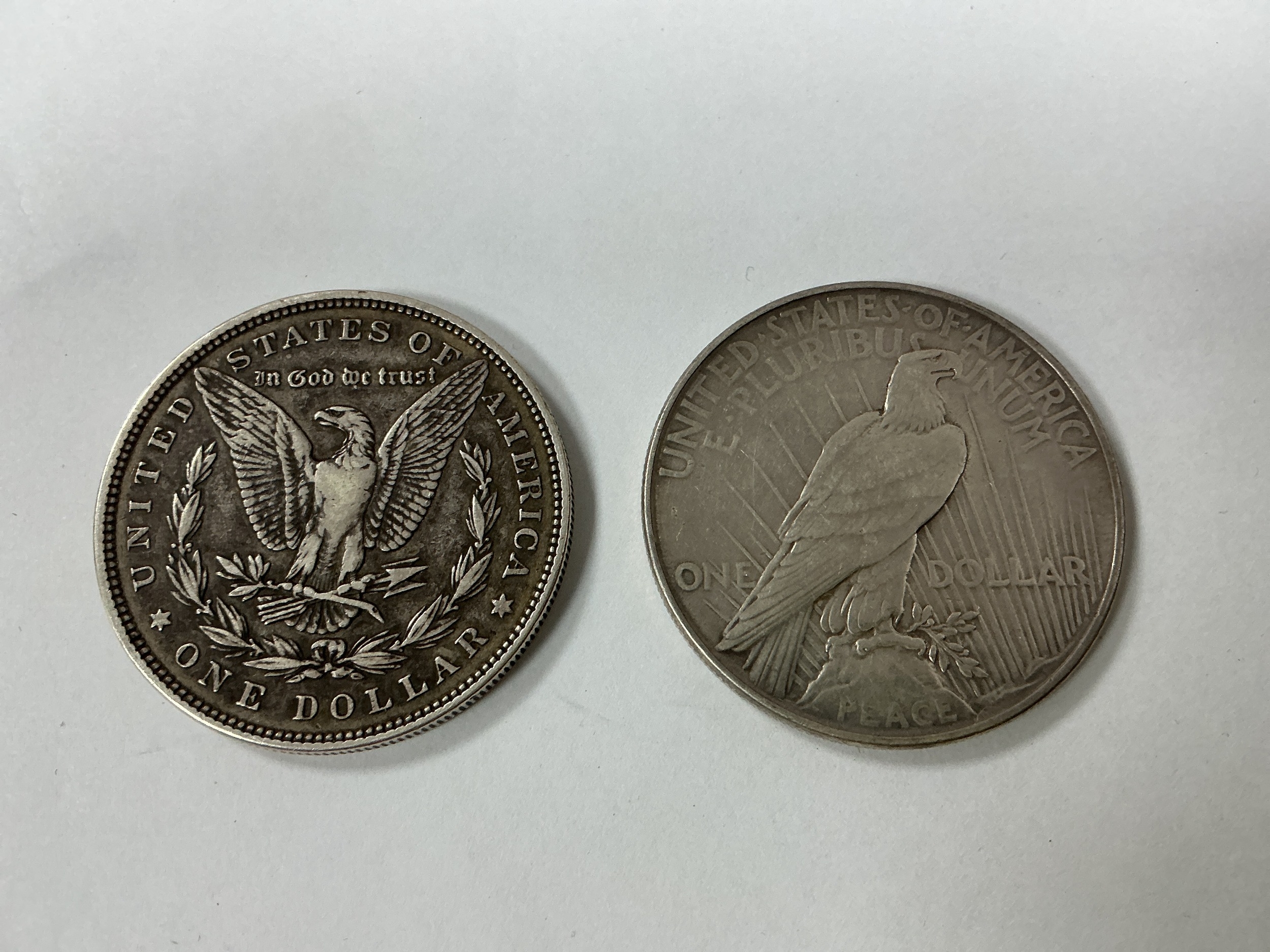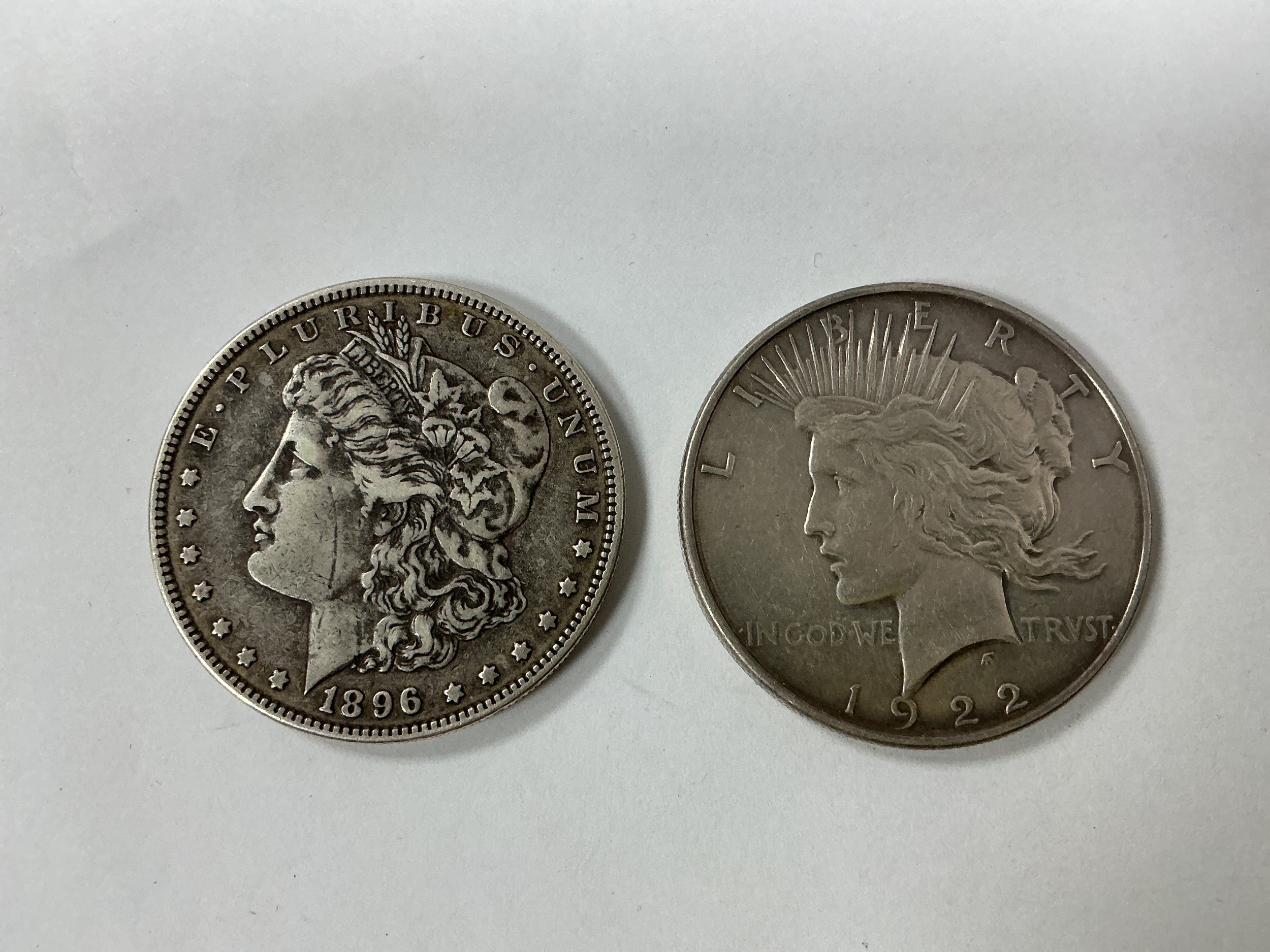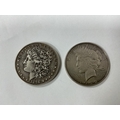 1896 USA Silver 'Morgan' Dollar, together with a 1922 USA silver peace Dollar.