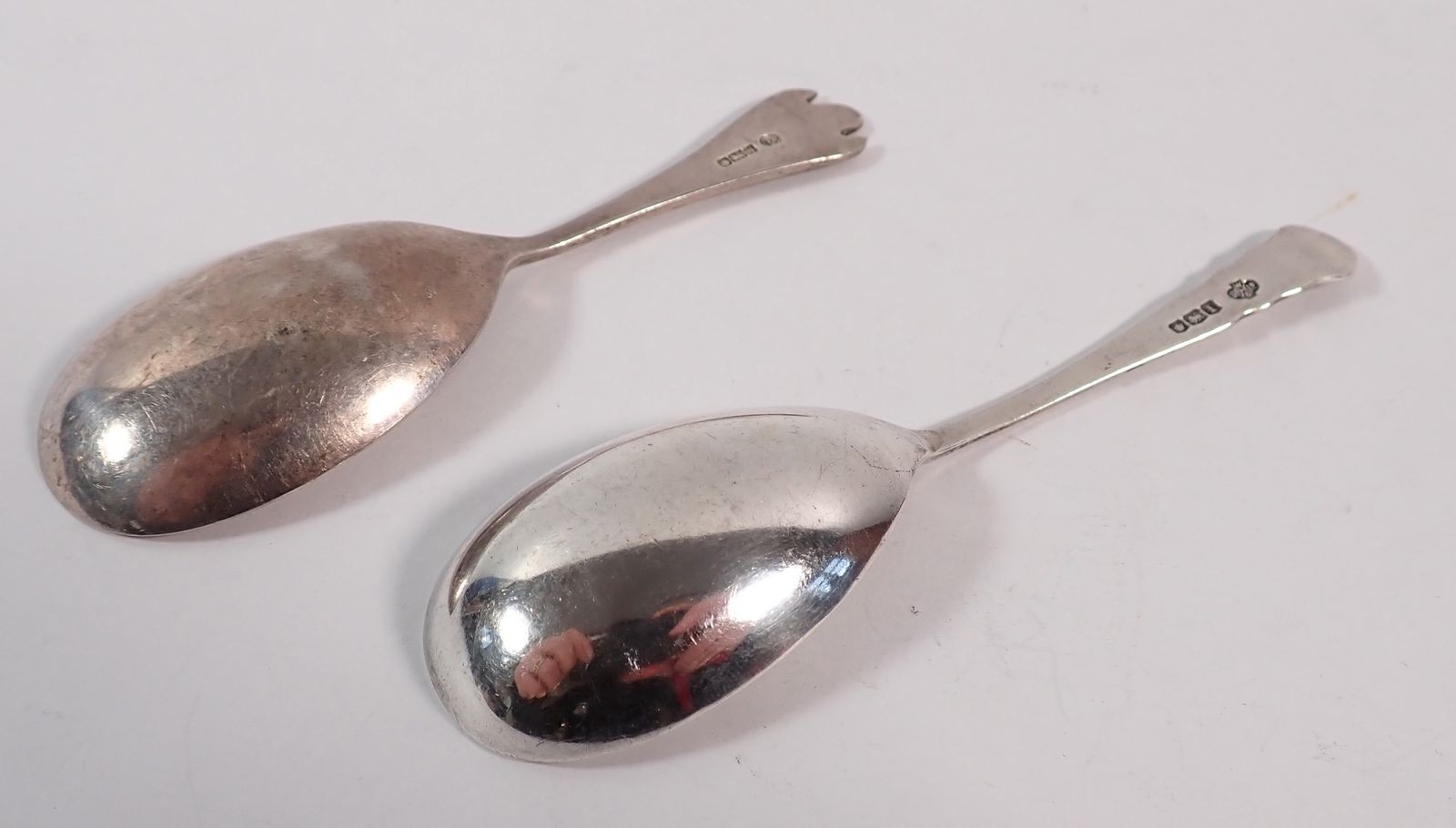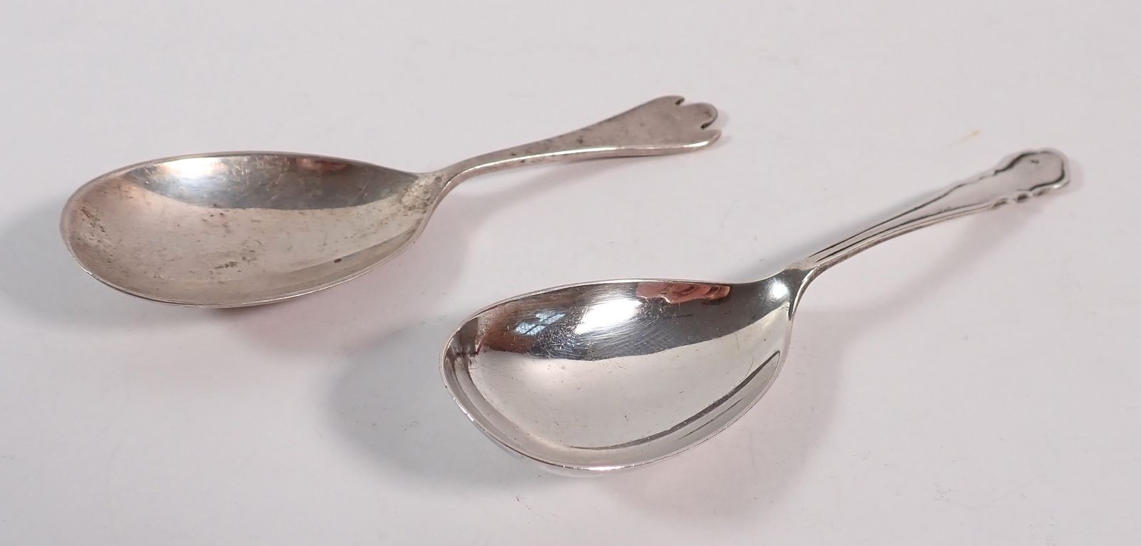 Two silver caddy spoons, Sheffield 1928 and 1975
