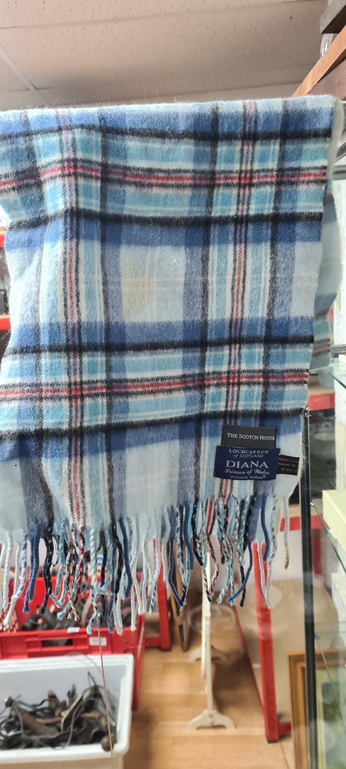 3 Ladies Scarves-Lochcarron Diana, Princess of Wales Memorial Tartan Cashmere Scarf, 1 Arrancrafts Irish Wool Scarf and a Himalayan Cashmere Scarf