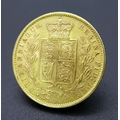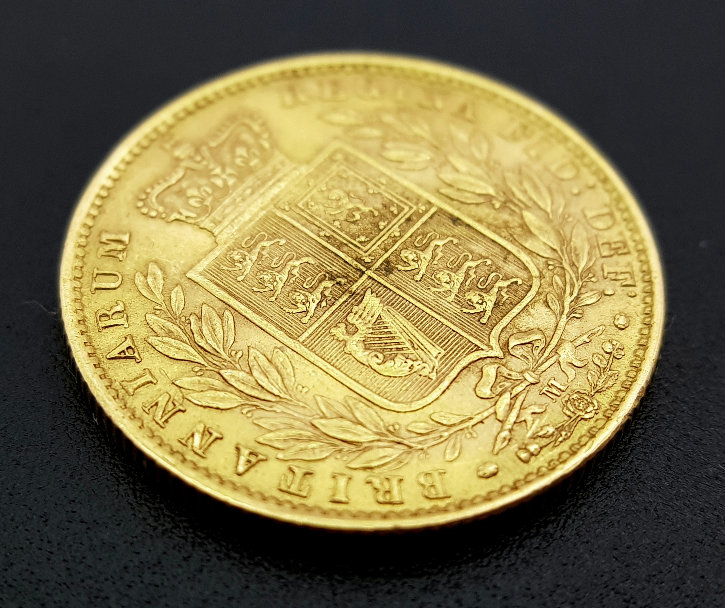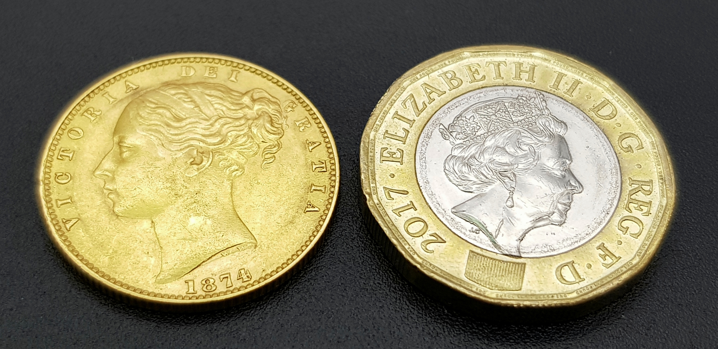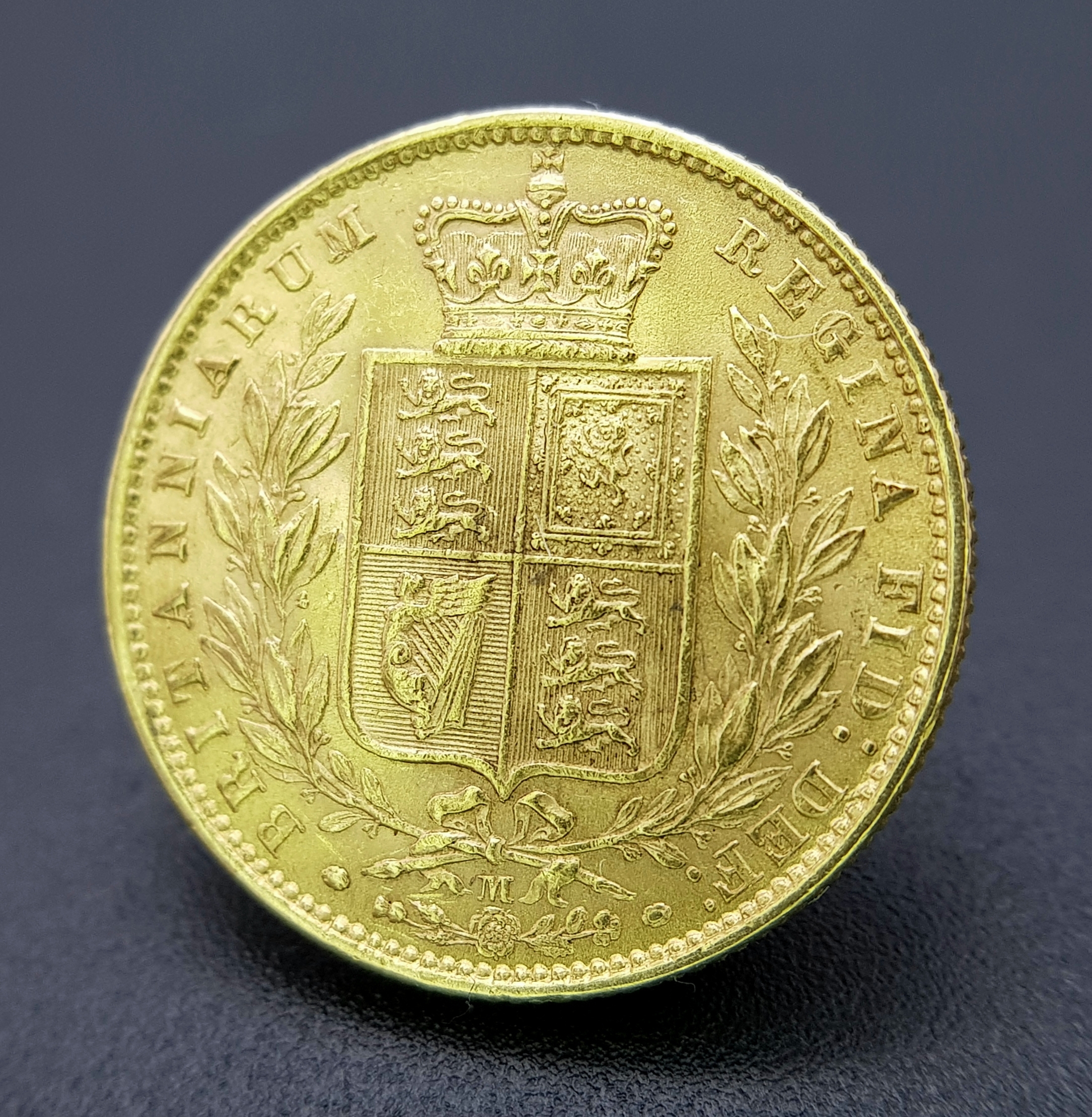 A 1874, QUEEN VICTORIA, MELBOURNE MINT, YOUNG HEAD, SHIELD BACK, FULL SOVEREIGN COIN. 9725 - 5. Ref: 9725 - 5