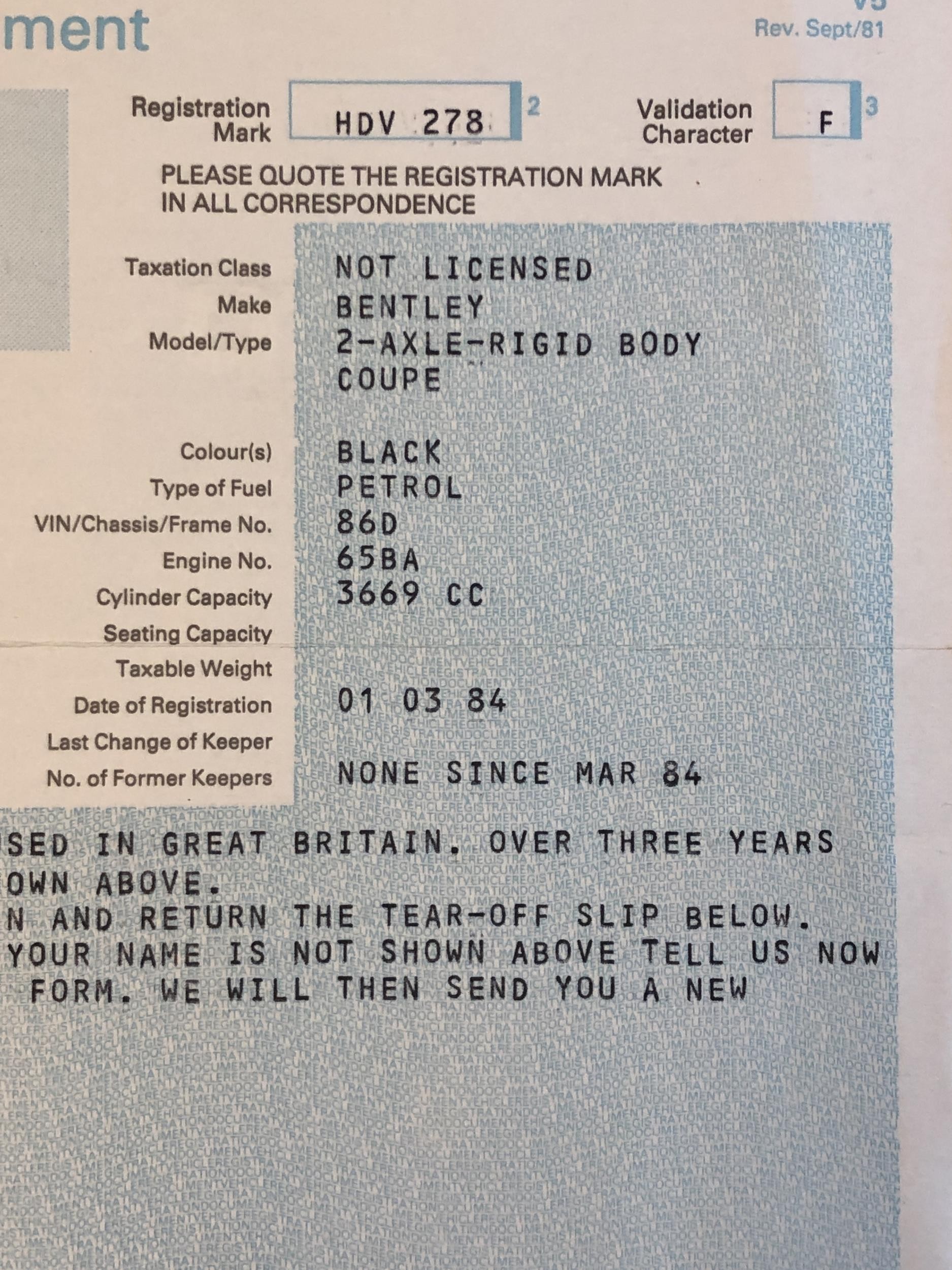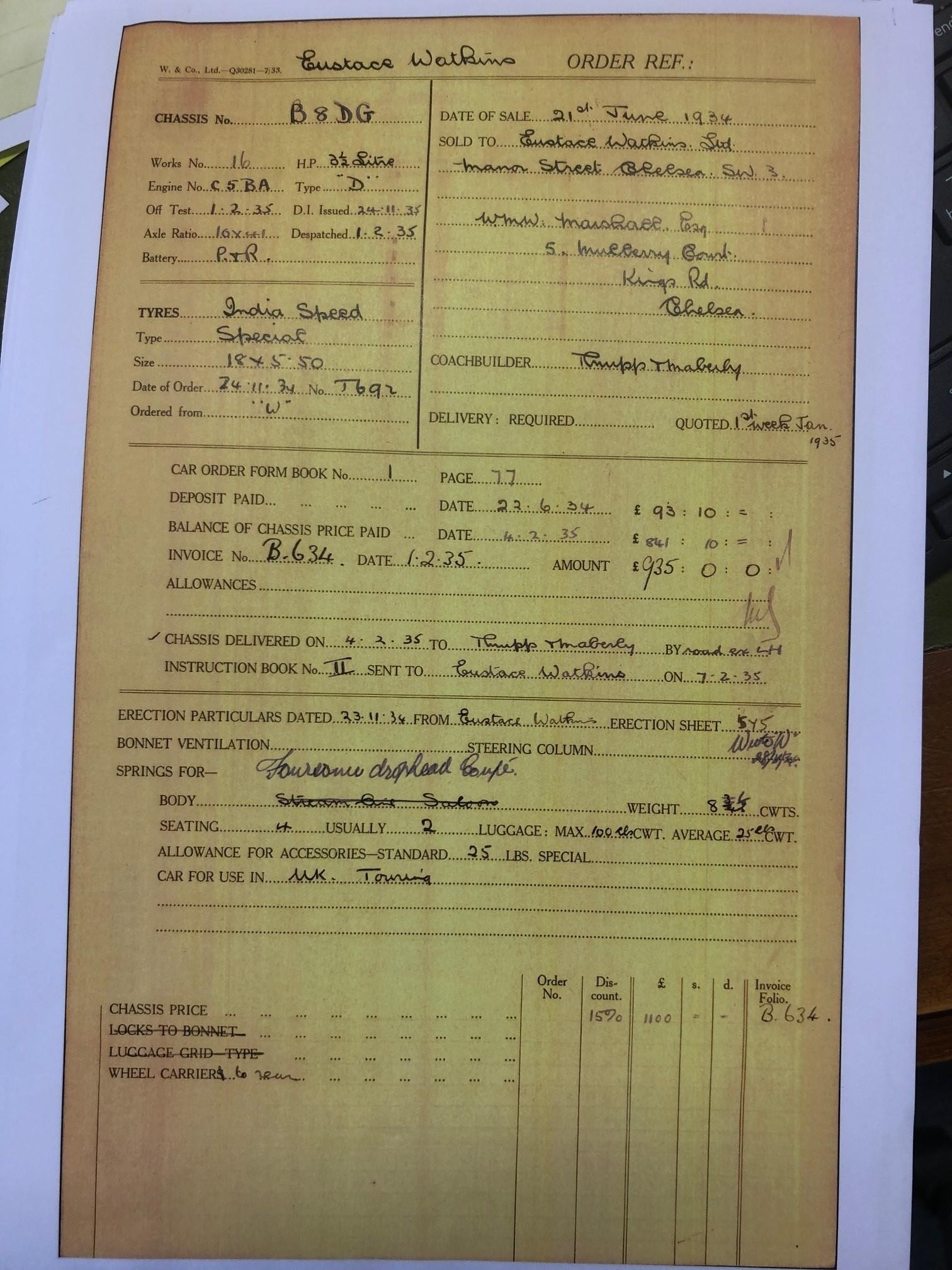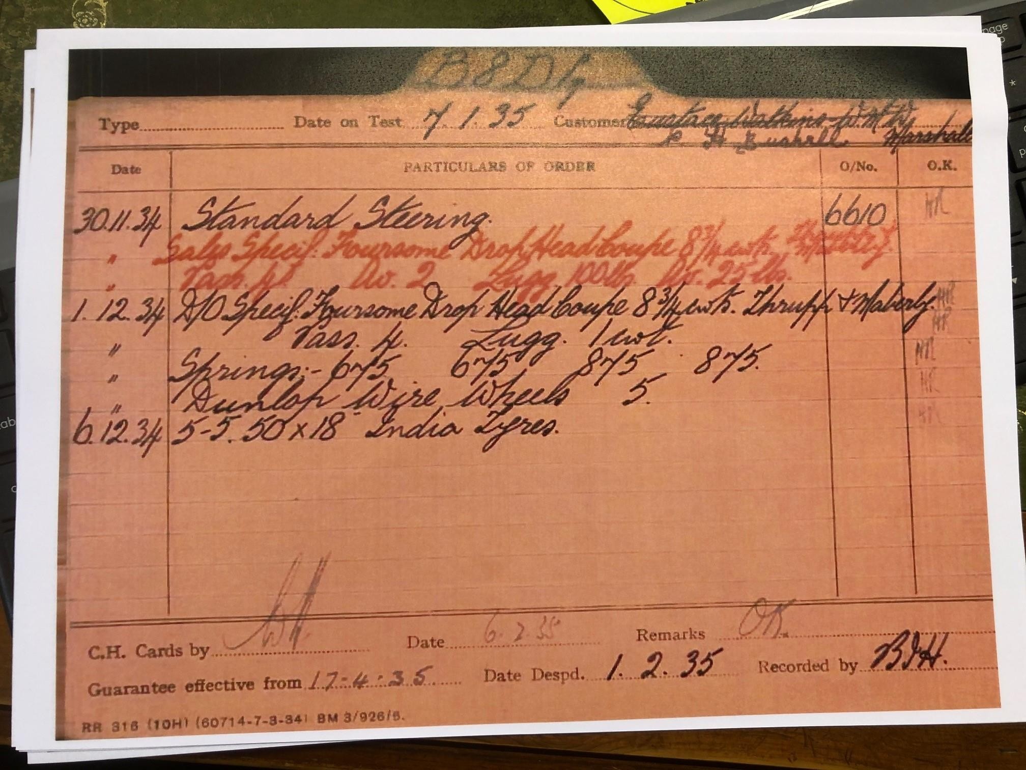 Exported to Australia, and re-imported in 1949 hence DVLA note this as year of manufacture, see the last few images relating to the ordering & build spec