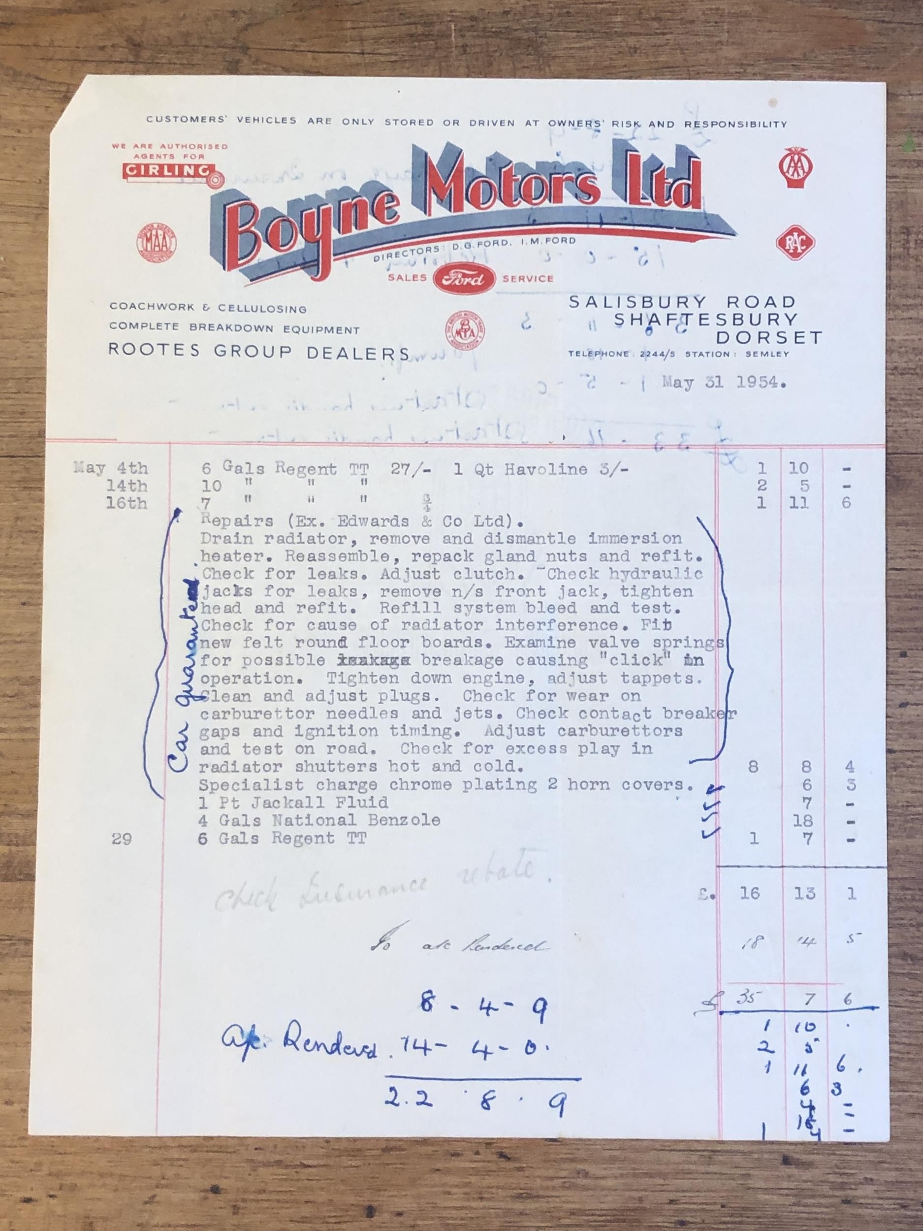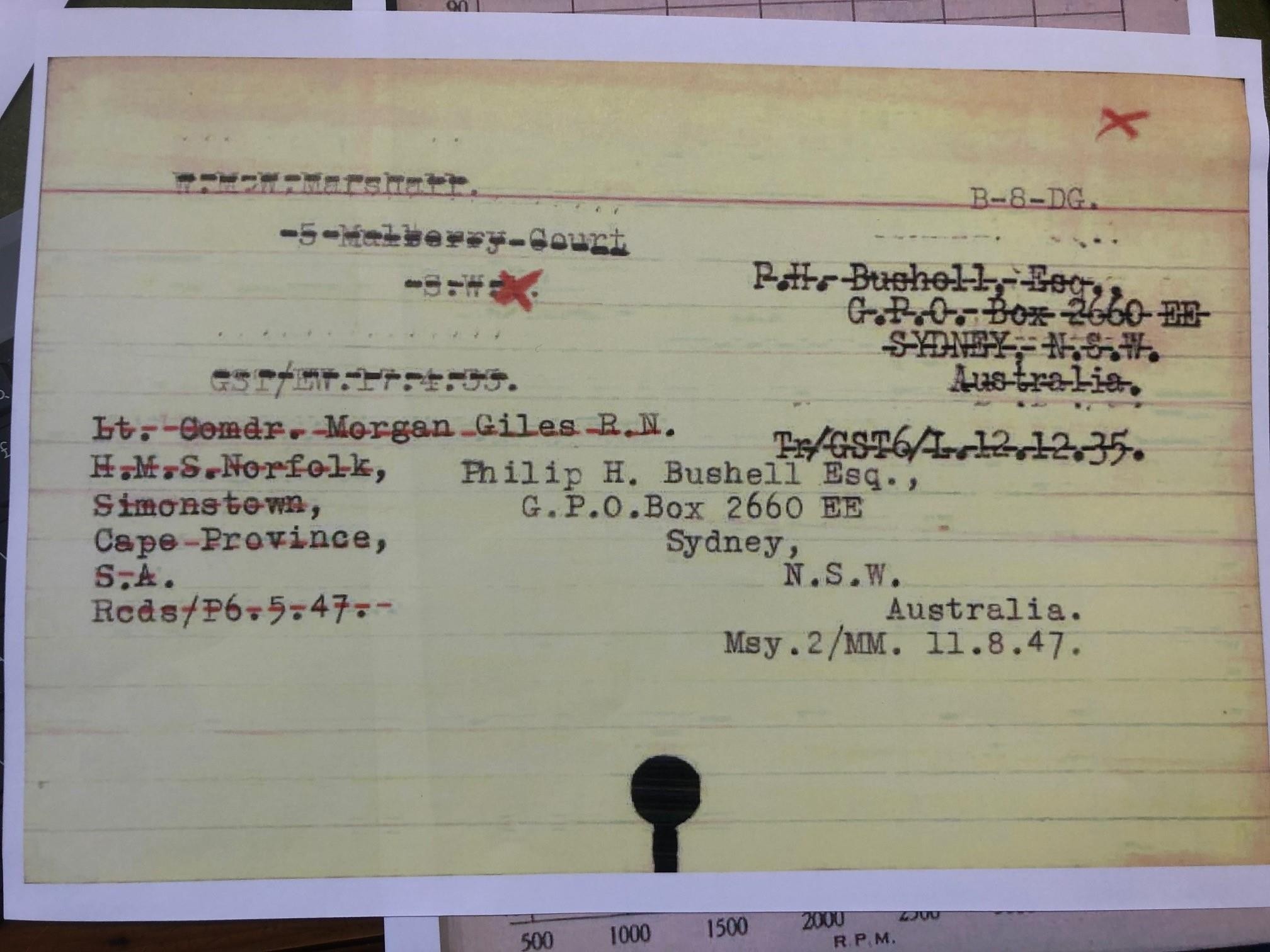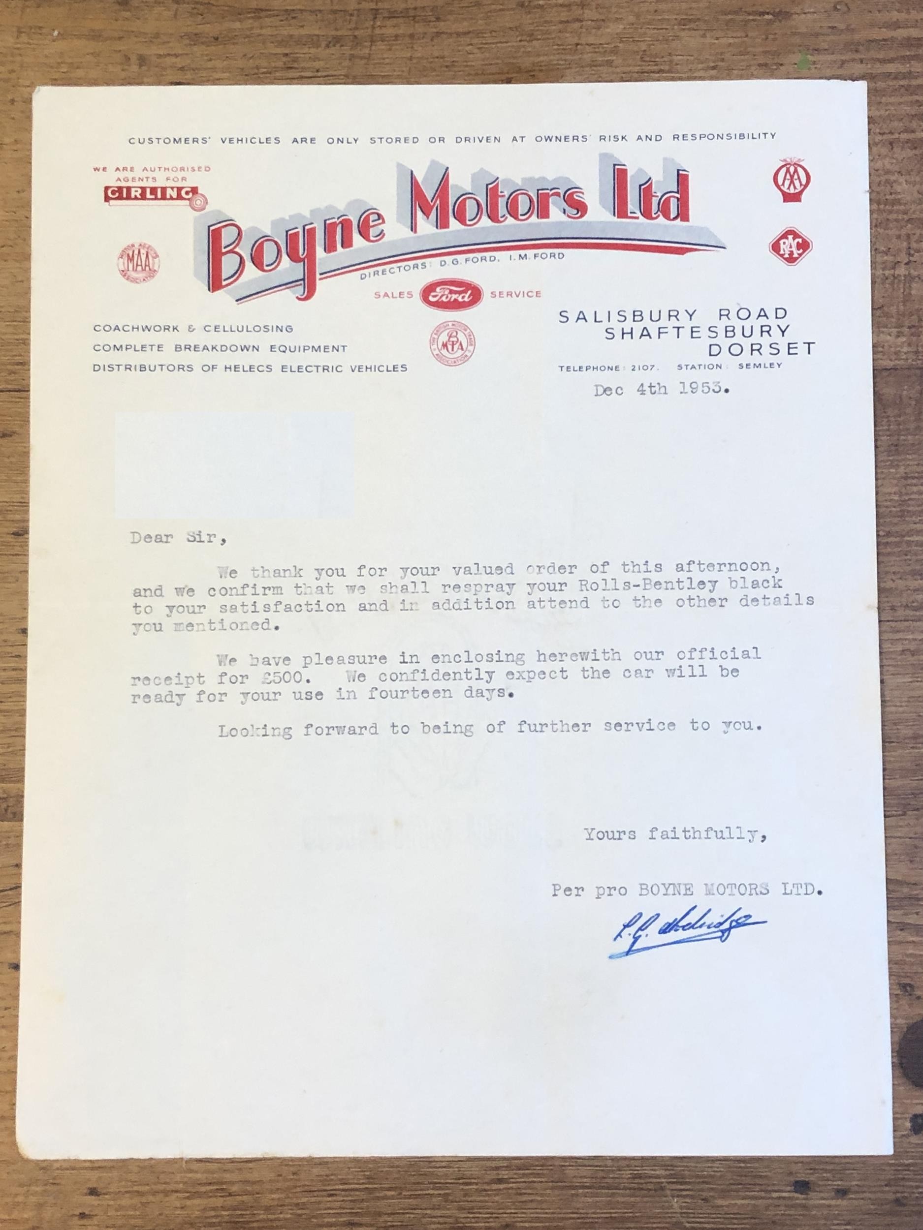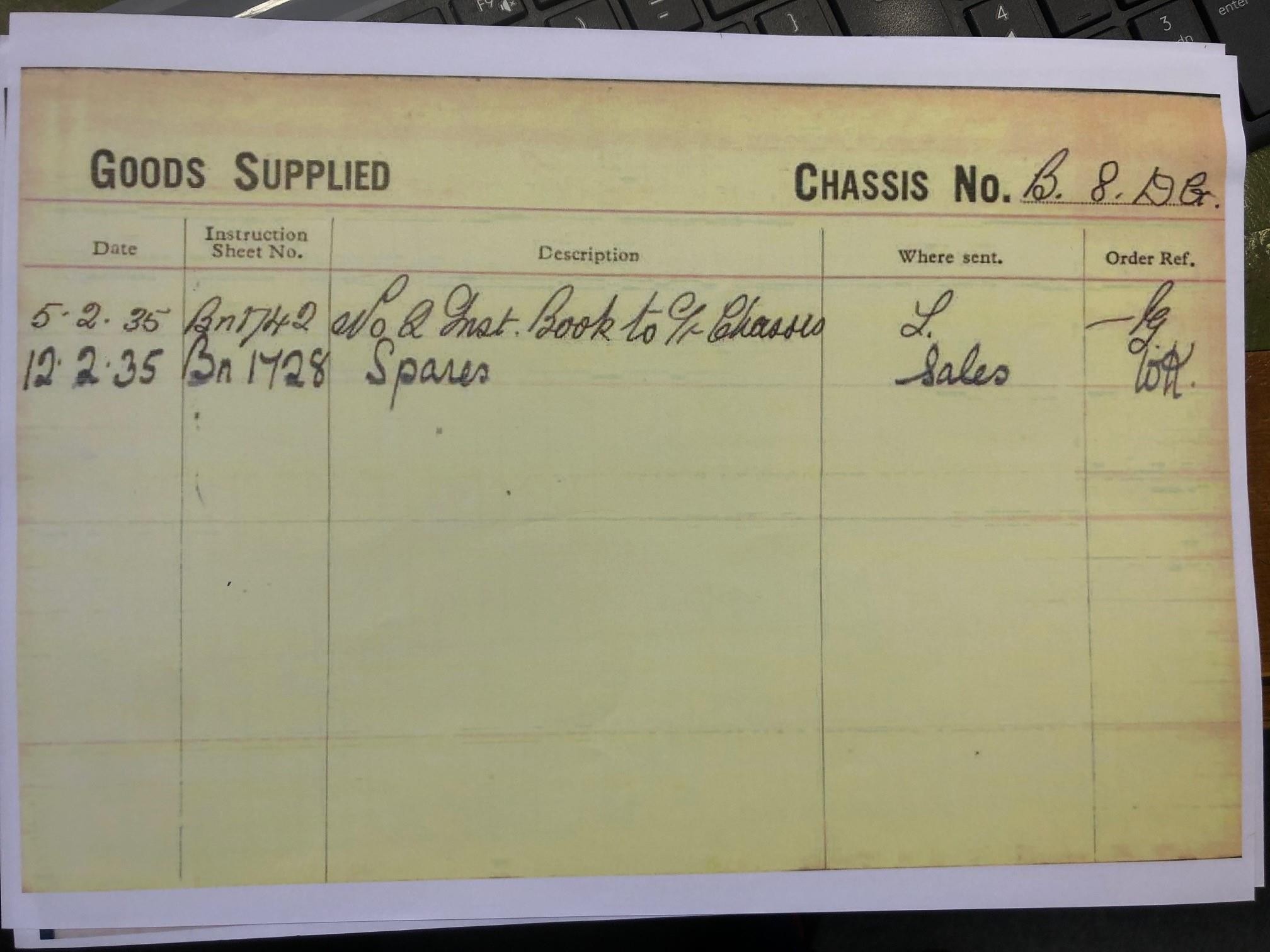 I imagine that delivery of his new car coincided with the sale of B8DG and this was when the car was acquired by Mr Phillip Bushell and exported to Australia, there appearing to be other further UK owner in the interim. As you well know the car came back to the UK in 1947.'