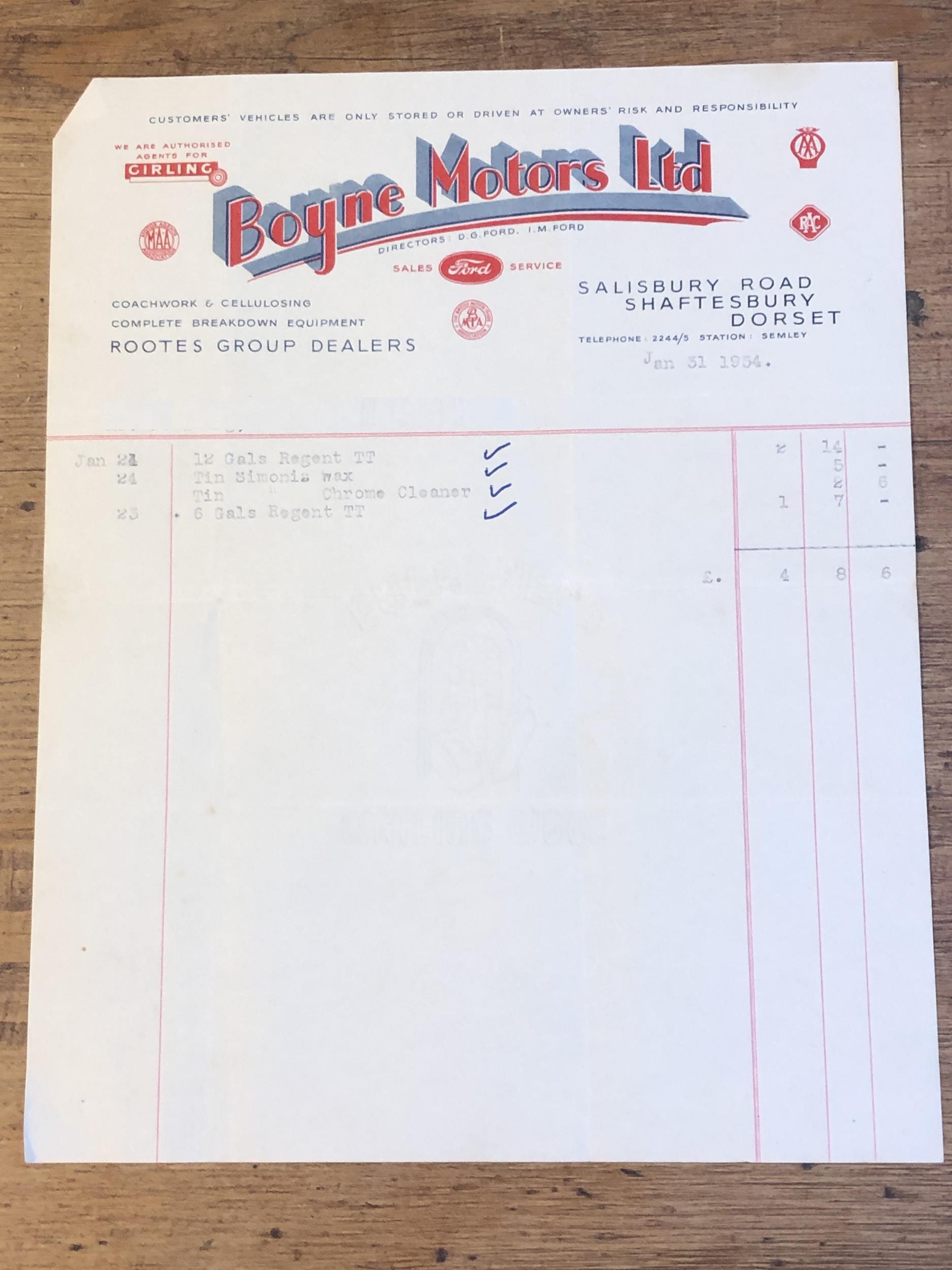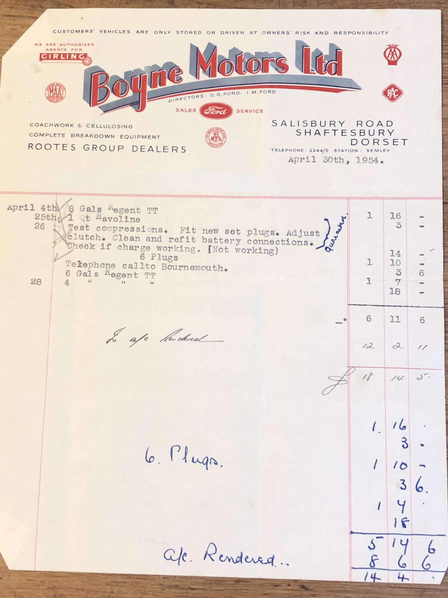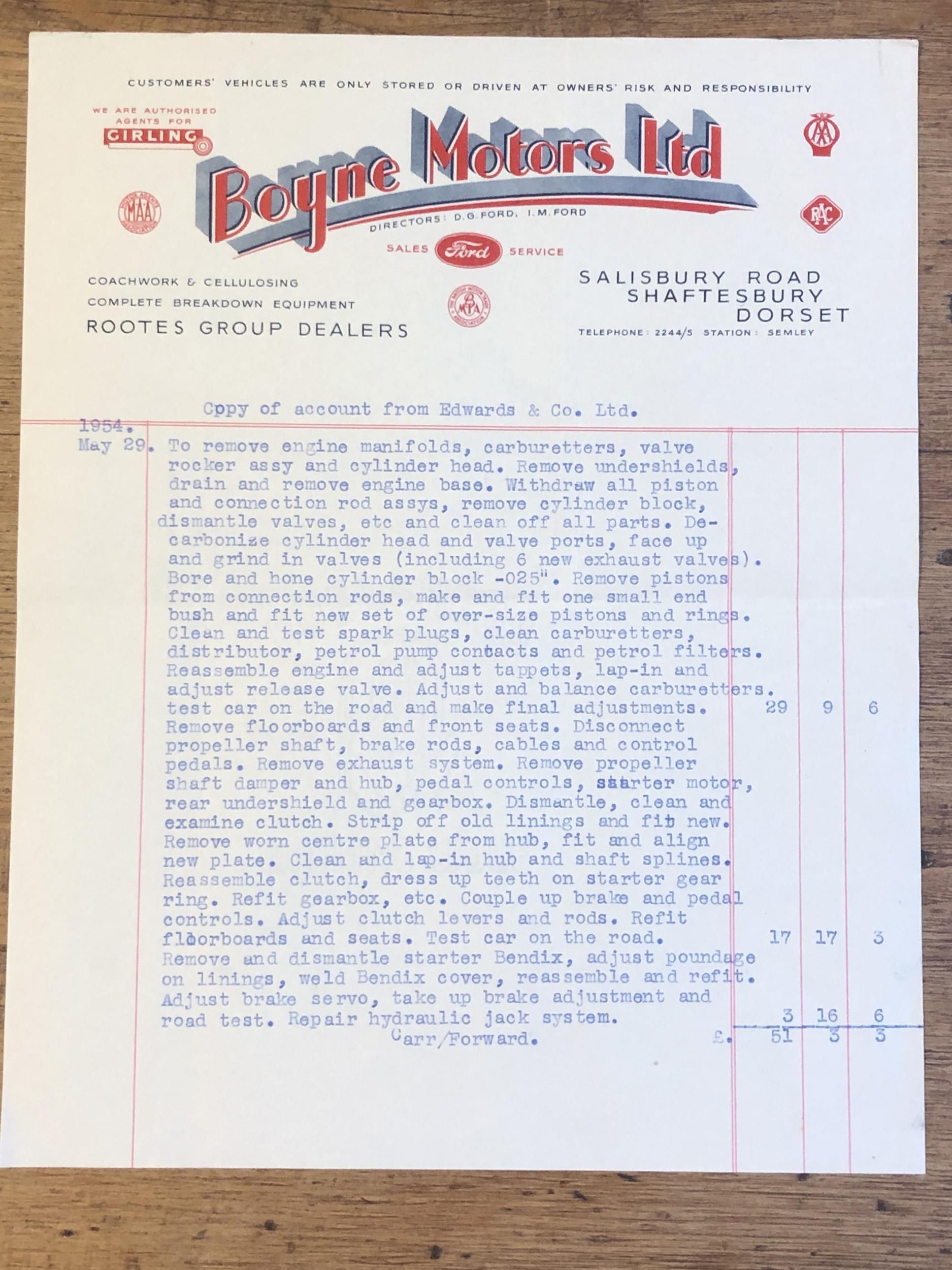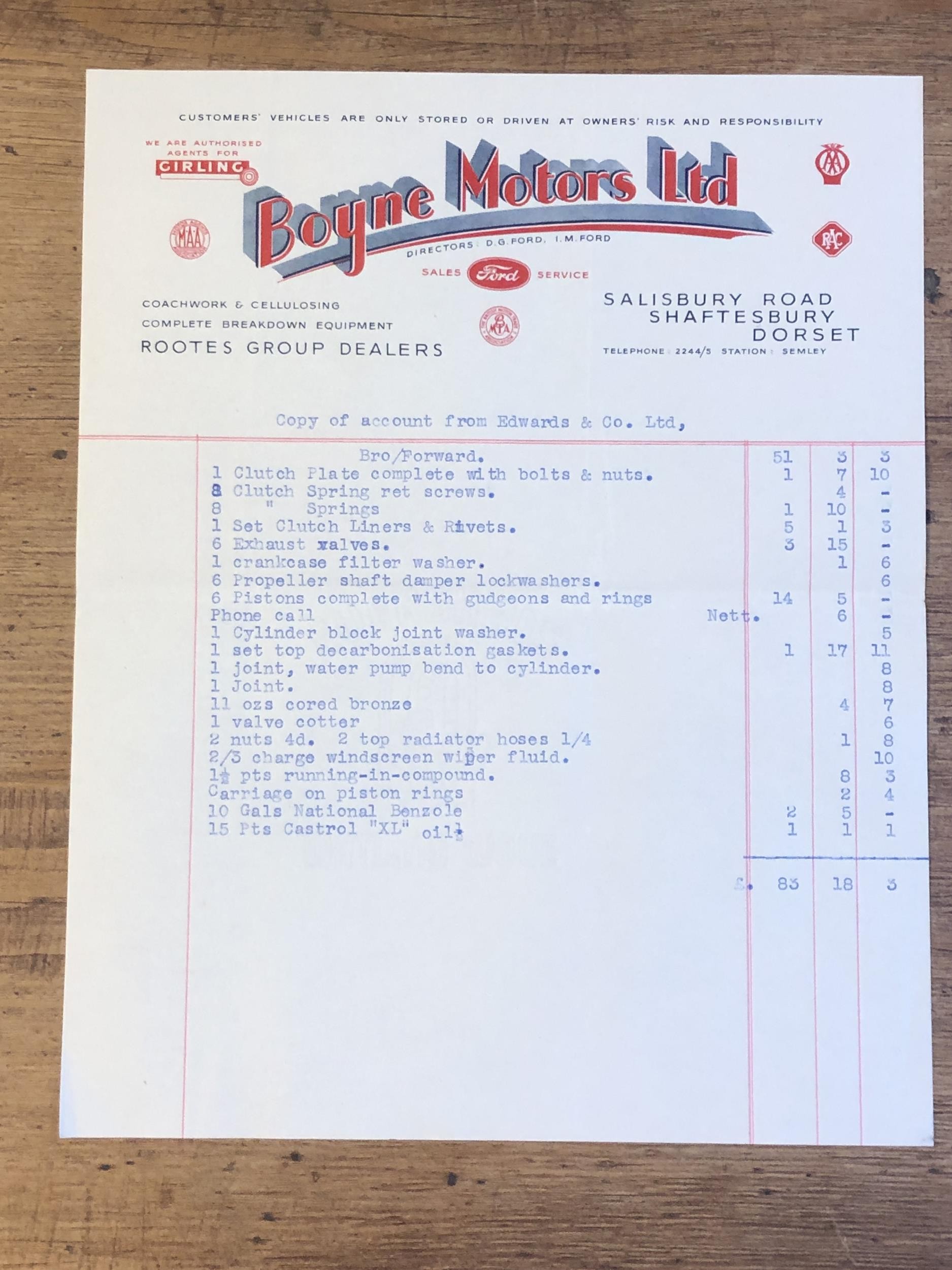 I imagine that delivery of his new car coincided with the sale of B8DG and this was when the car was acquired by Mr Phillip Bushell and exported to Australia, there appearing to be other further UK owner in the interim. As you well know the car came back to the UK in 1947.'
