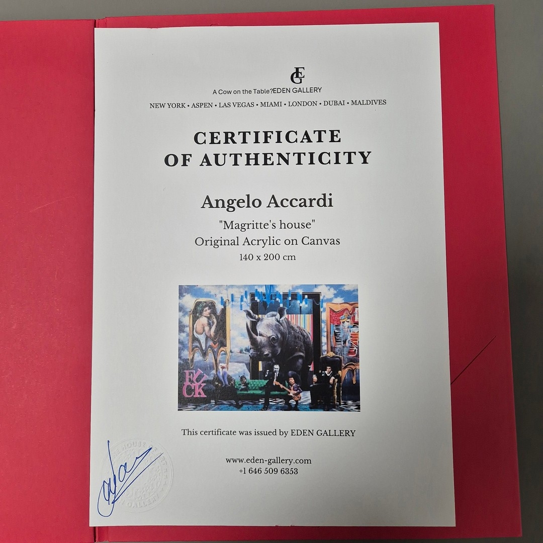 ANGELO ACCARDI (ITALIAN B. 1964). MAGRITTE'S HOUSE. (d) acrylic on canvas, 140cm x 200cm, framed. Certificate of Authenticity from the Eden Gallery. (Subject to ARR - see Buyers Conditions).