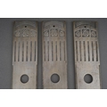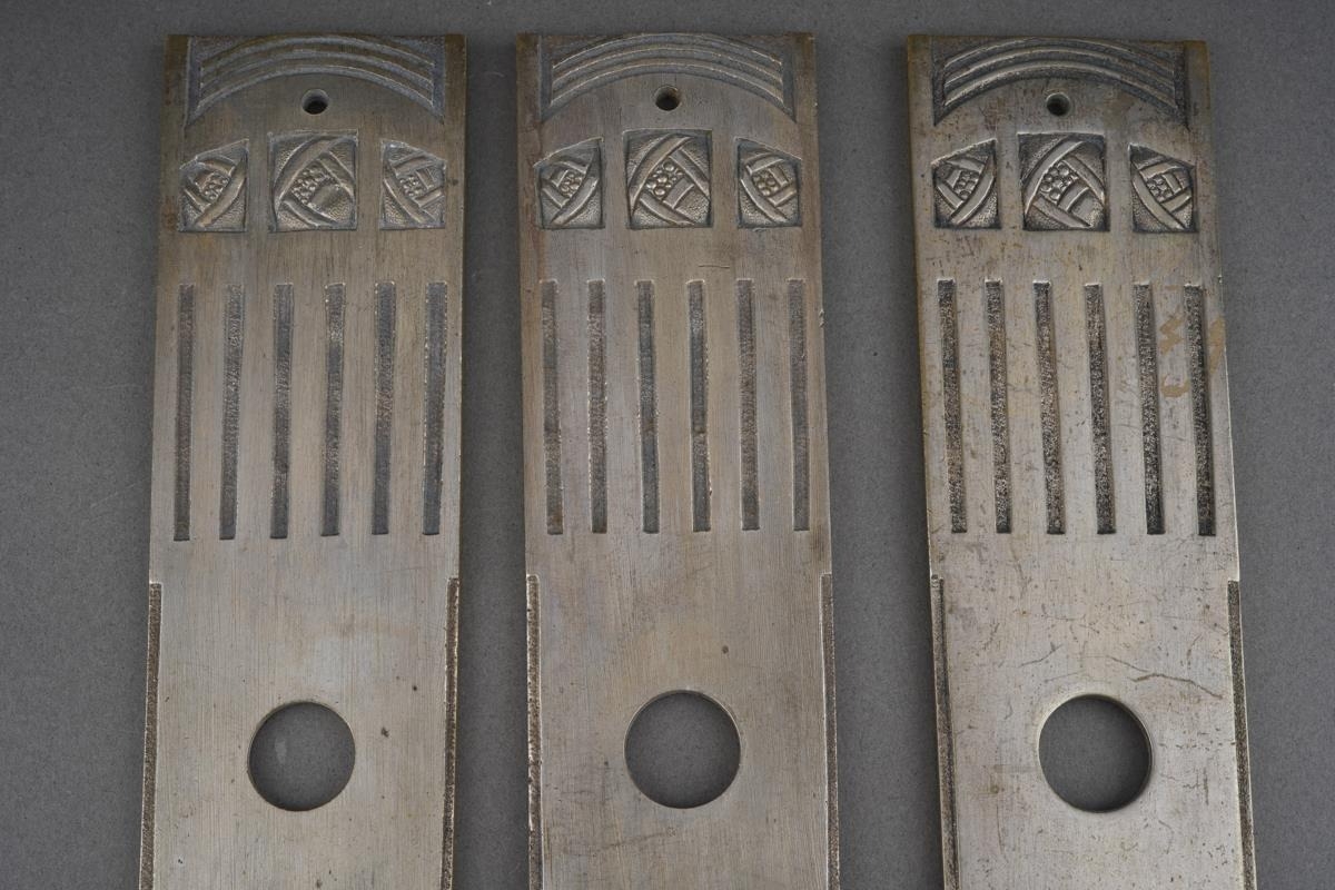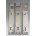 A set of three Mackintosh style Door plates, tapering white metal with impressed decoration, approx 37.5cm long [3]