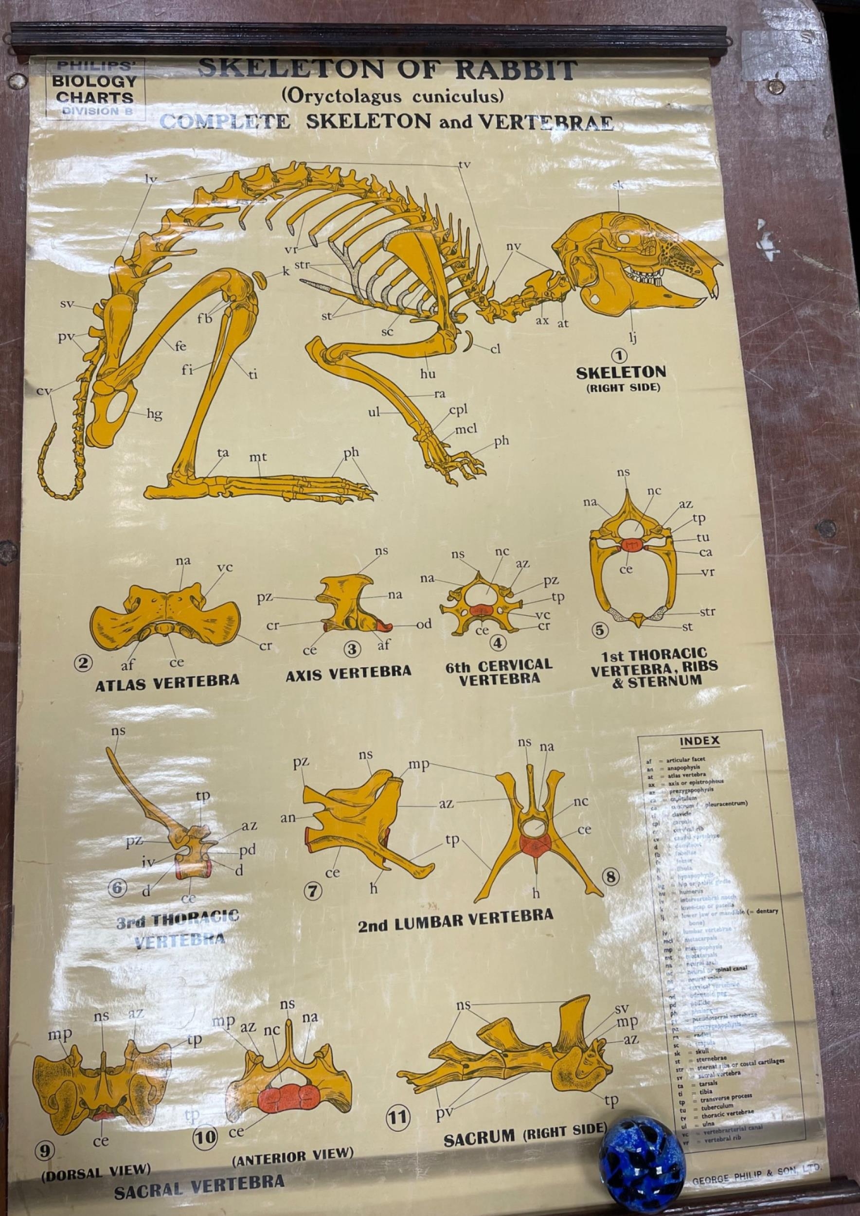VINTAGE EDUCATIONAL Philips Biology wall chart depicting SKELETON OF RABBIT -