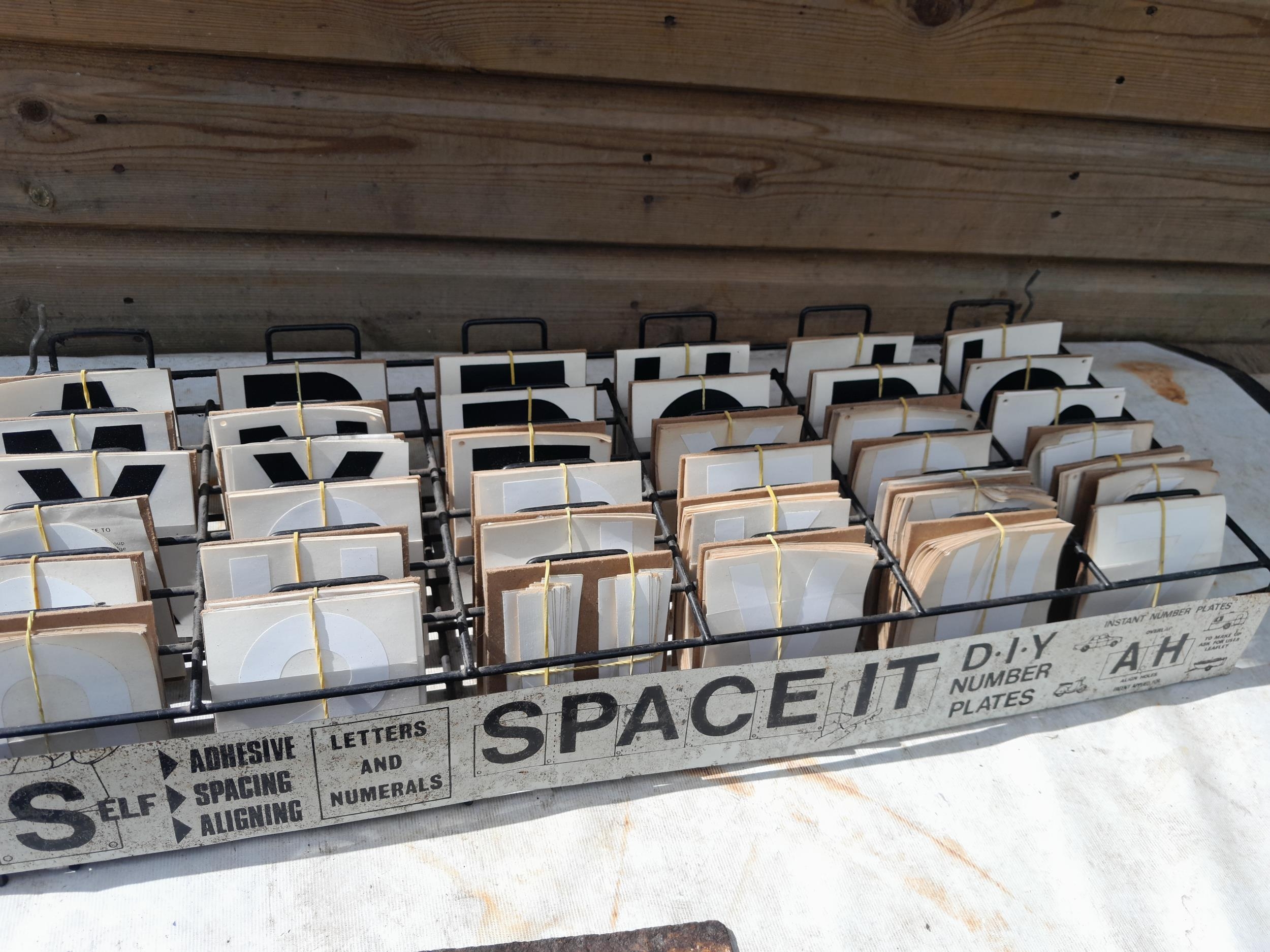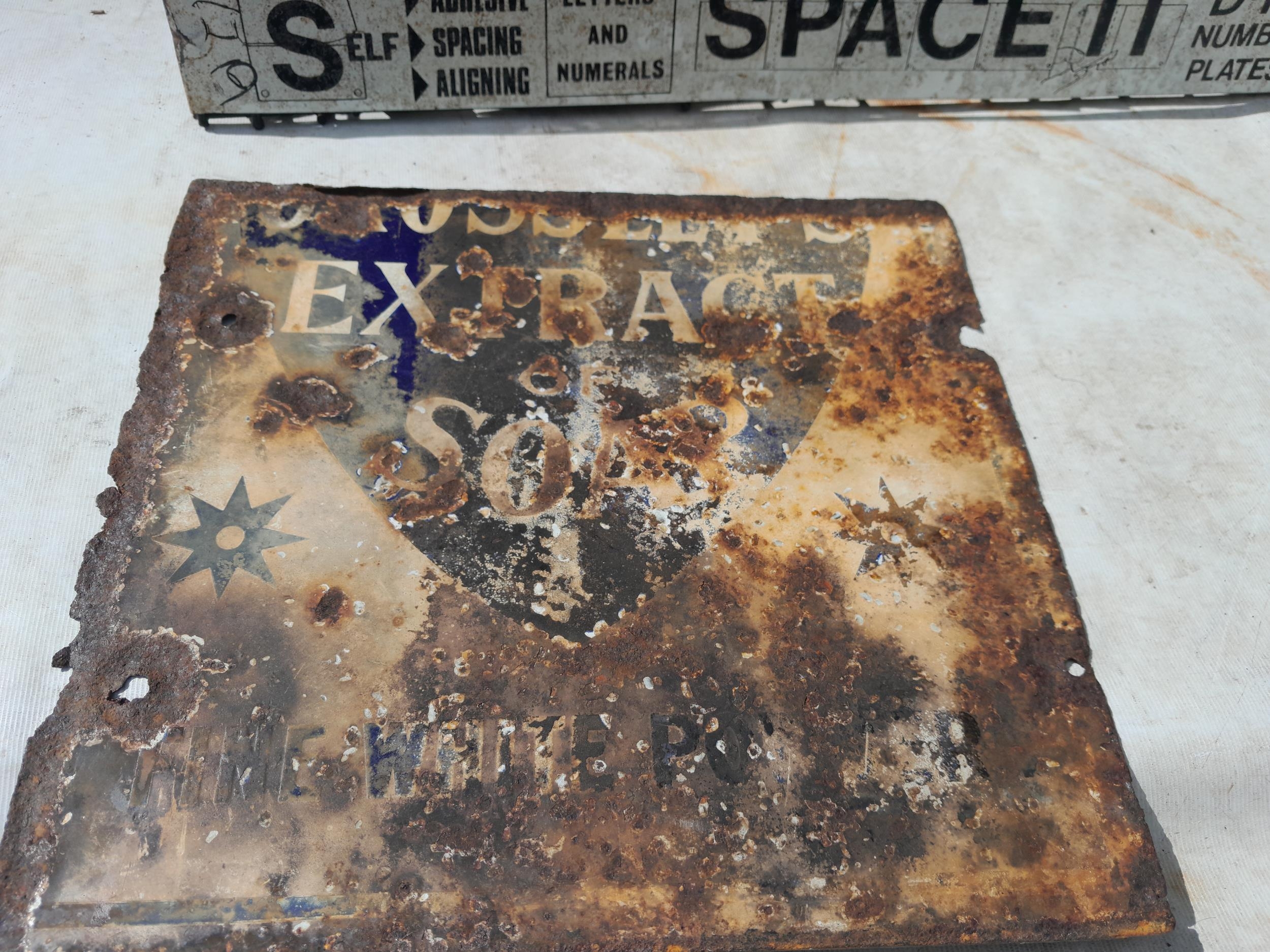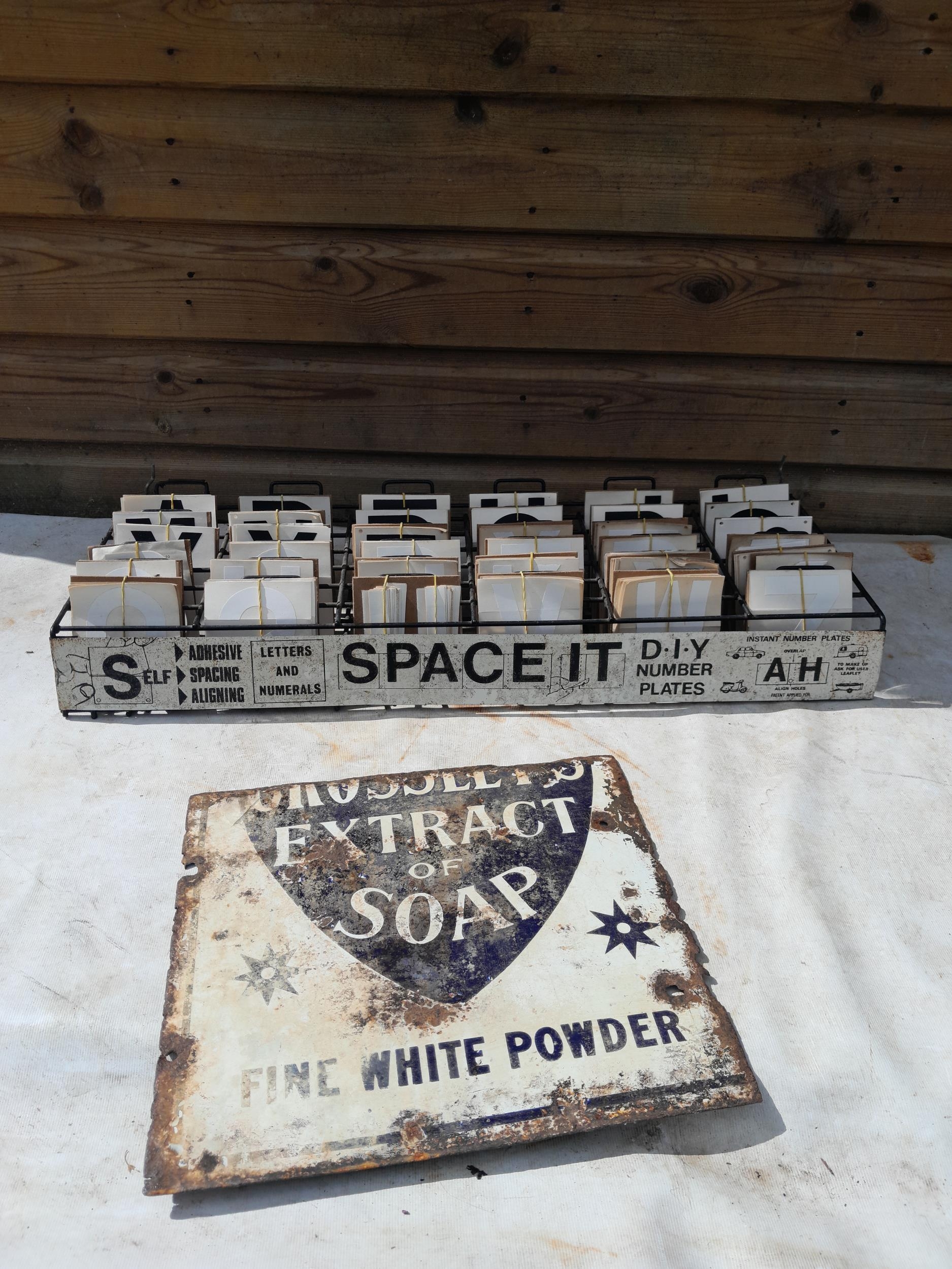 Vintage advertising letter plate stand with 1/2 a double sided enamel sign