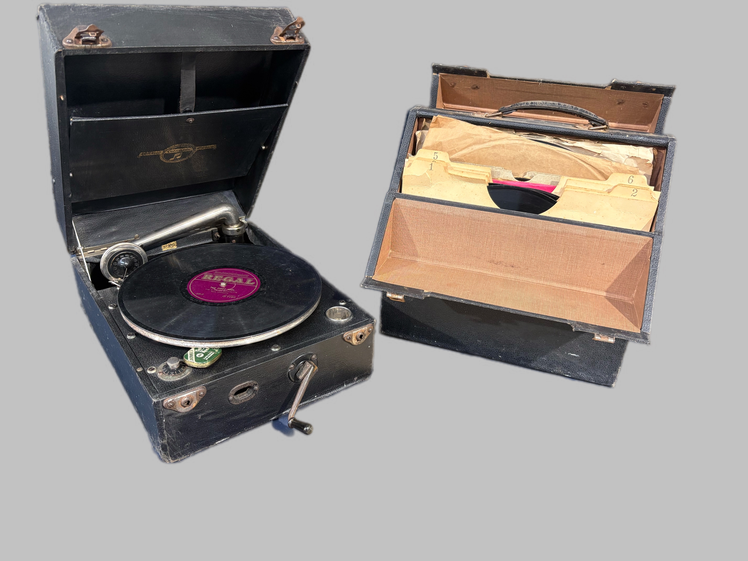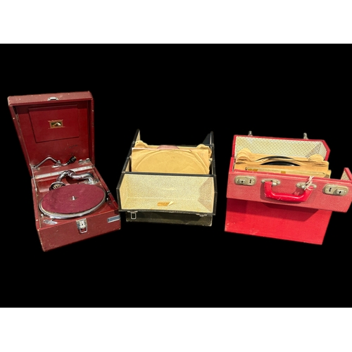 Old record player and case of records