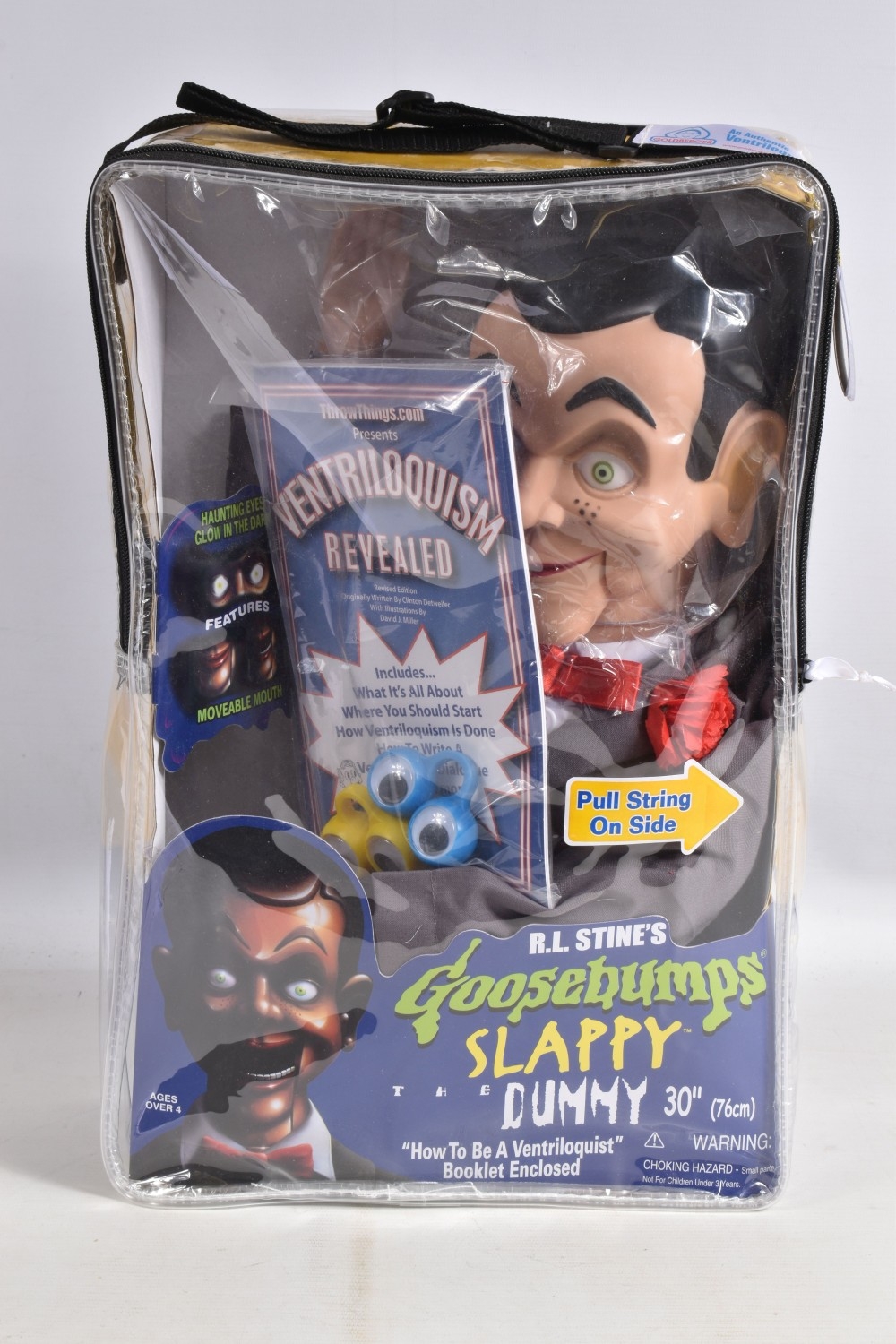 A GOLDBURGER 30 R.L. STINE'S GOOSEBUMPS SLAPPY THE VENTRILOQUIST DUMMY, no. 1305, pull string operates mouth, appears new in its internal packaging and outer plastic carry case, slight wear to back