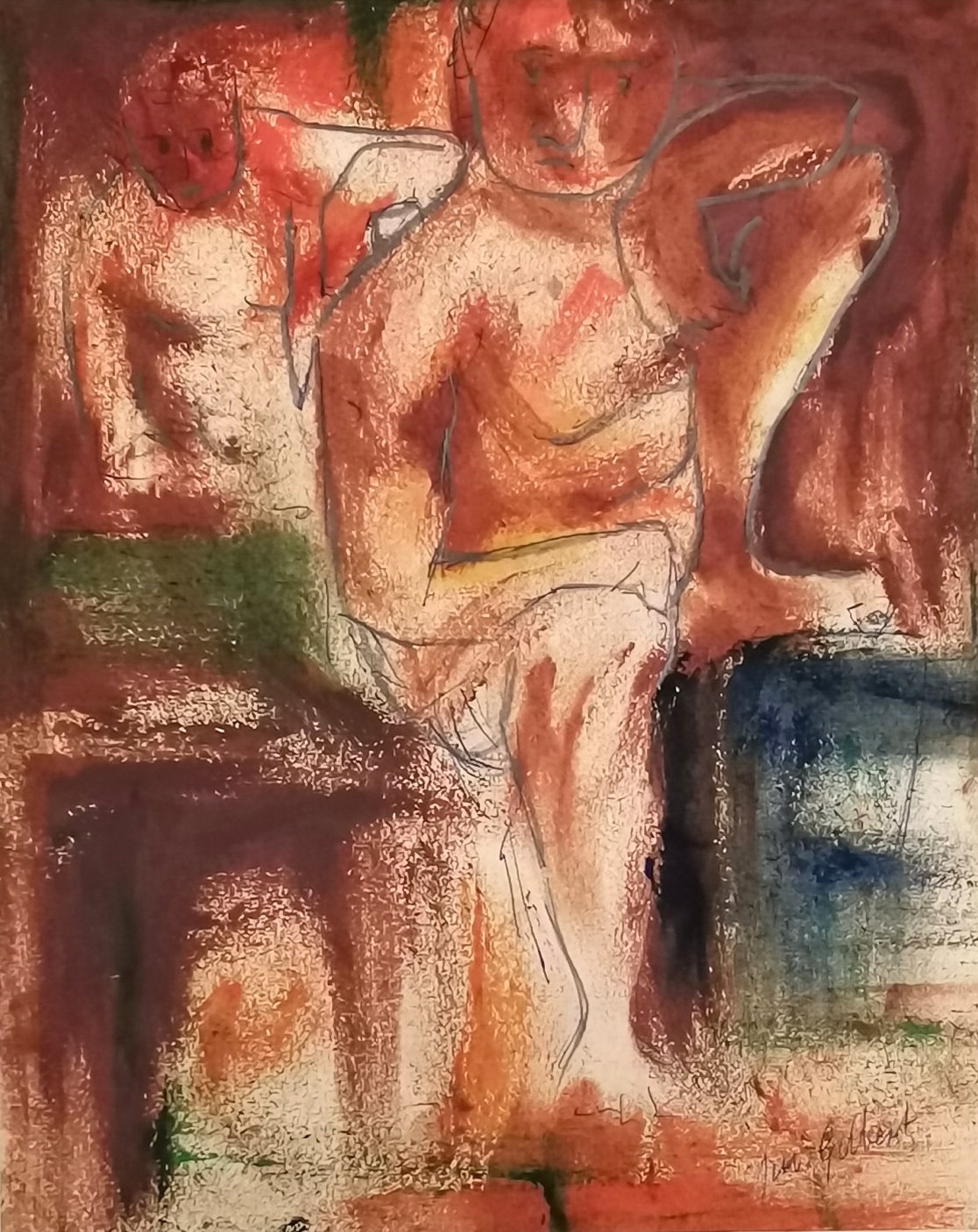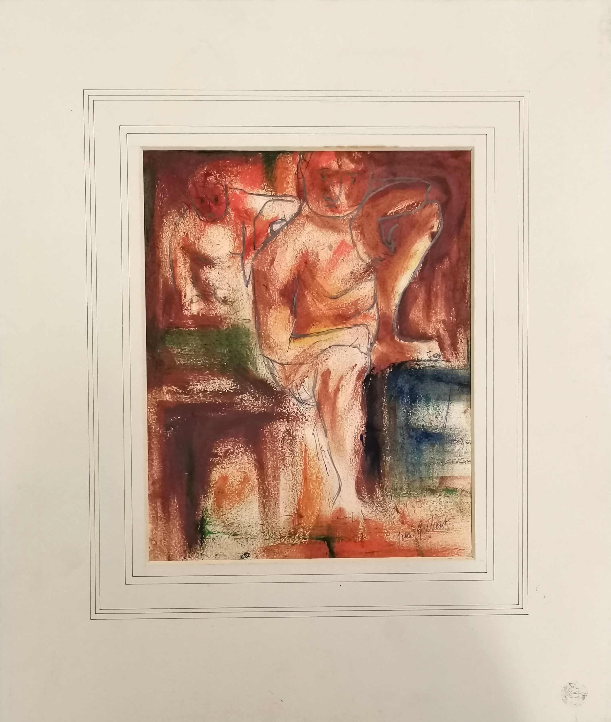 Jim Gilbert (1933-95) mixed media painting in cubist style - mount 38cm x 32.5cm