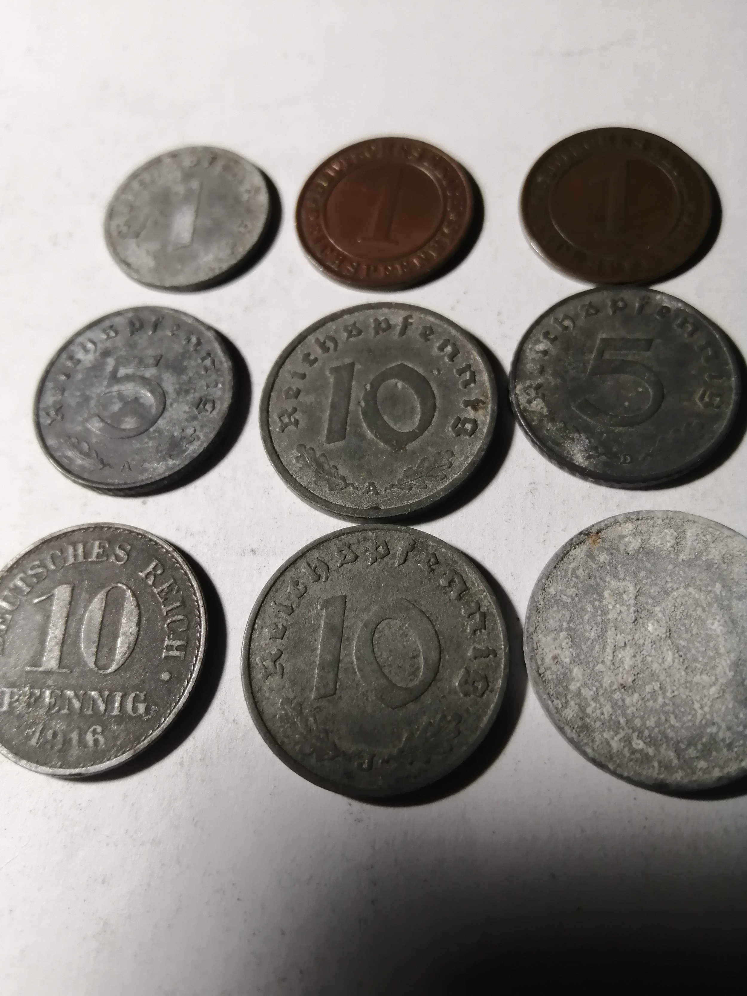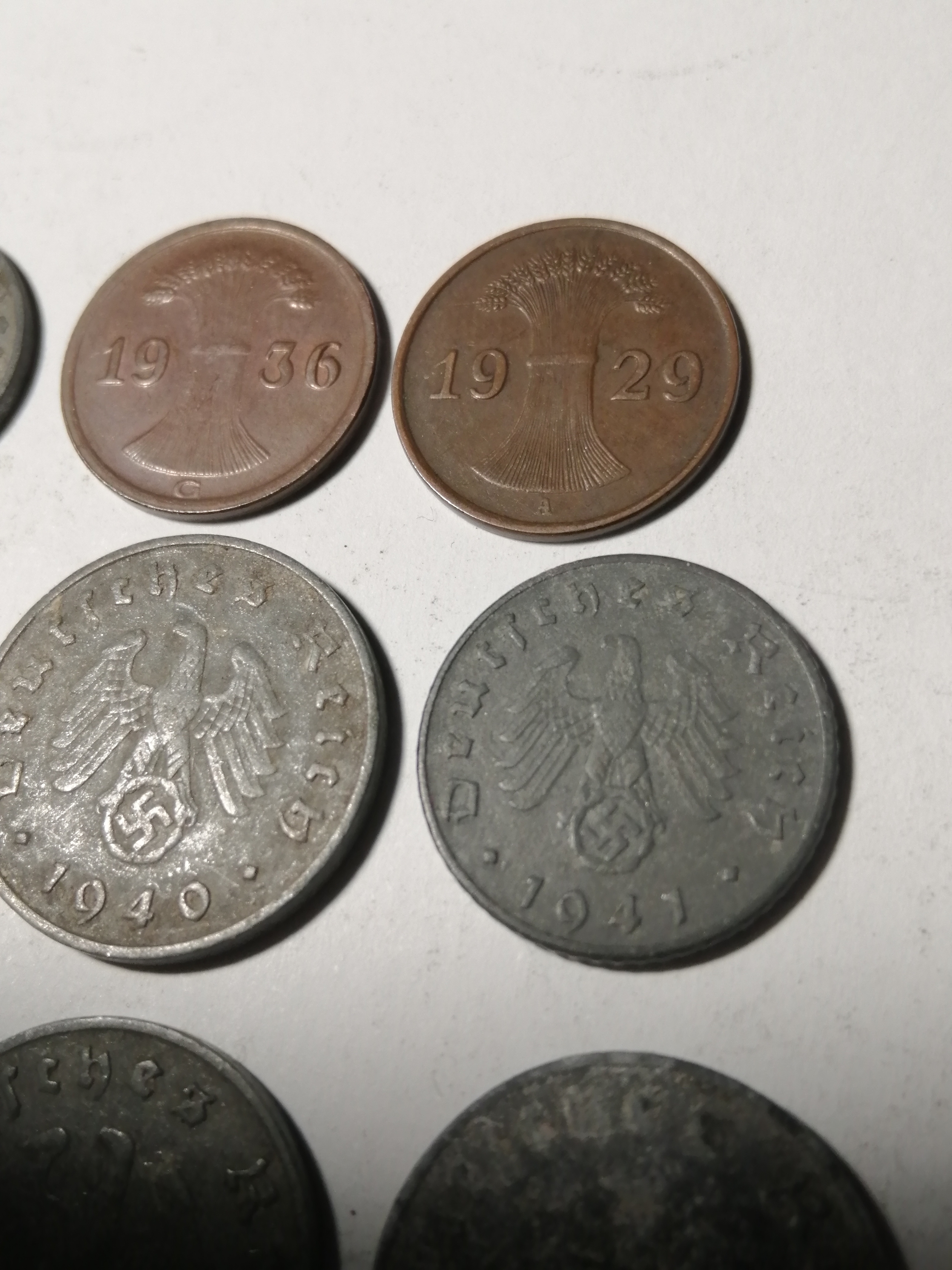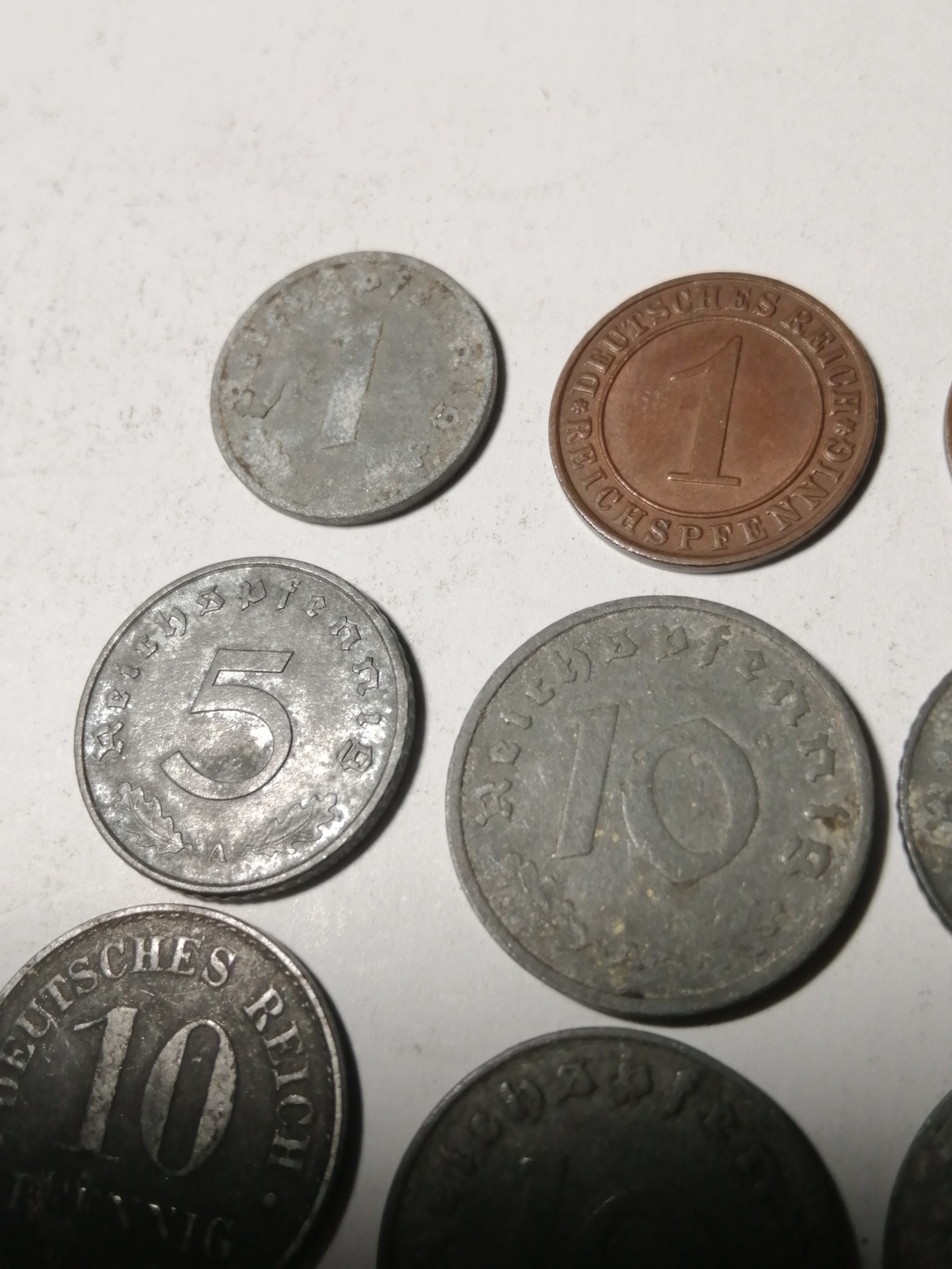 COINS : GERMANY 9 WWl and WWII coins Many with swastika on the reverse