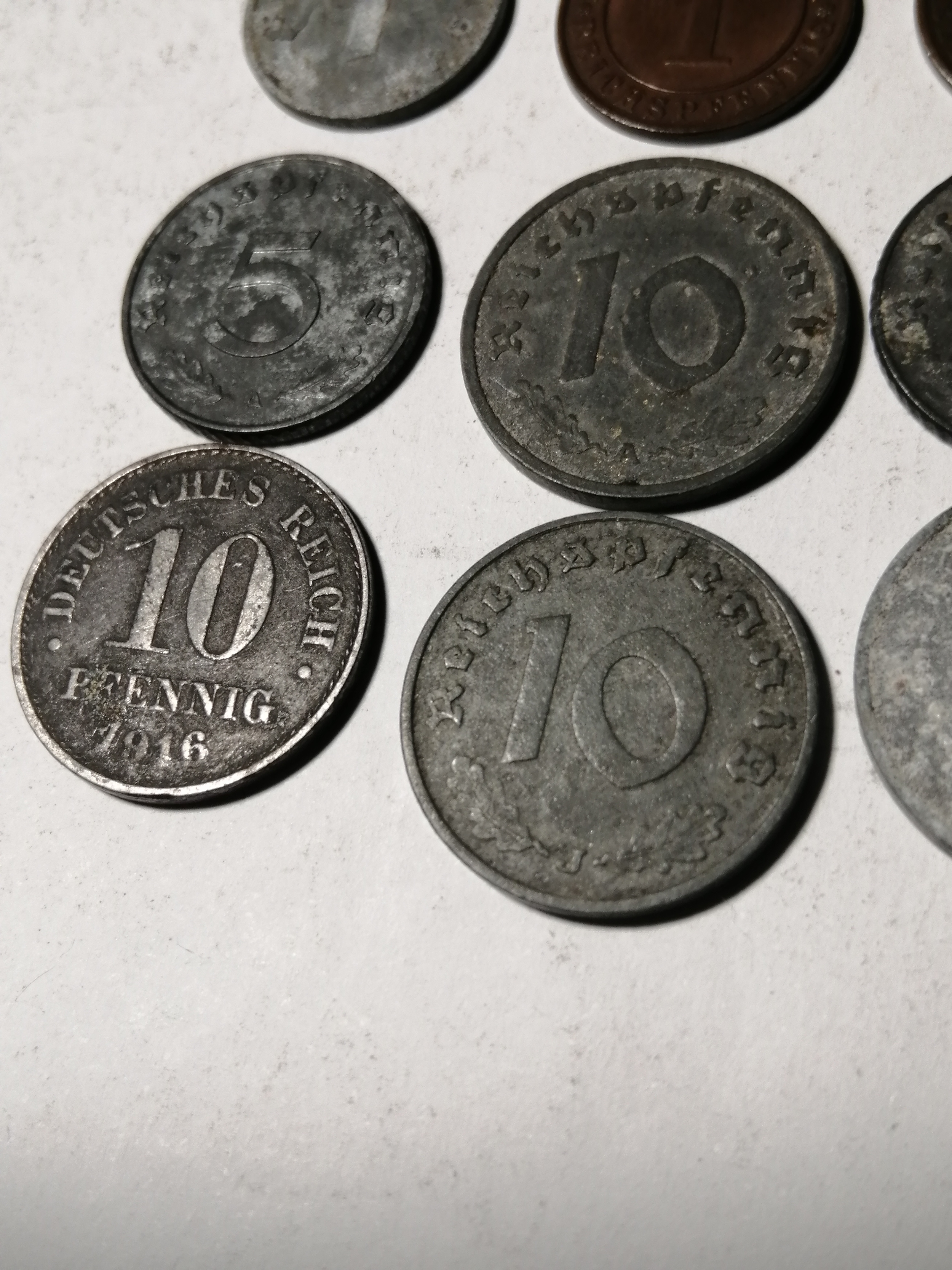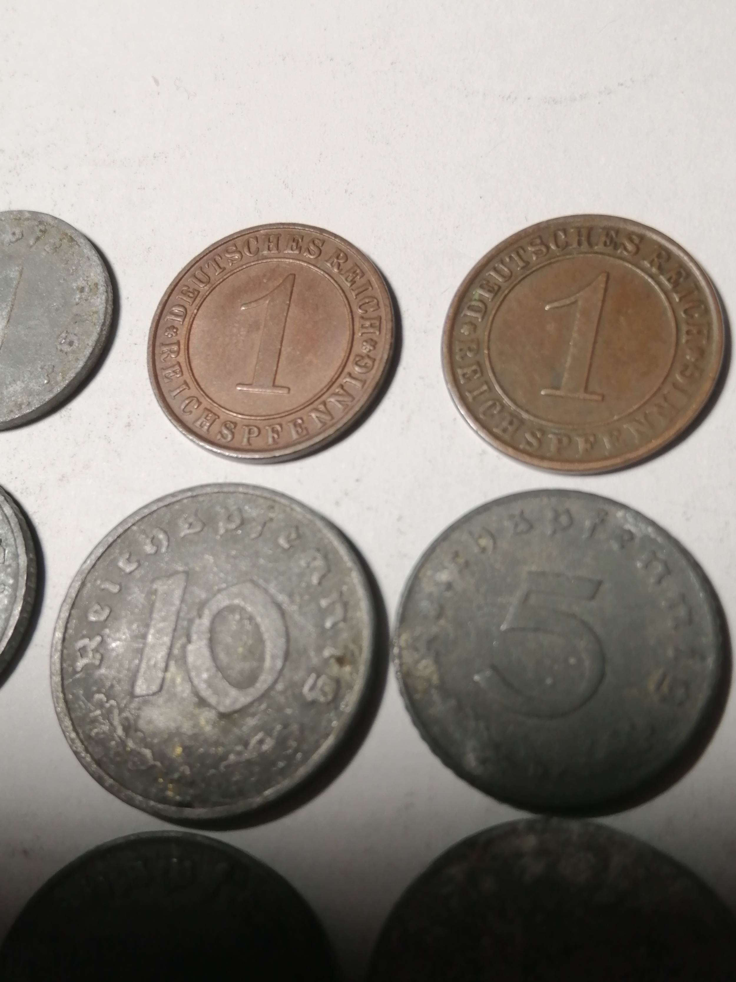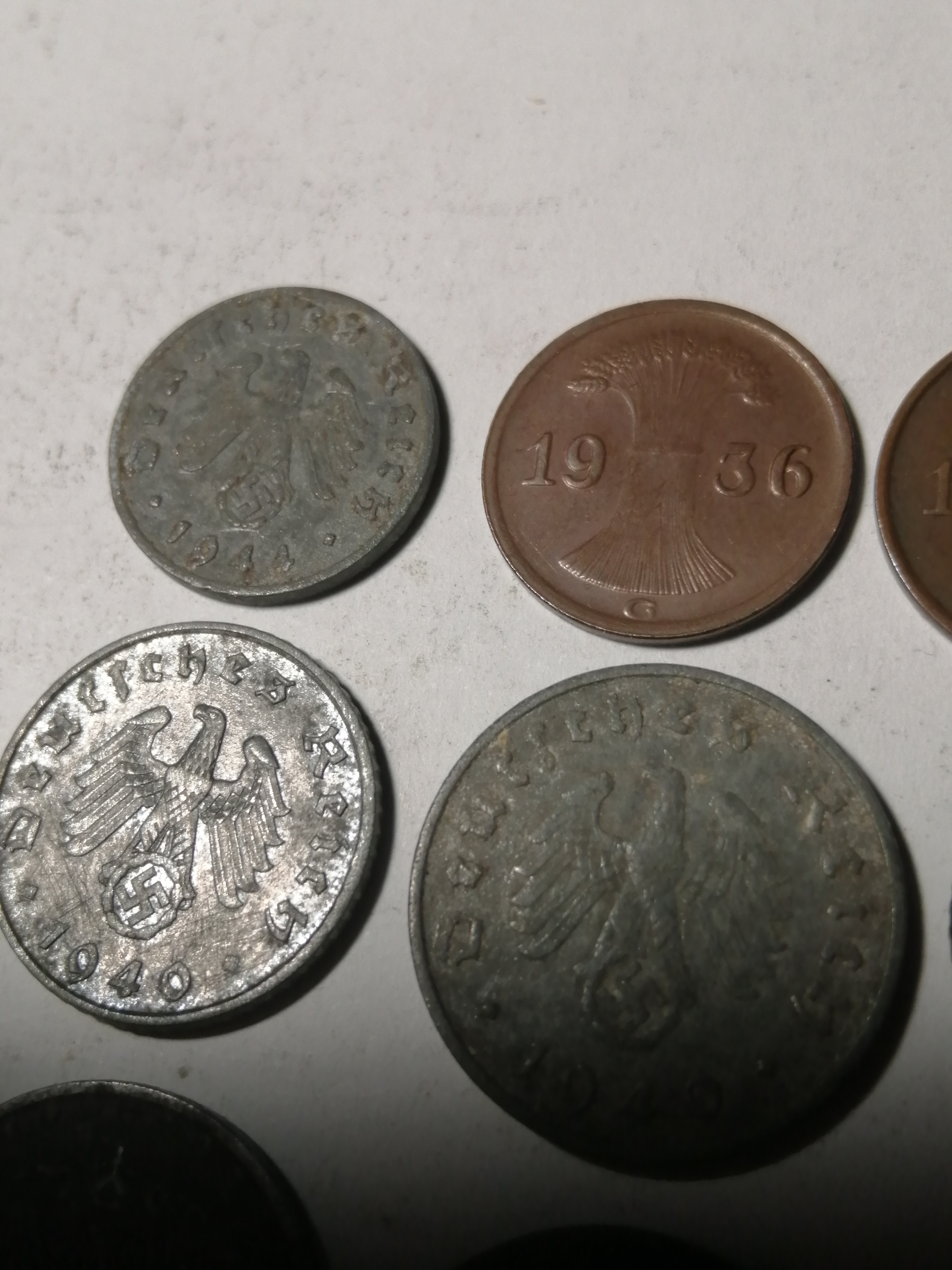 COINS : GERMANY 9 WWl and WWII coins Many with swastika on the reverse