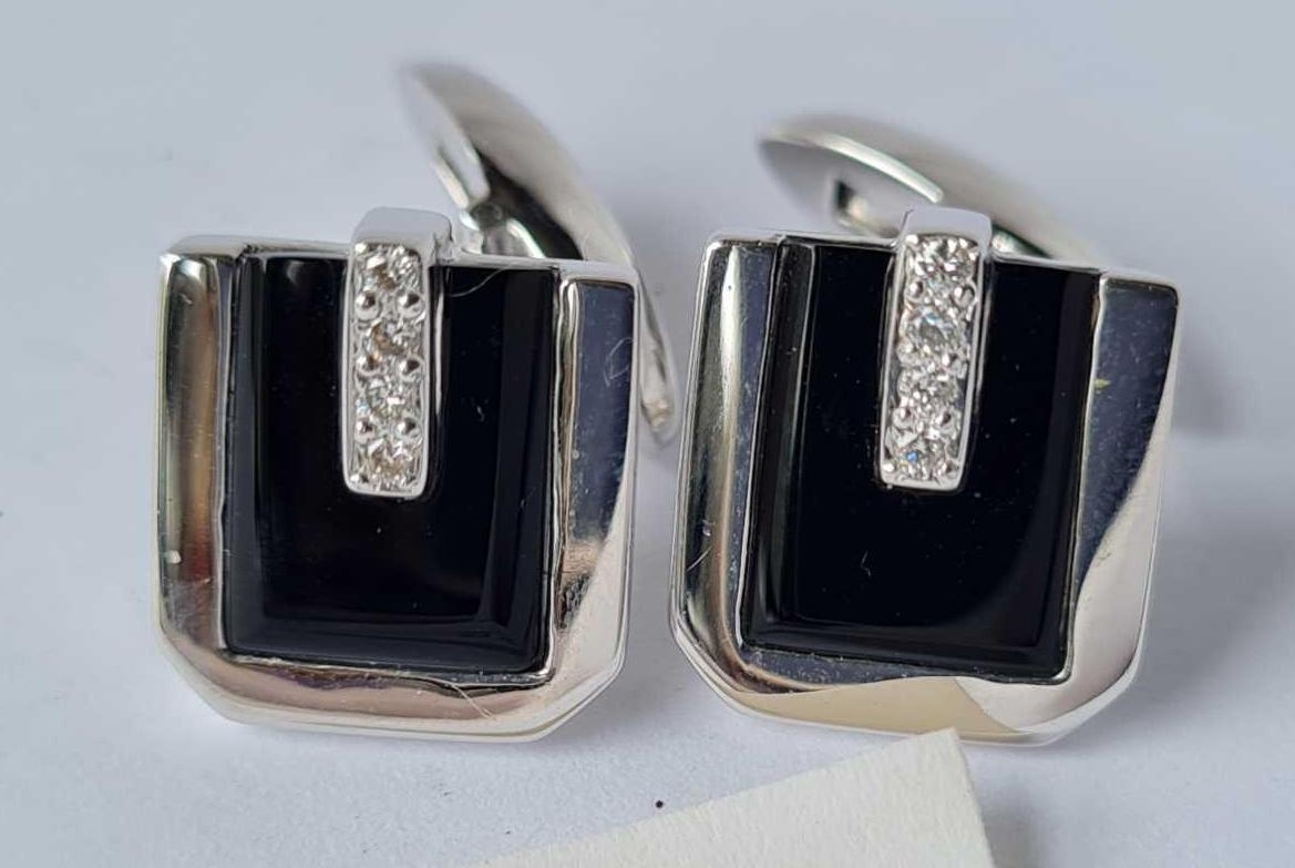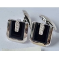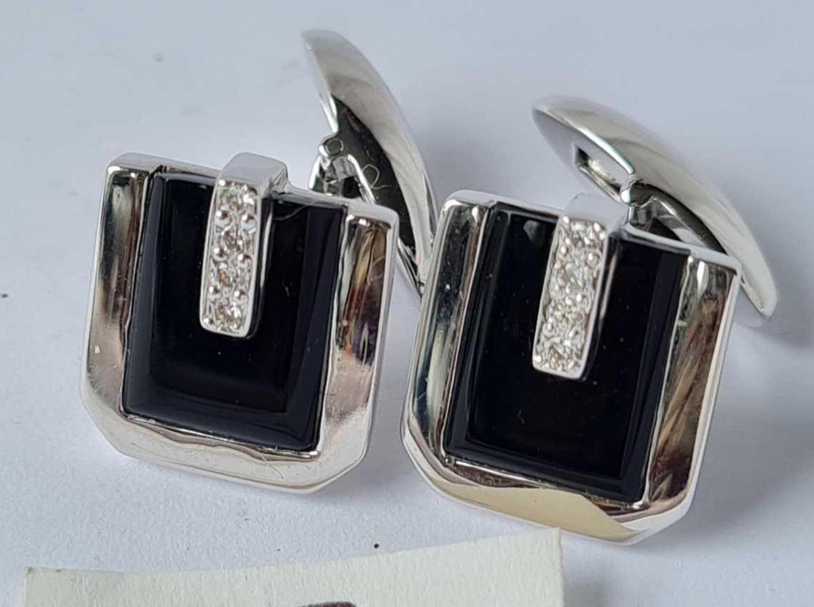 Pair 18ct white gold diamond & Onyx set cufflinks 7.8g inc