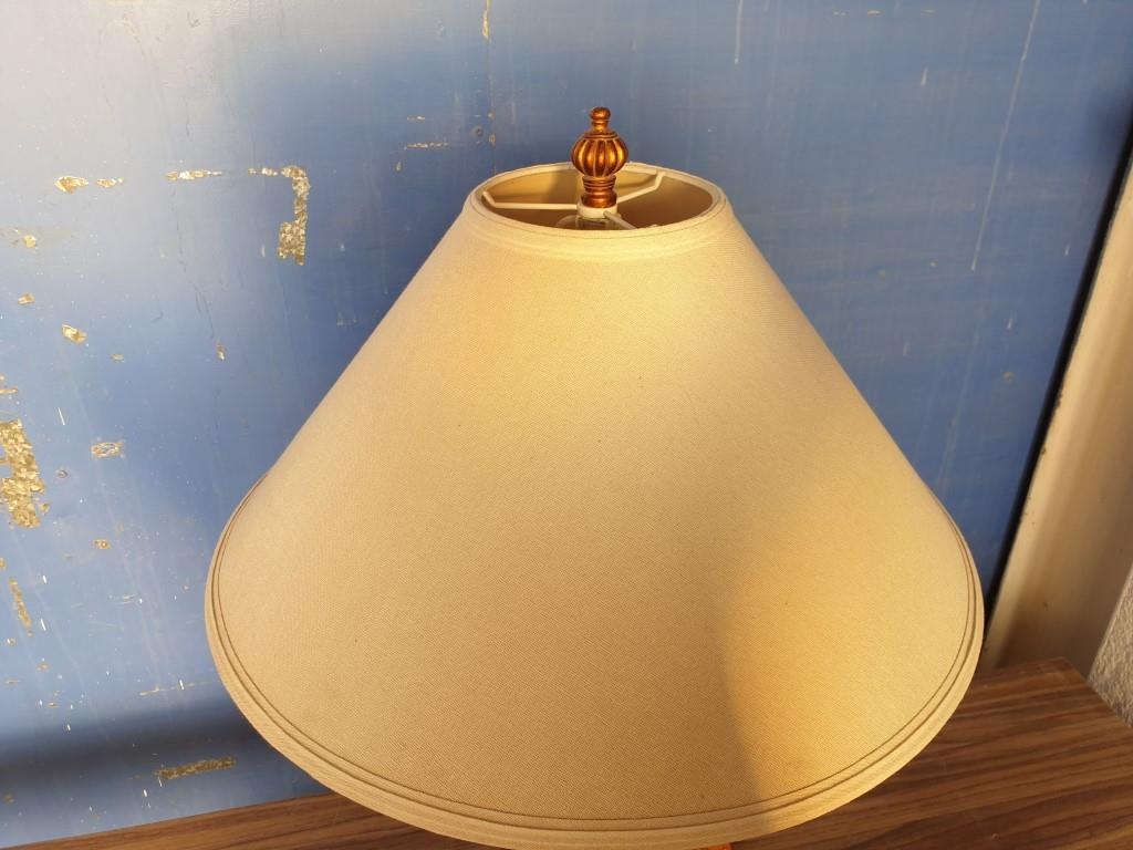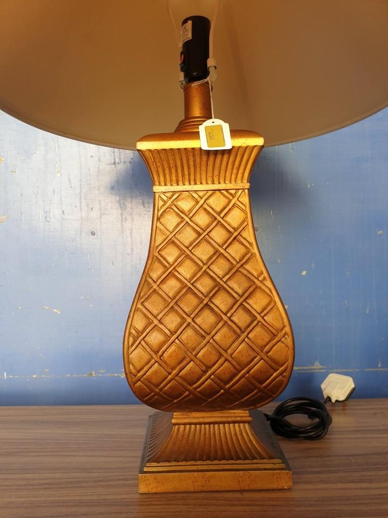"Trinity" Table Lamp (American) with Decorative Gold Colur Base and Cream Shade (Overall H:80cm)