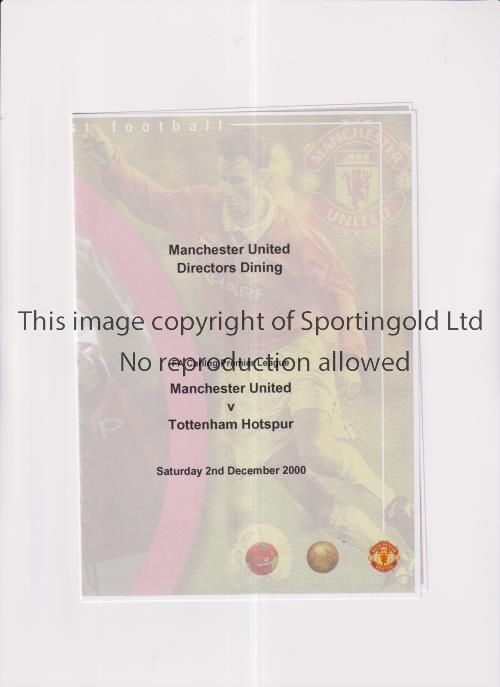 MANCHESTER UNITED V TOTTENHAM HOTSPUR 2000 Director's Dining Menu for the League match at United 2/12/2000. Generally good