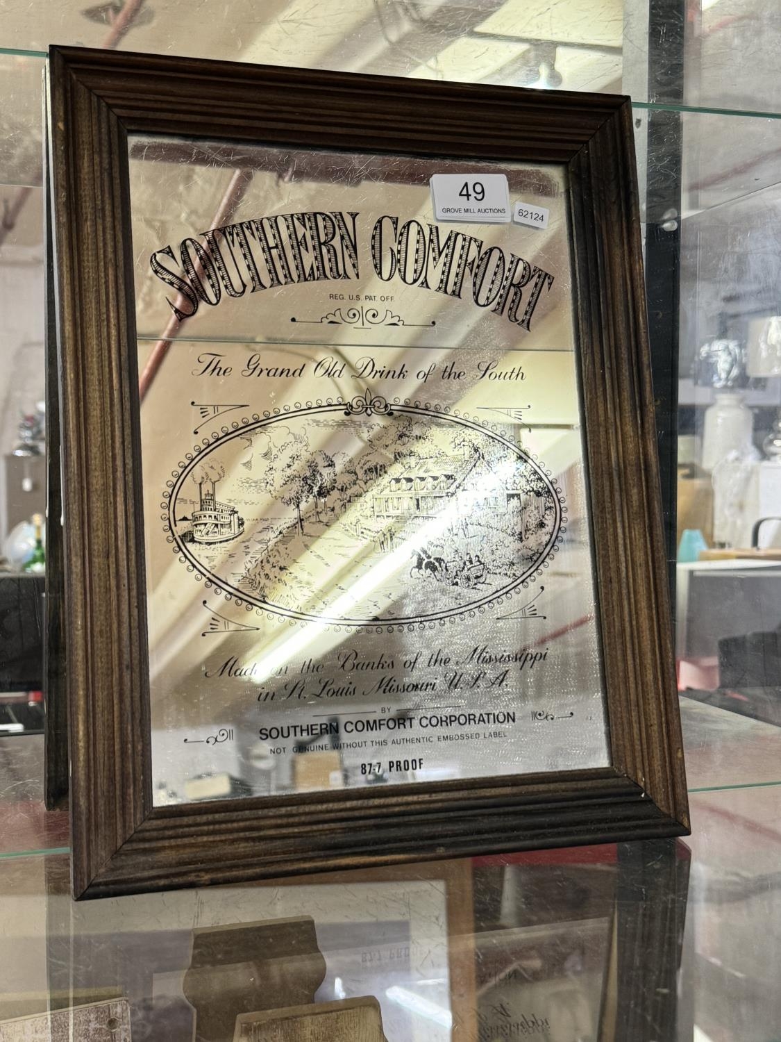 SMALL FRAMED 'SOUTHERN COMFORT' ADVERTISING MIRROR
