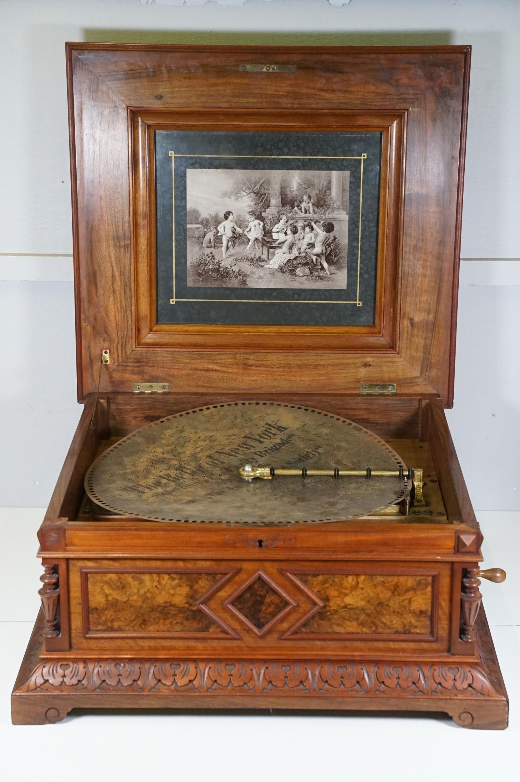 Mid-Late 19th Century 19 5/8" Polyphon Disc Music Box, complete with 1 x original disc - This model was the largest table model that Polyphon made.