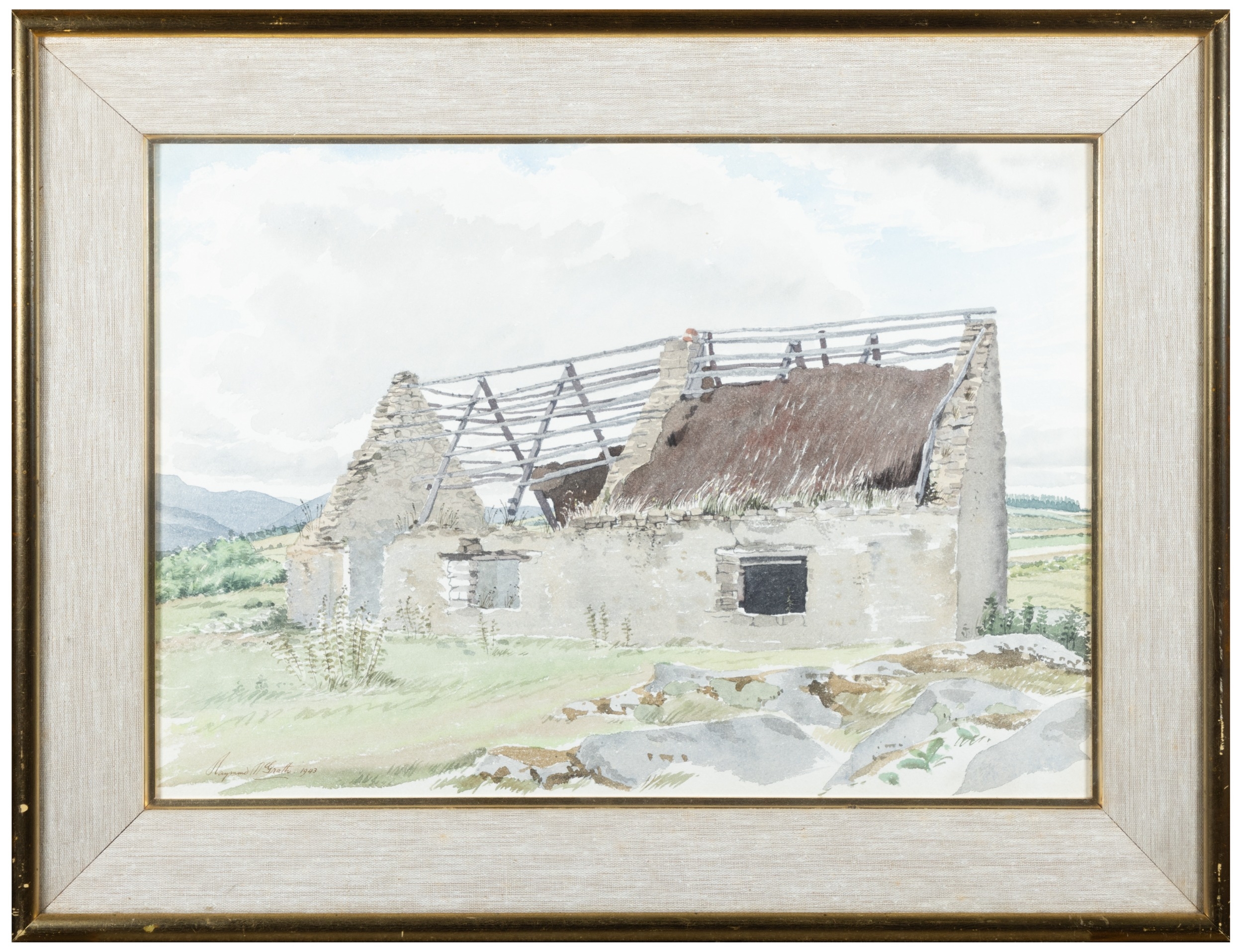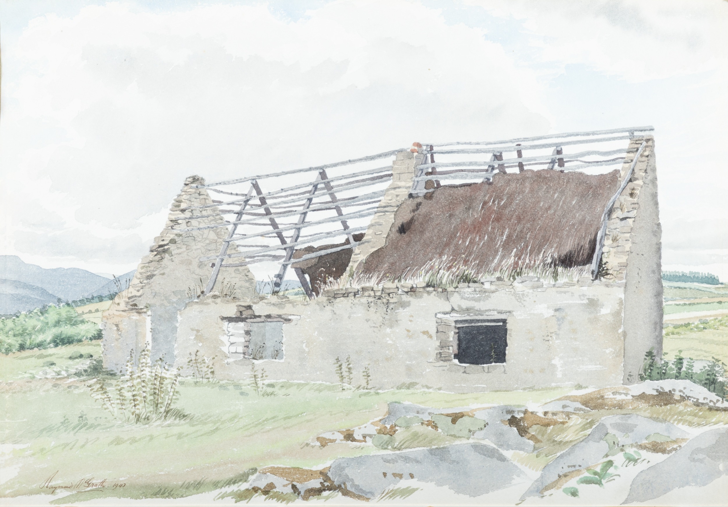Raymond McGrath (1903-1977) Deserted Cottages, Glenmalure, Co. Wicklow Watercolour Signed and dated (19)'43