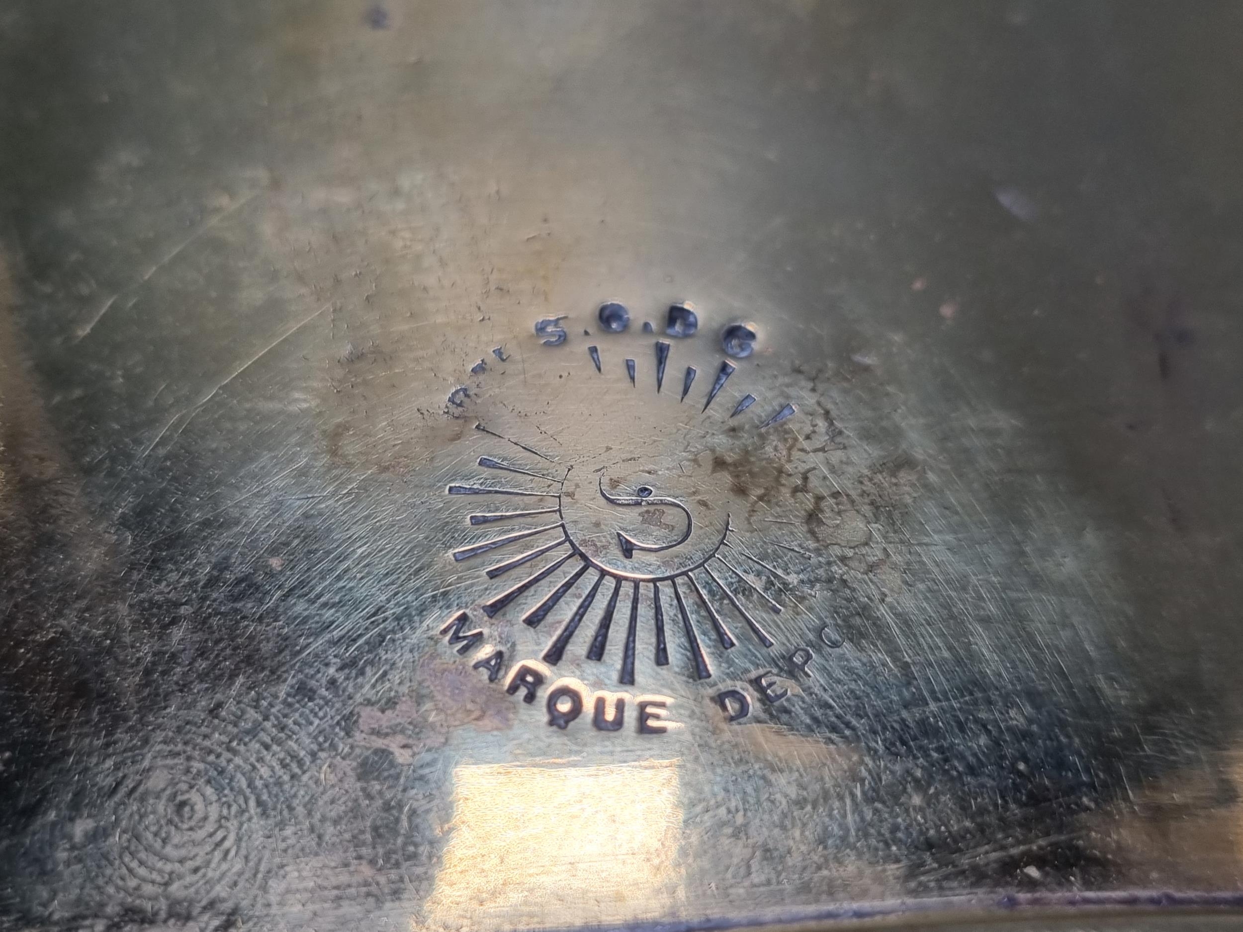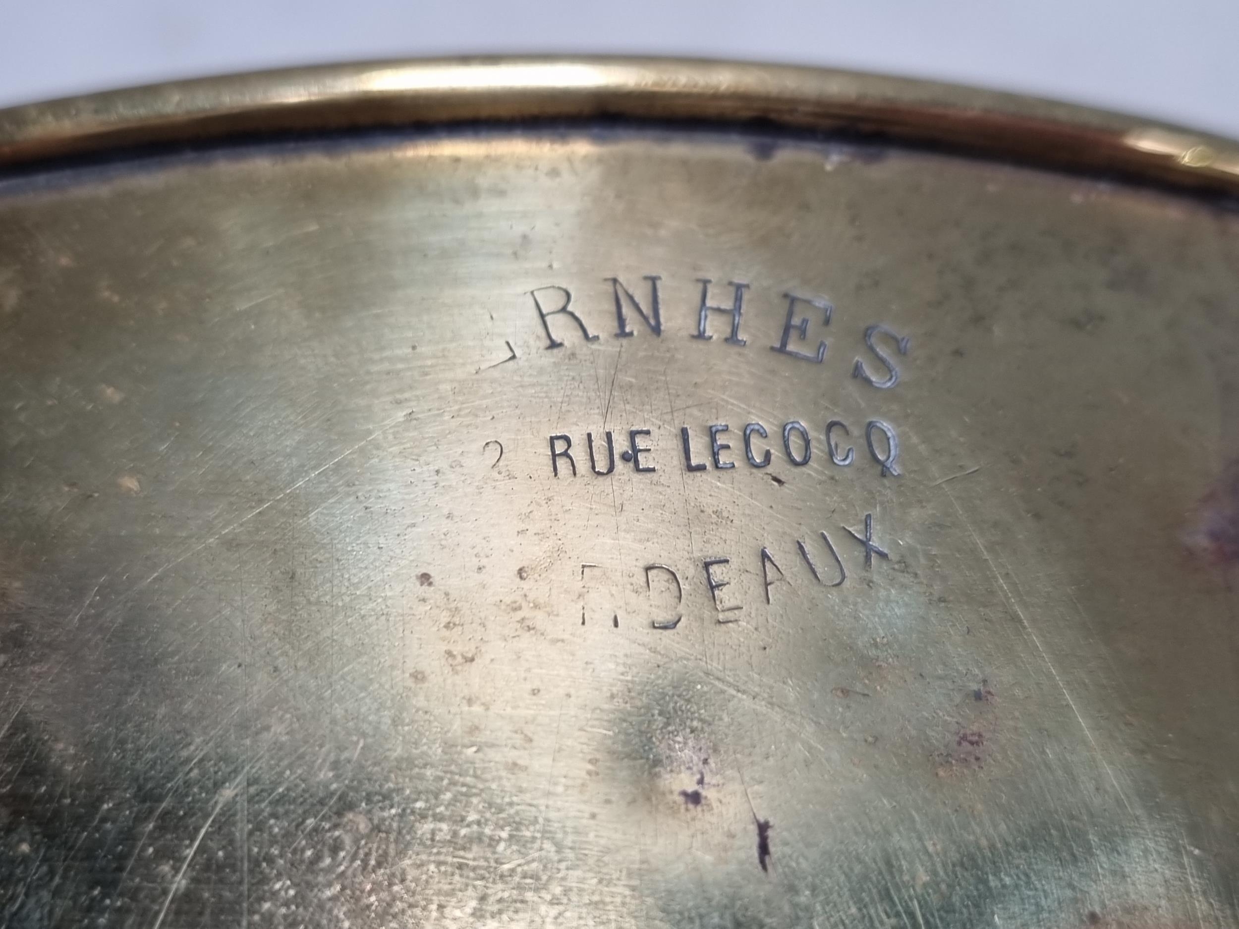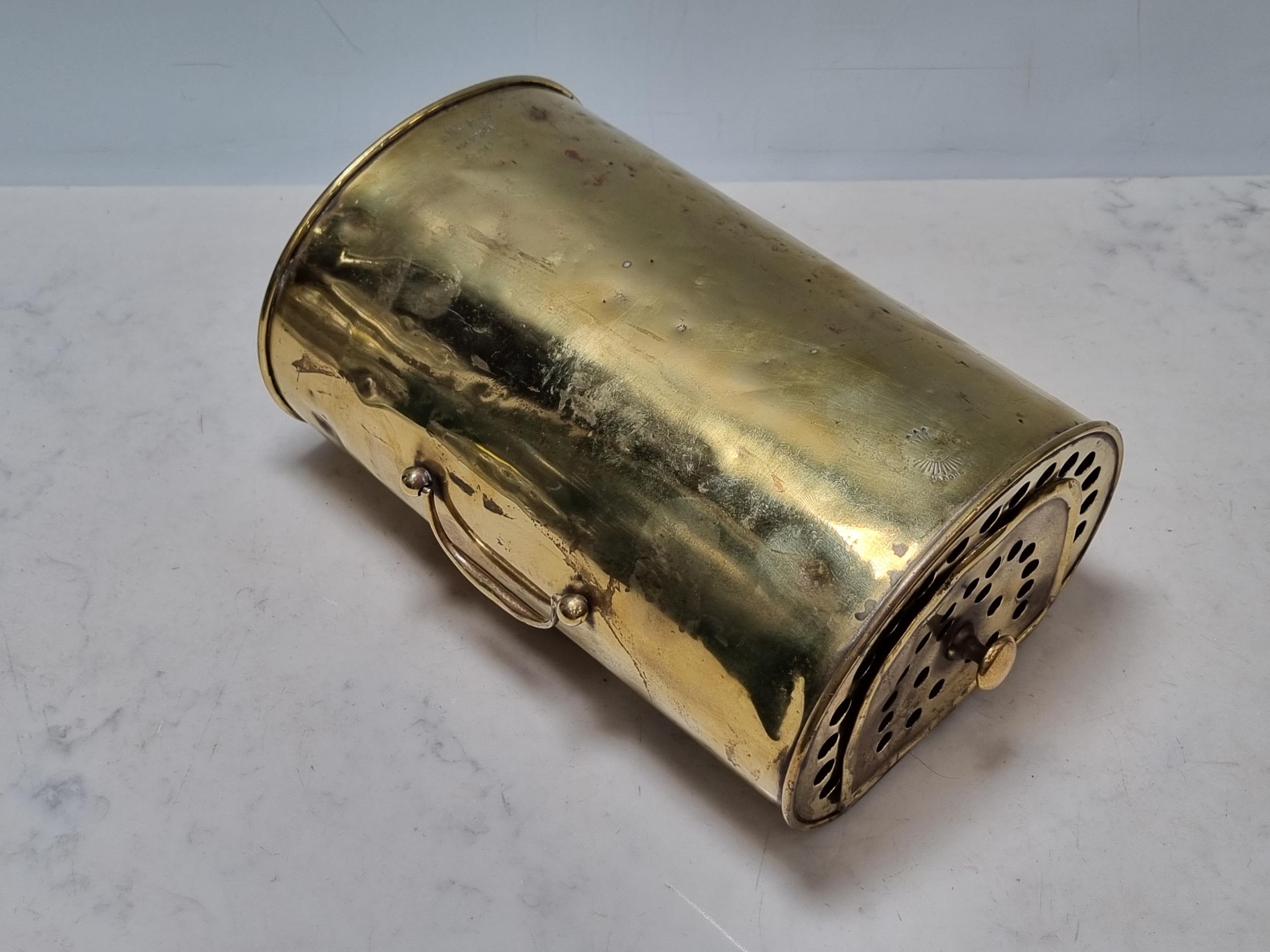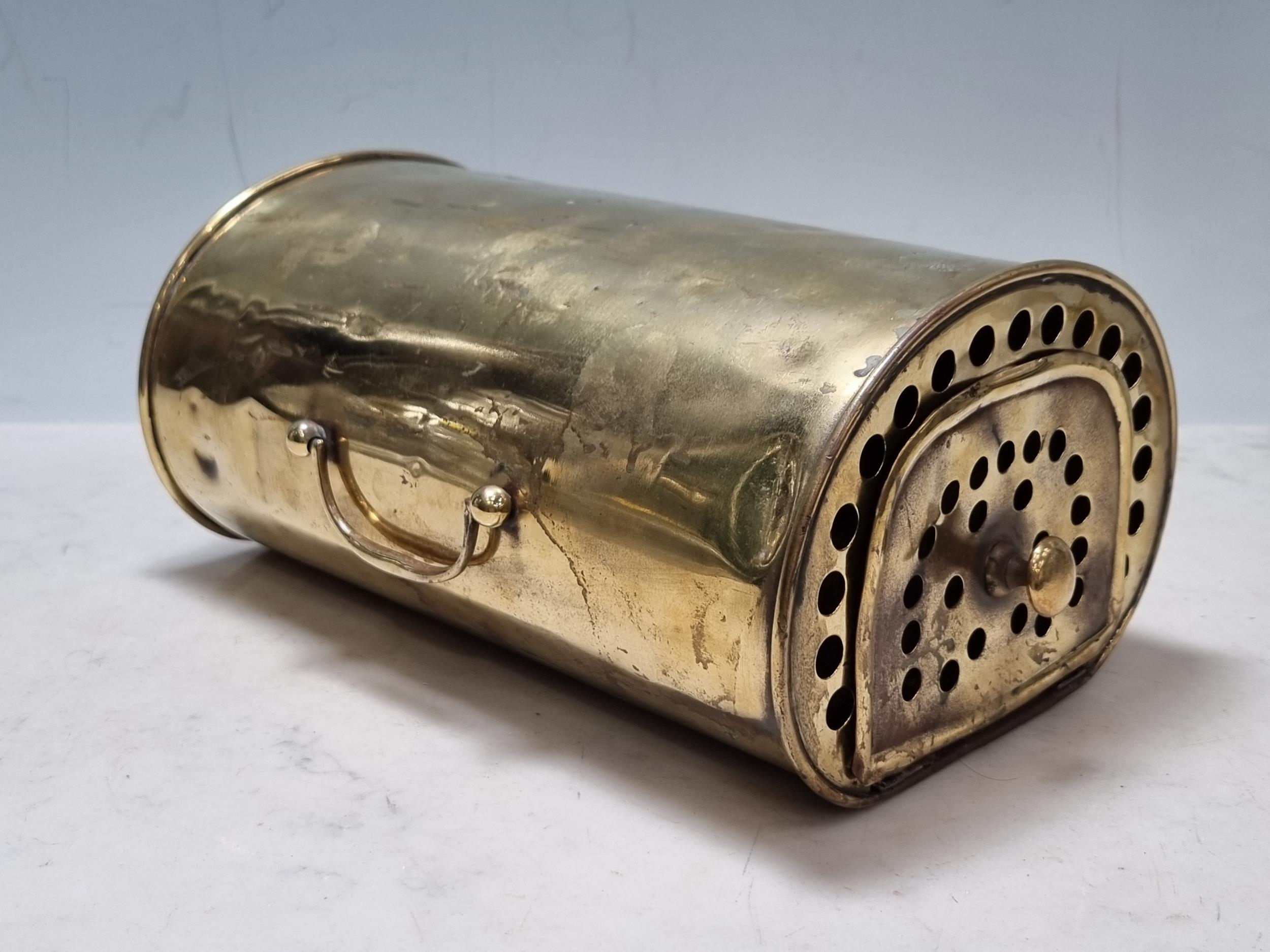 A French brass Car Foot Warmer, marked 'Vernhes', with brass carrying handle, hinged door A/F, 9 1/2 in, (cab.)