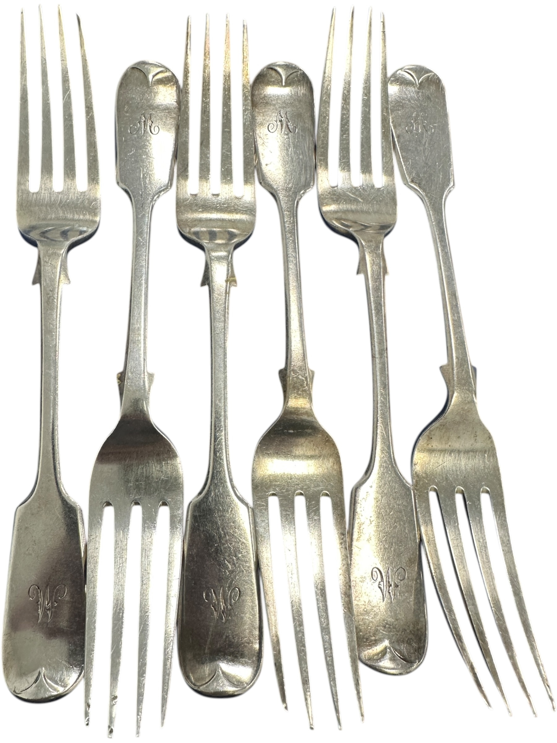 Set of Six Hallmarked Silver Forks. London 1876. 432.1g
