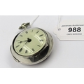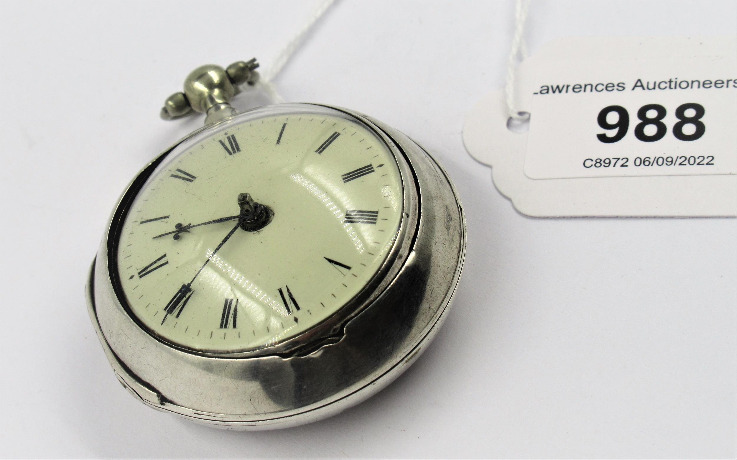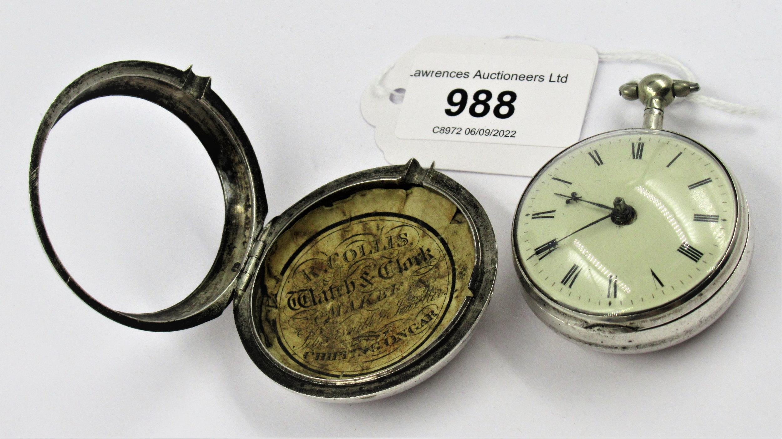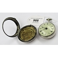 George III silver pair cased verge watch by Hartwell of Uttoxeter, No. 3878, the enamel dial with Roman numerals, case diameter 48mm approximately
