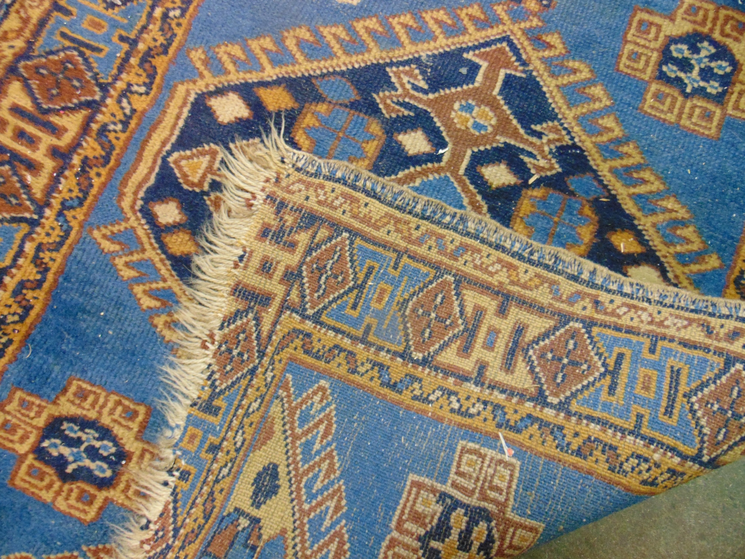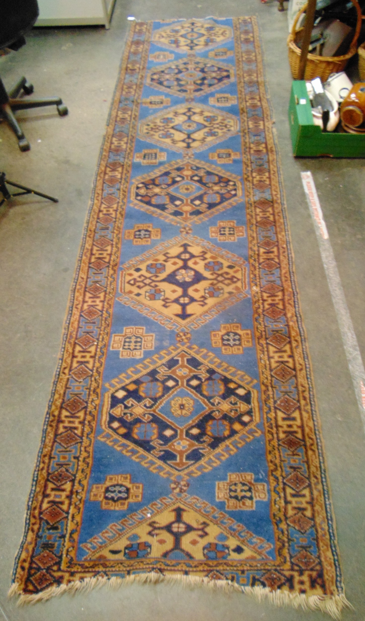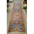 Persian blue ground runner, having geometric pattern, 125 x 34".