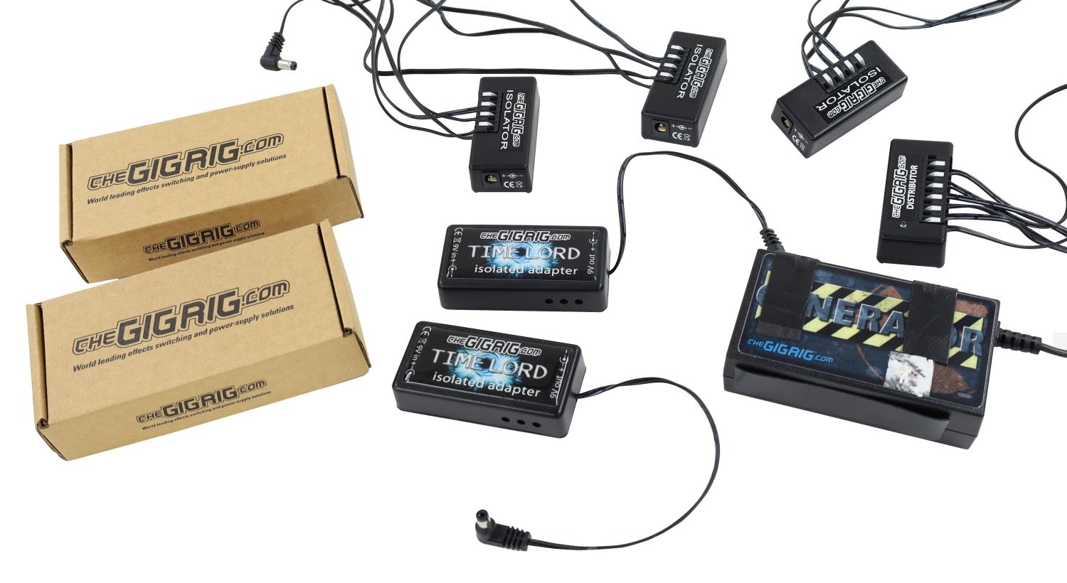 The Gig Rig guitar pedal units and cables to include a Generator, two Time Lord isolated adapters, four further isolators and a selection of associated cables