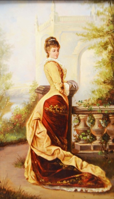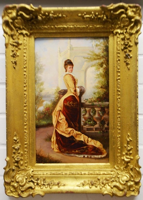 Giraud, Lady on Parisian Terrace, oil on board, 30cm x 17cm, signed, framed