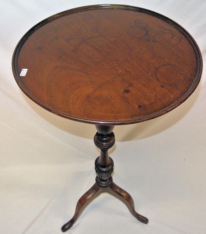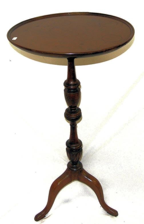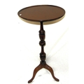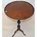 Victorian mahogany round occasional or jardiniere table with raised border, ornate vase turned column, on hipped tripod