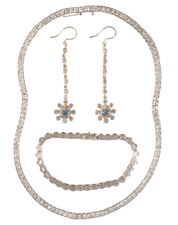 A COLLETION OF PASTE JEWELLERY, to include a necklace, bracelet, and earrings (3)