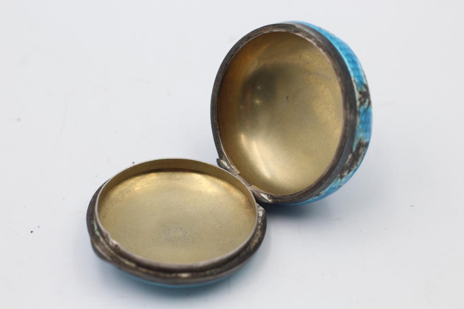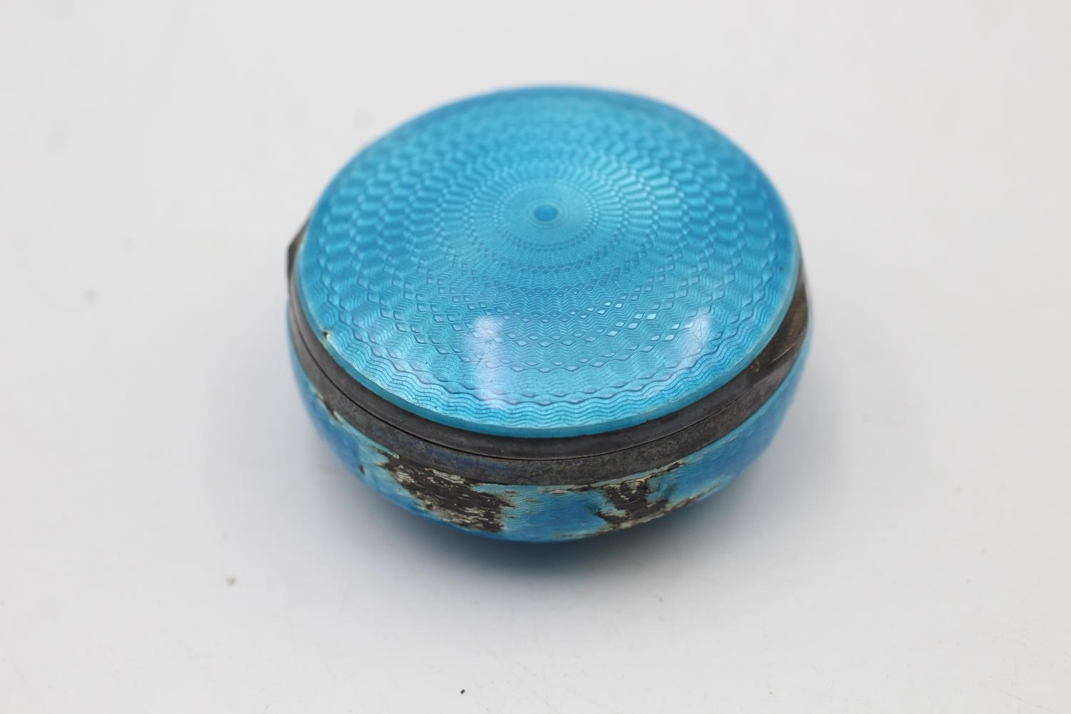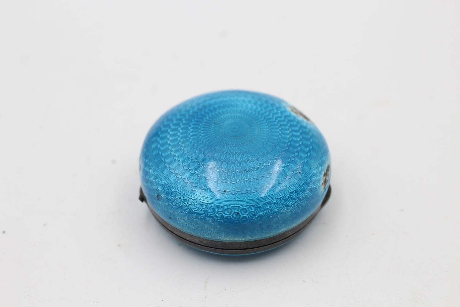 Antique .925 STERLING SILVER Blue Guilloche Enamel Vanity Compact / Box (34g)