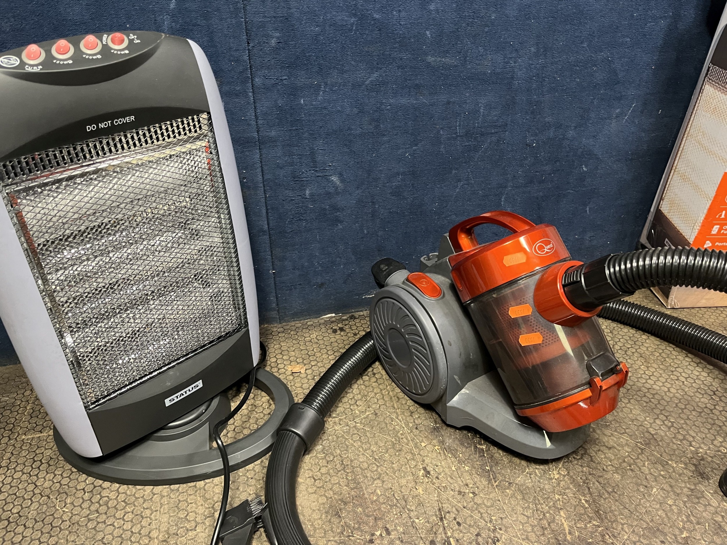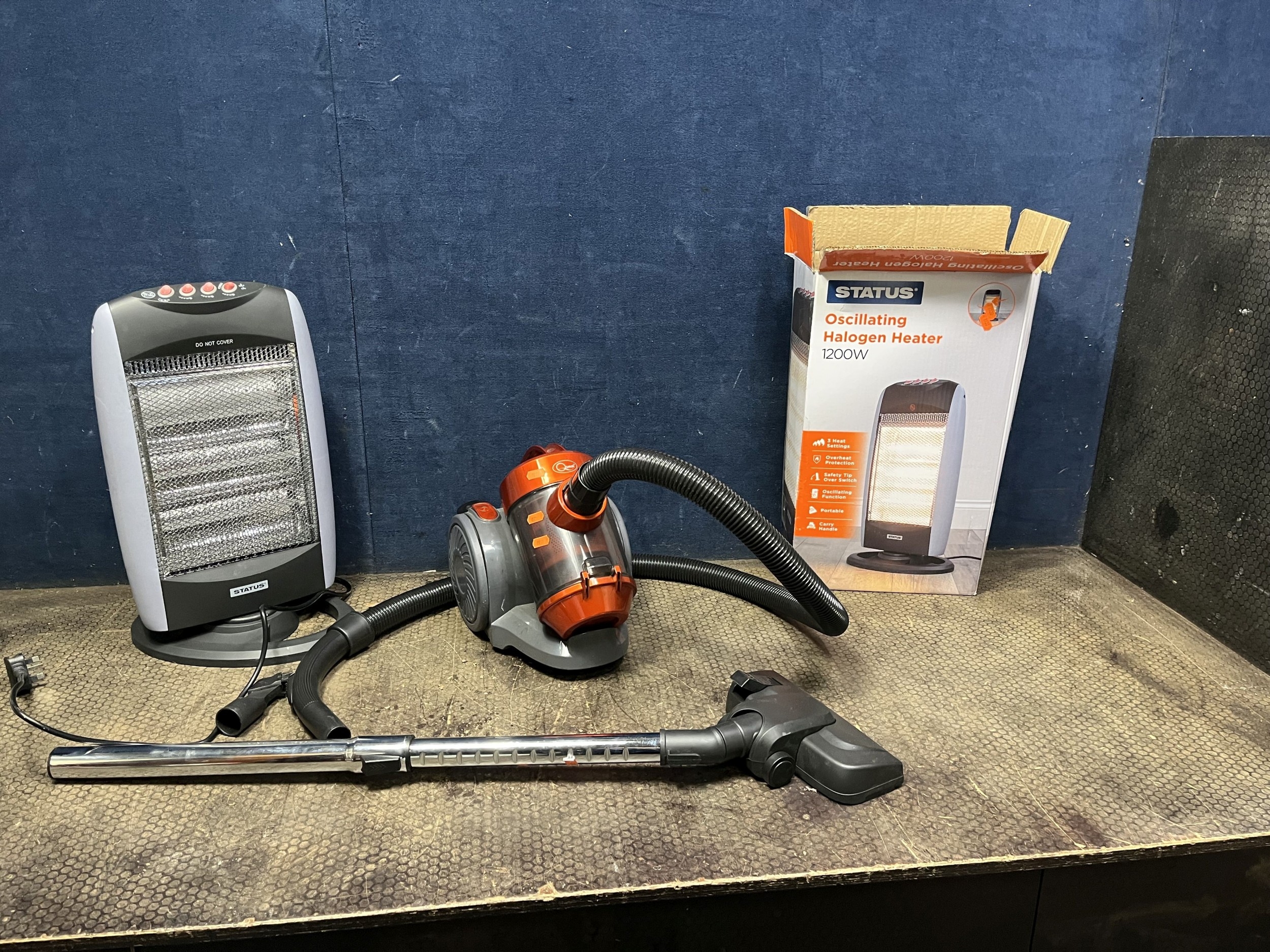 A QUEST VACUUM CLEANER with floor head and one accessory, and a Status halogen heater (both PAT pass and working) (2)