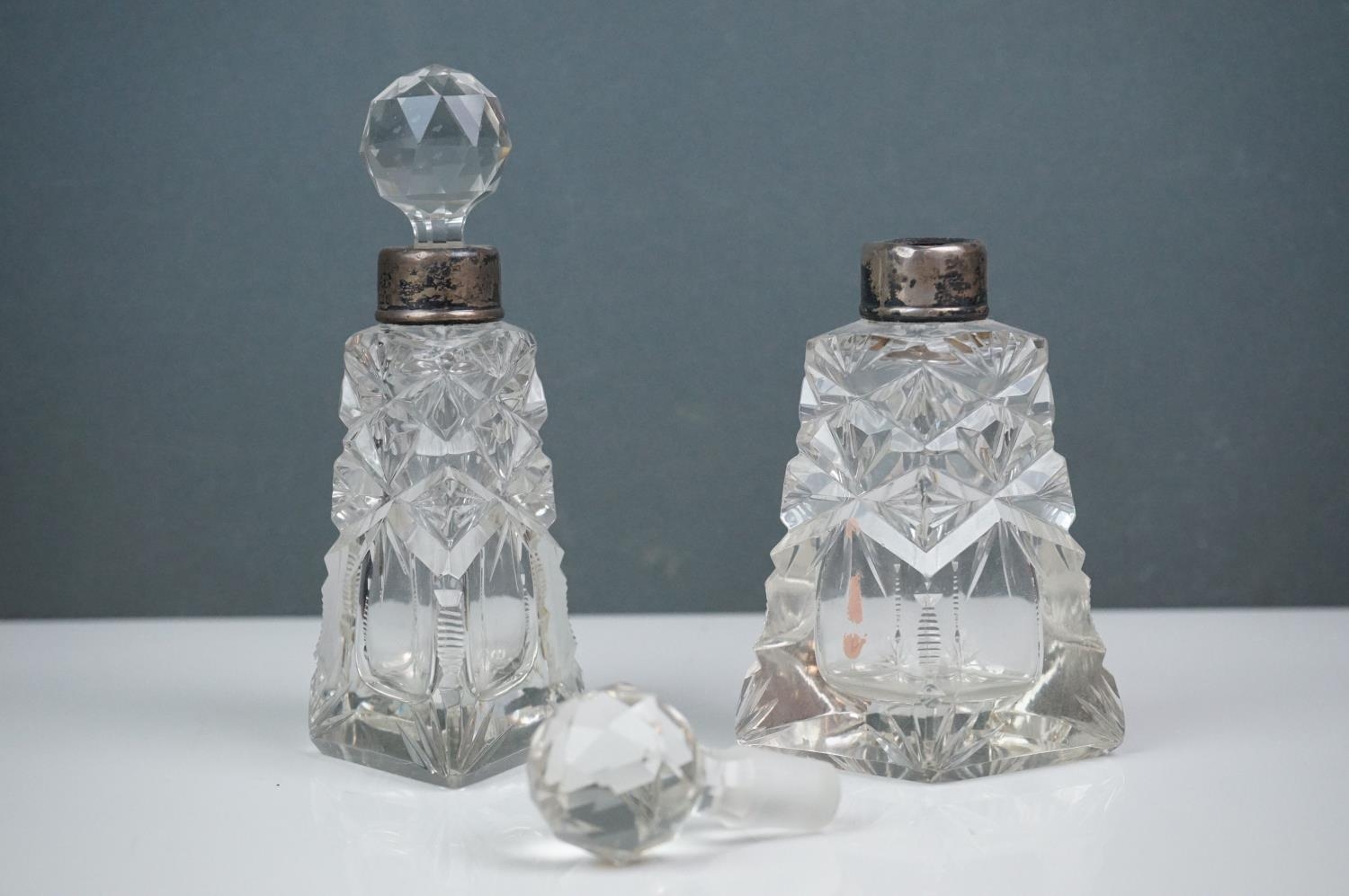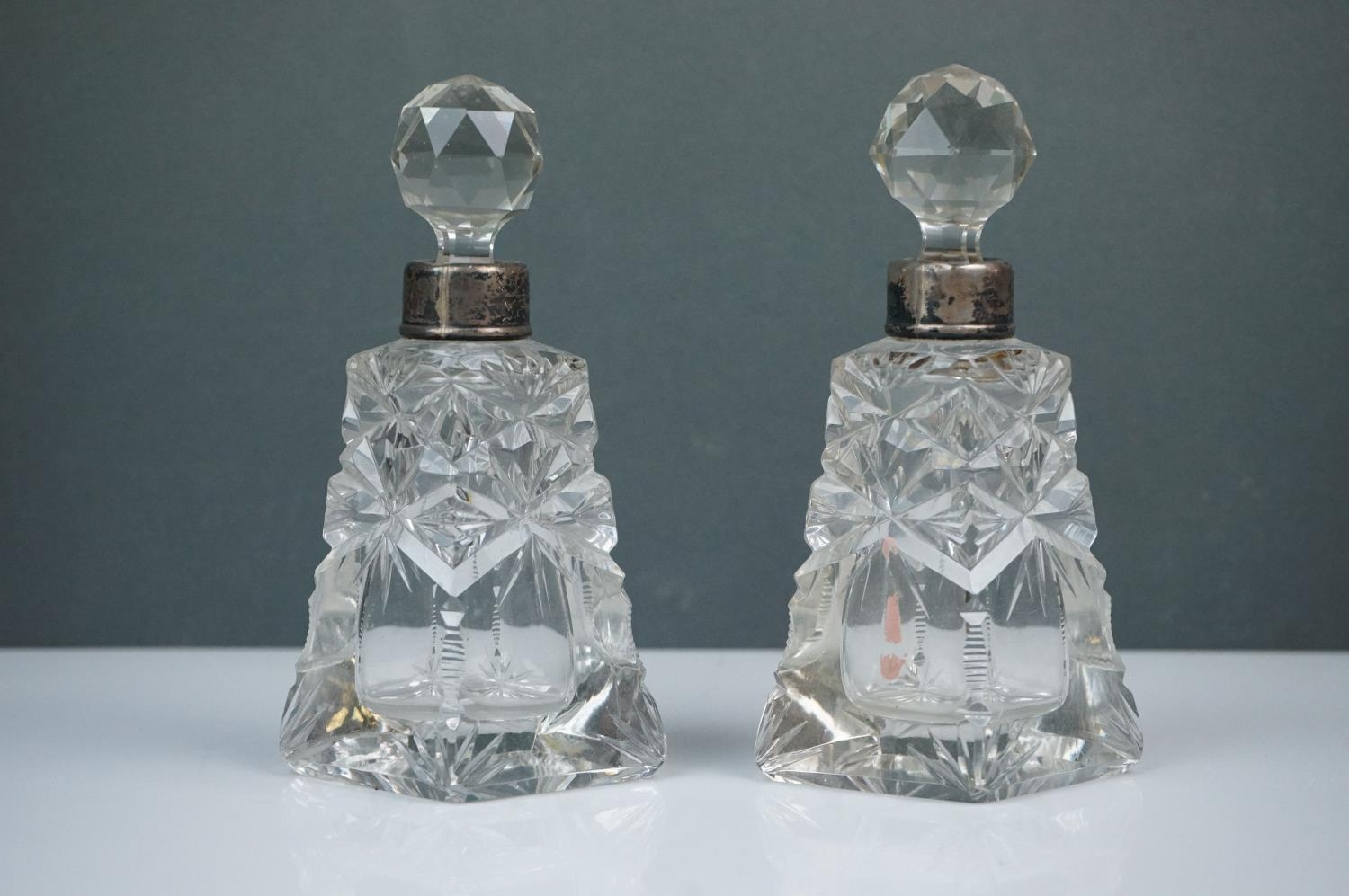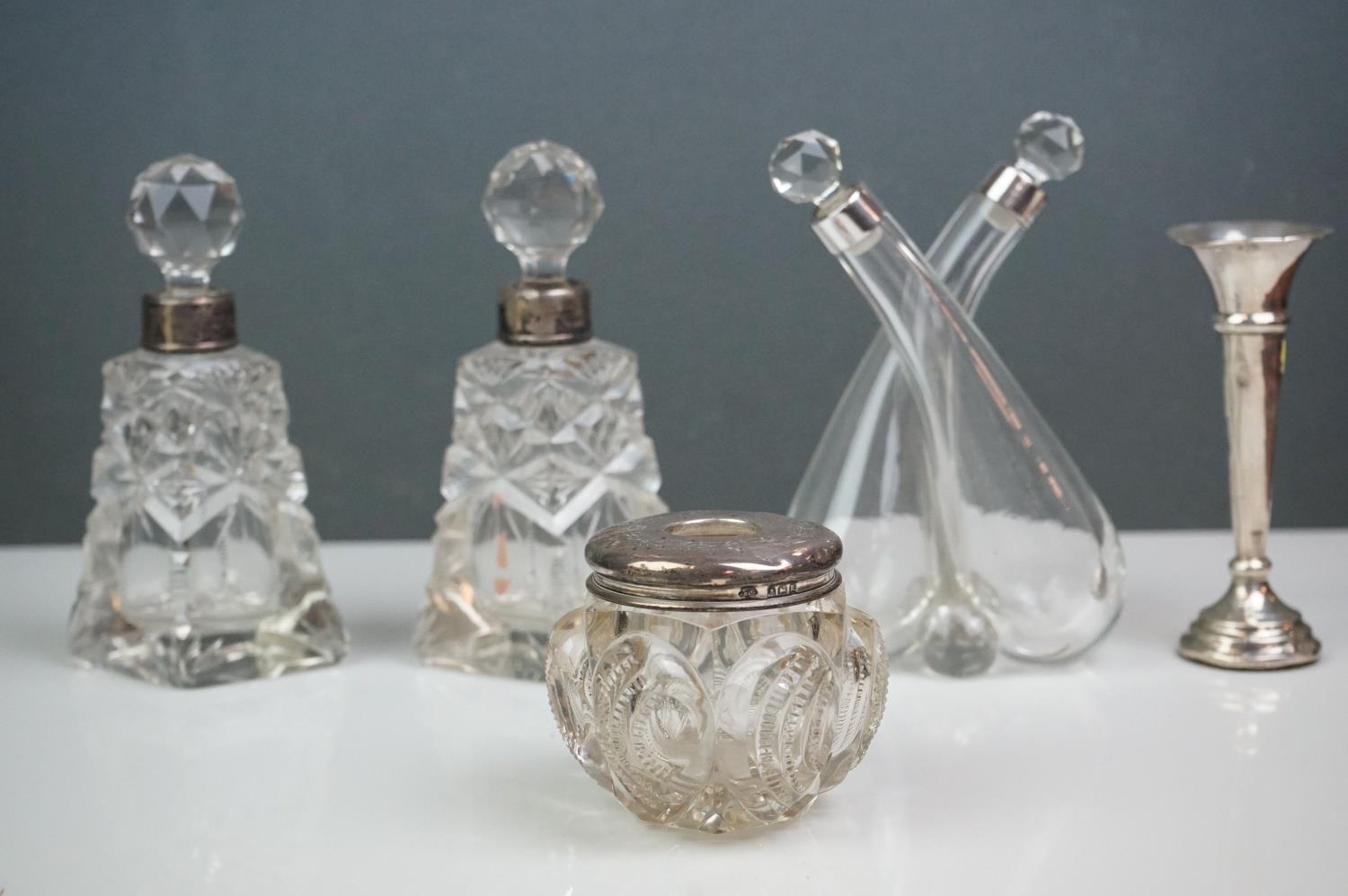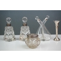 Collection of silver items, to include scent bottles with crystal stoppers, bud vase, oil & vinegar bottle etc